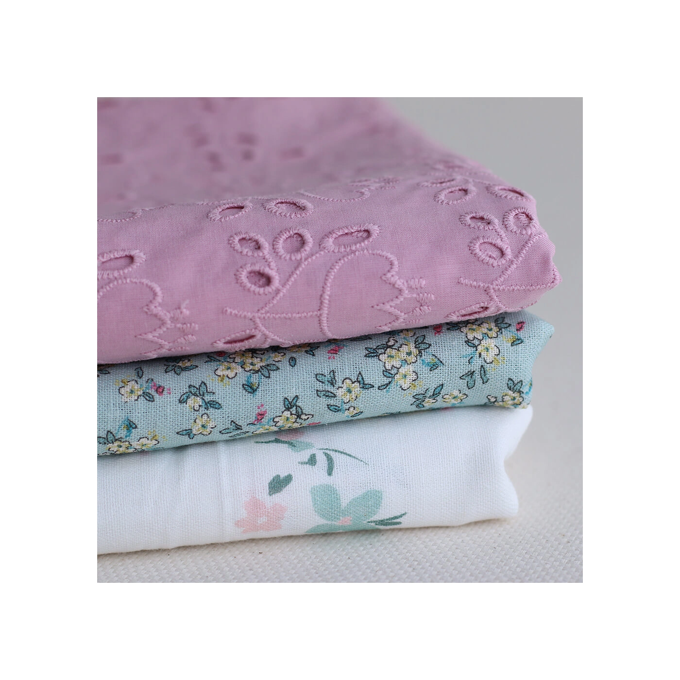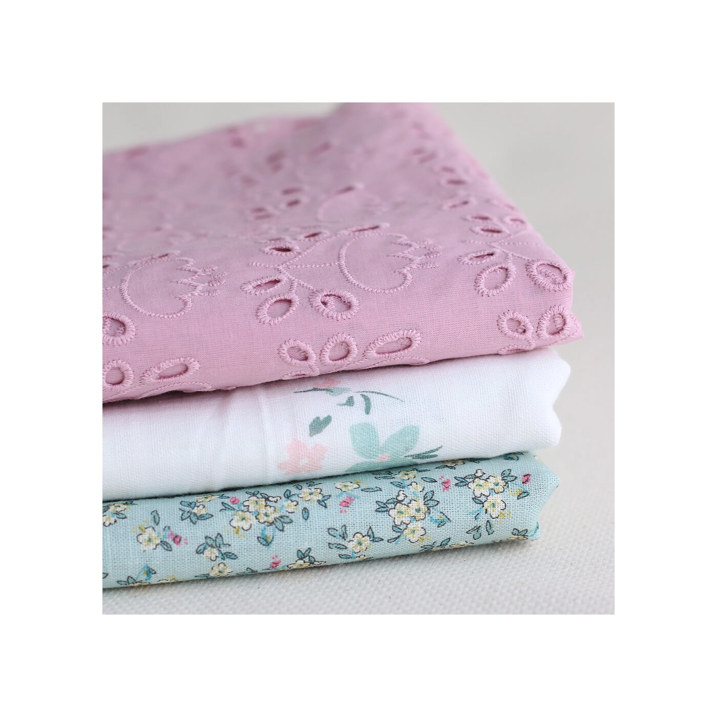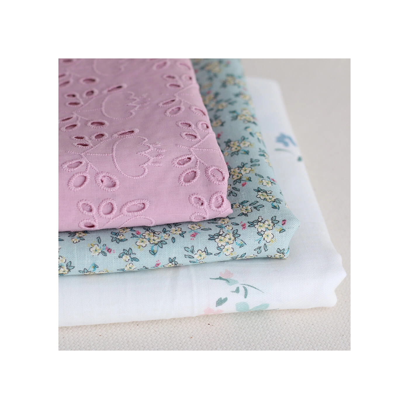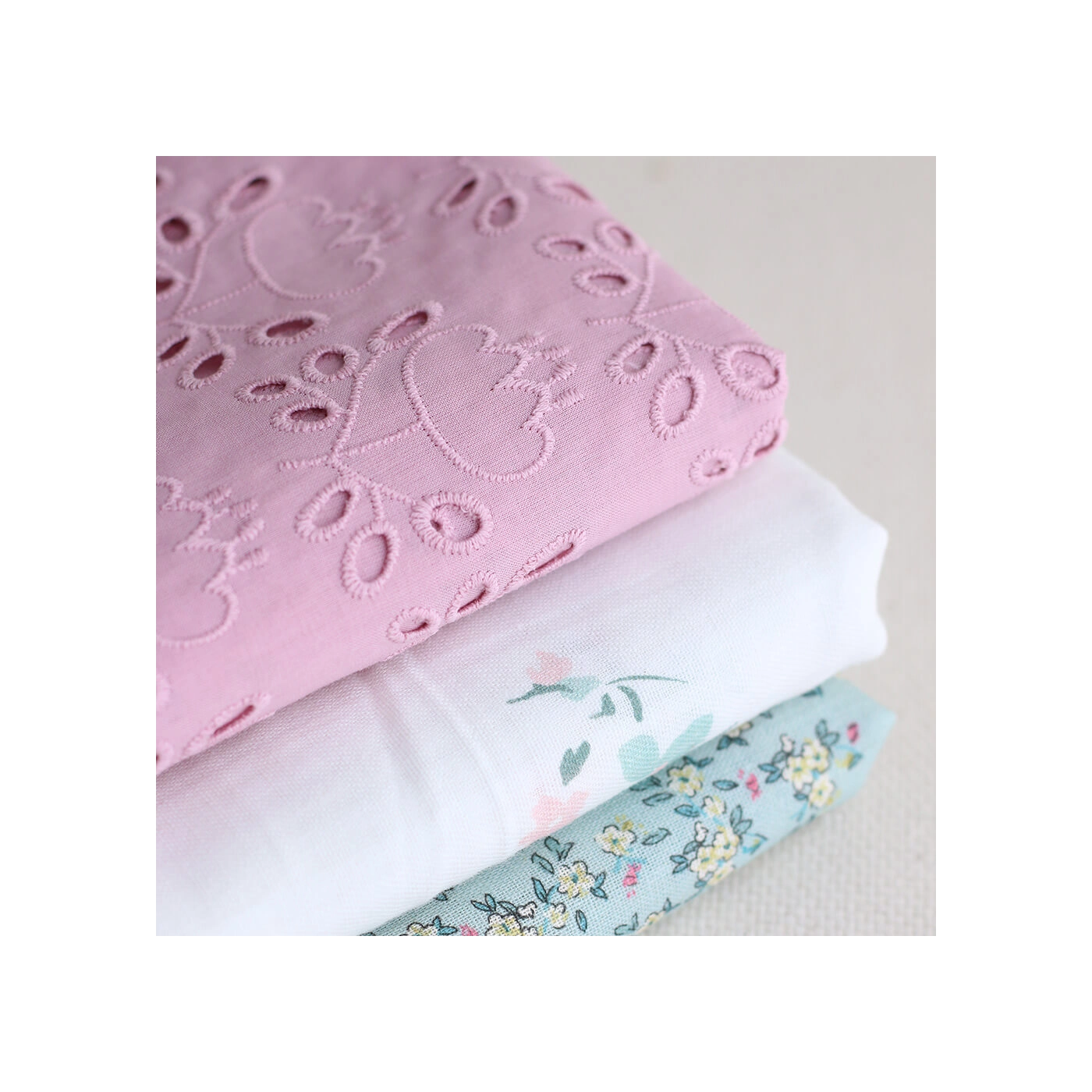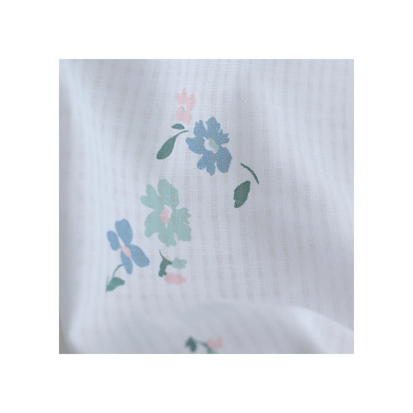 Seersucker / Coton gaufré doux fond blanc motif fleuri Jade rose pastel