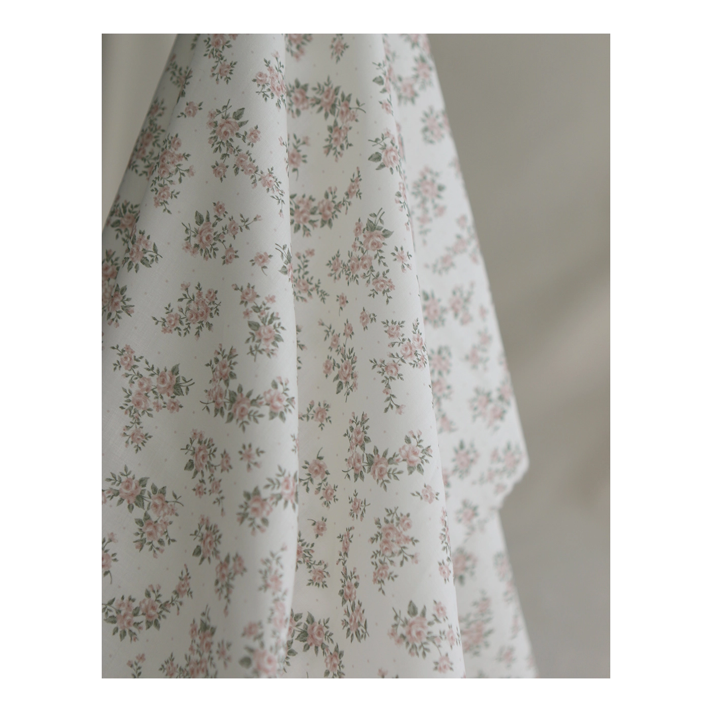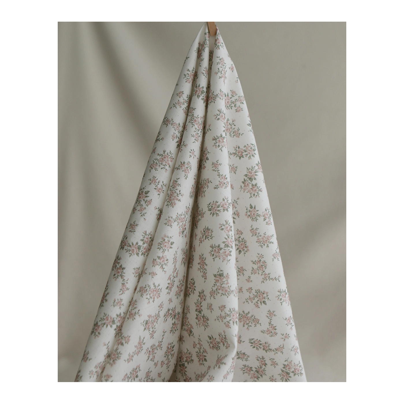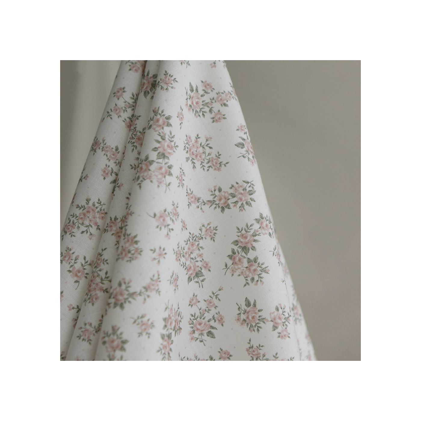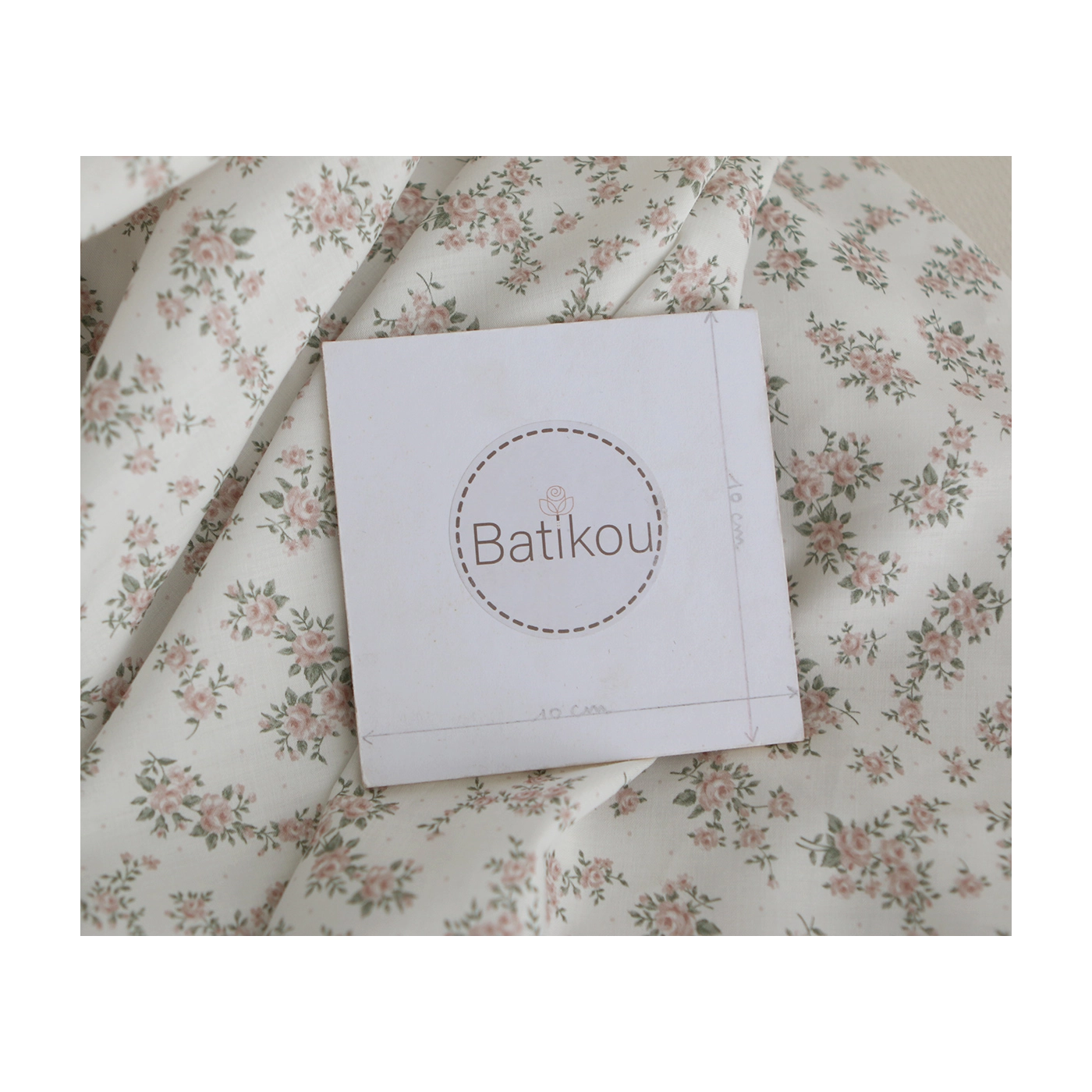 Lilou - Batiste de coton douce à imprimé exclusif fleuri vert et rose