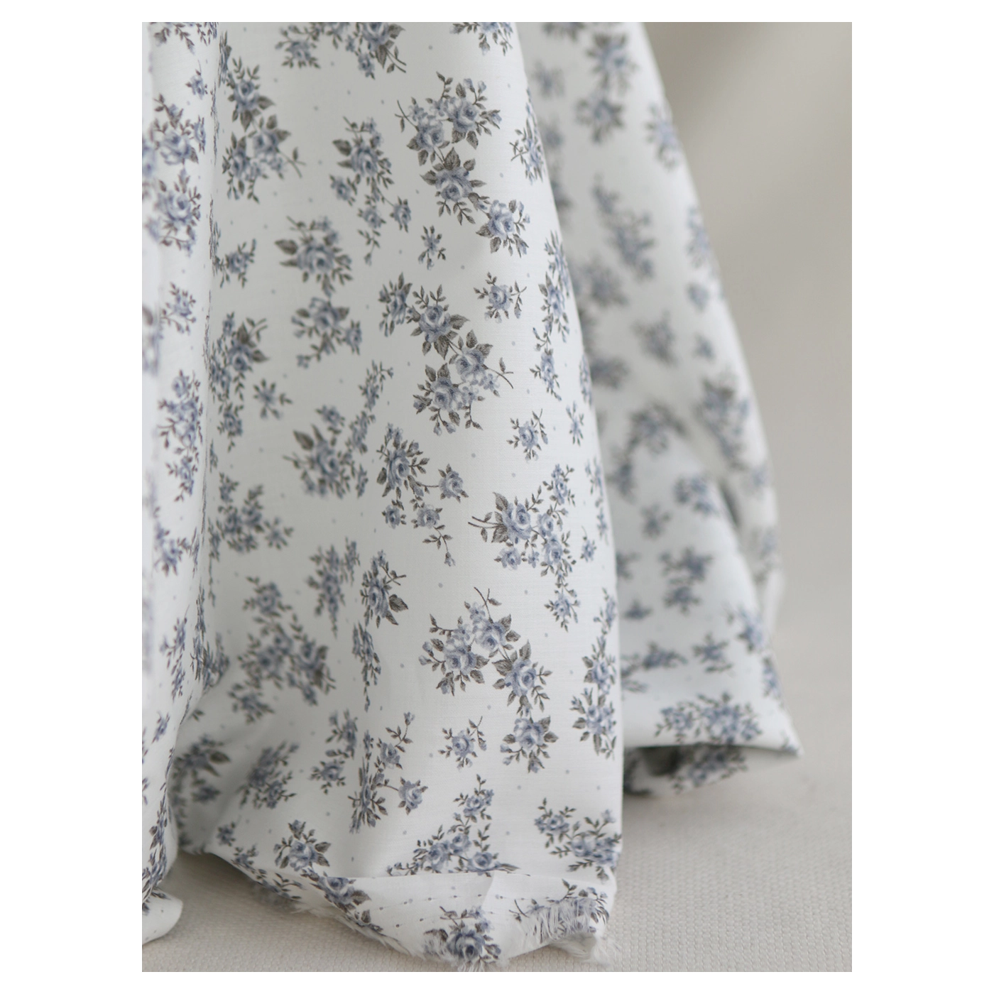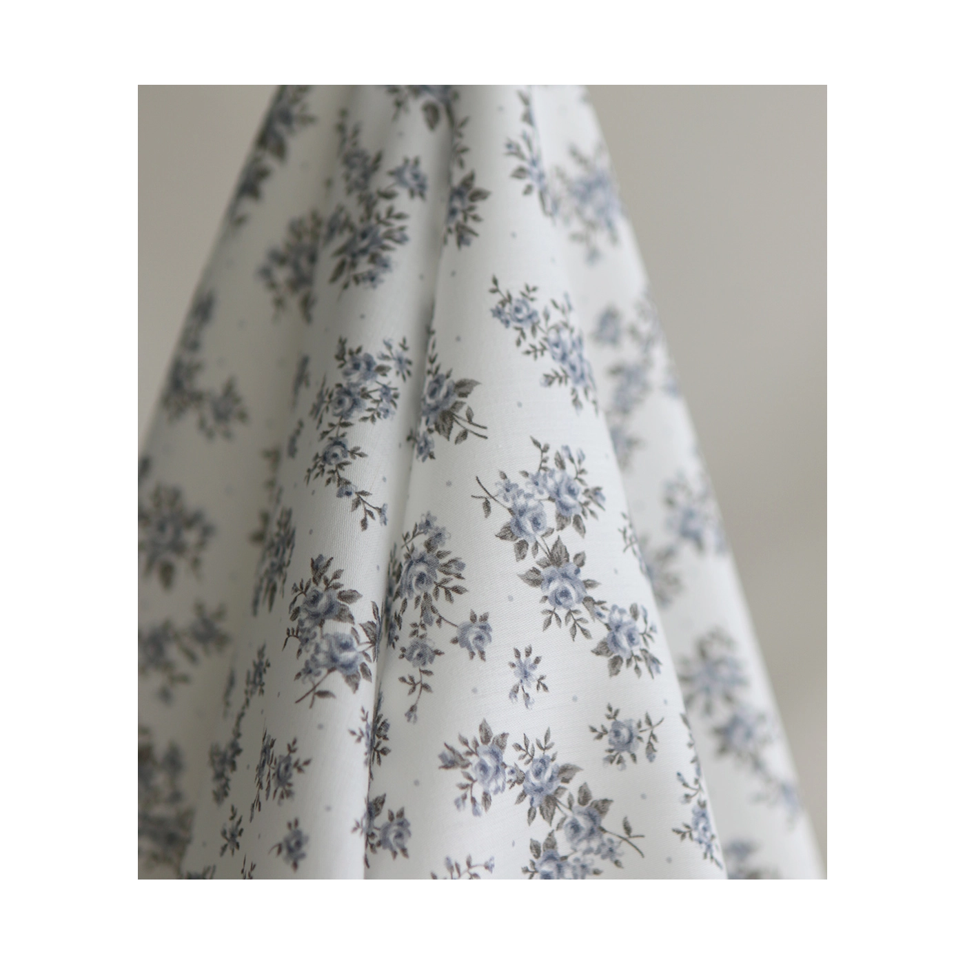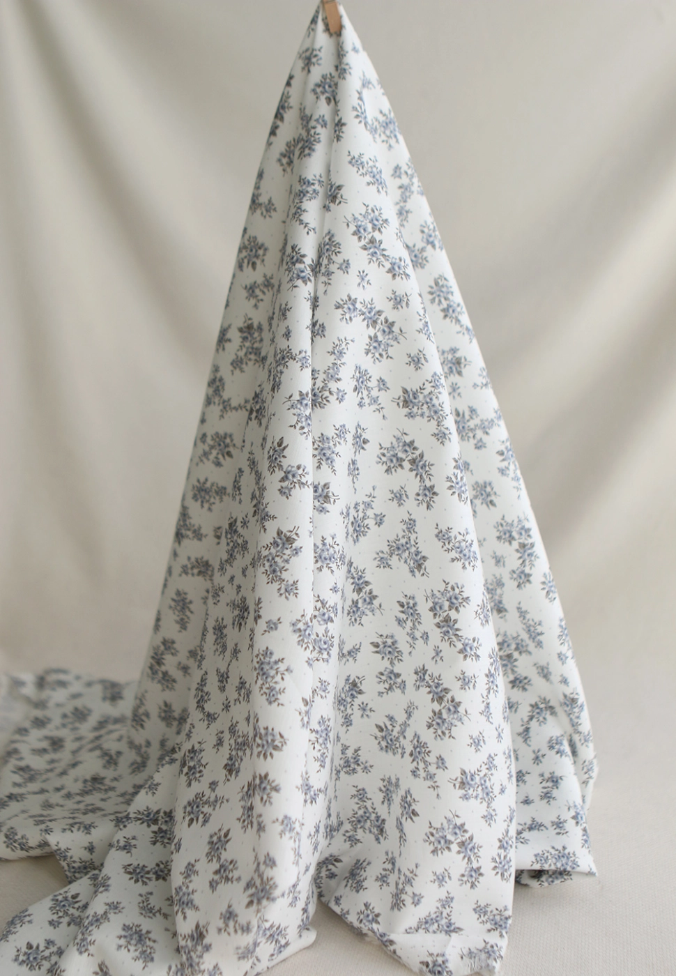 Lilou - Batiste de coton douce à imprimé exclusif fleuri vert et bleu