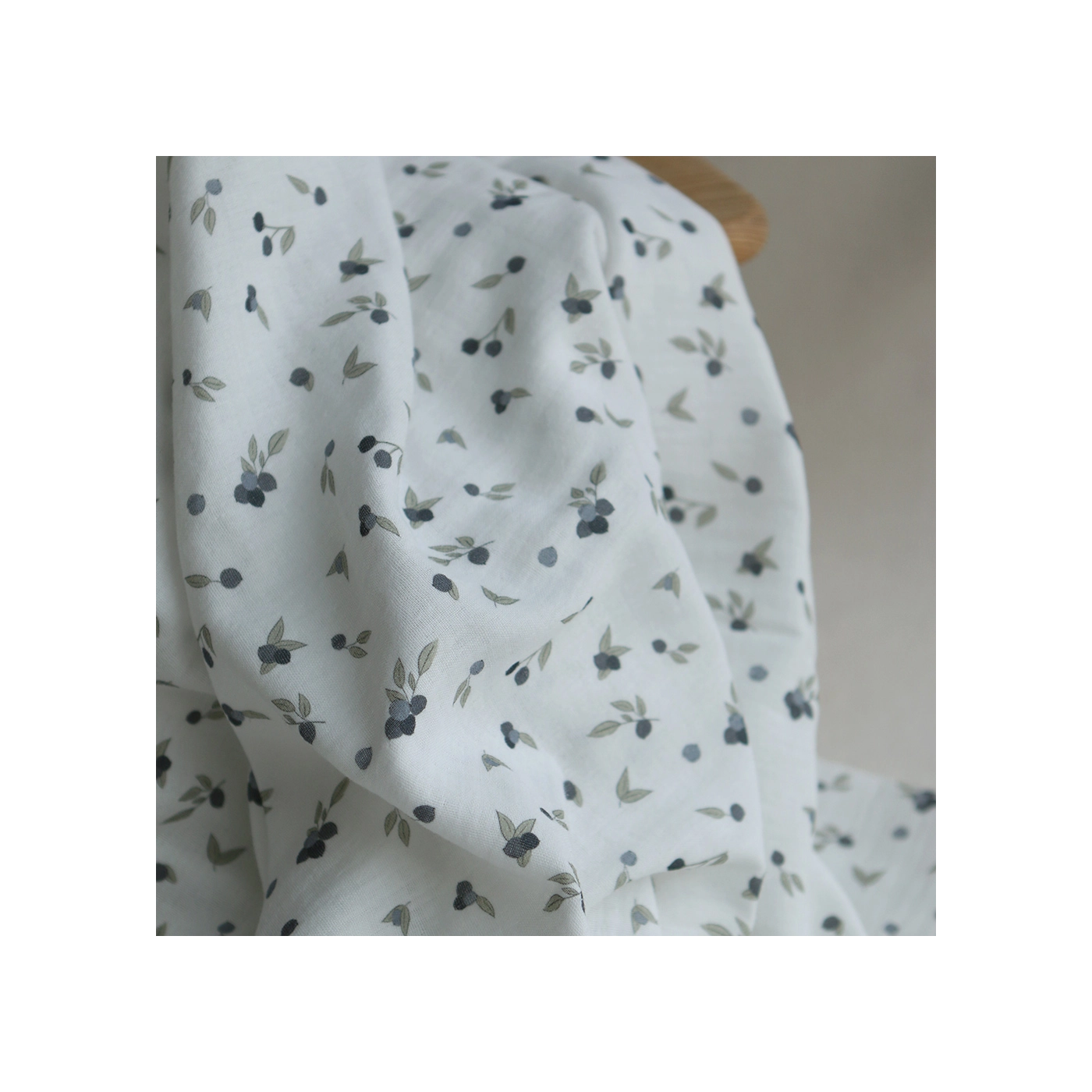 Hind - Double gaze de coton BIO fond blanc imprimé exclusif vert et bleu