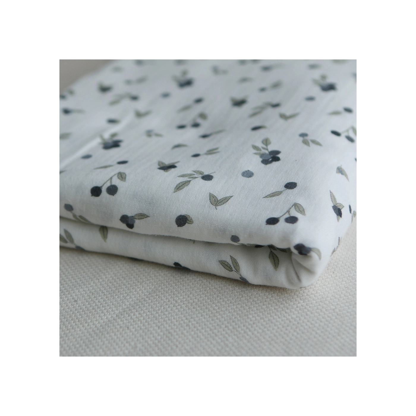 Lilou - Popeline douce coton BIO organique fond blanc imprimé exclusif vert et bleu