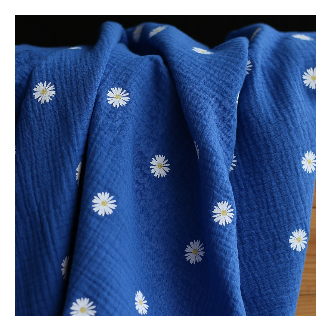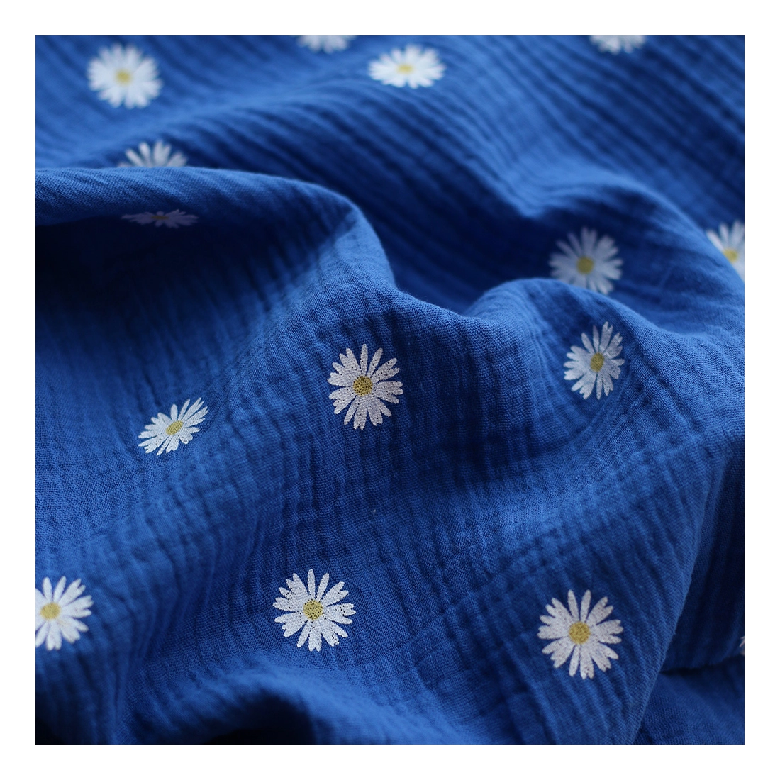 Coloris: motif exclusif Daisy pâquerettes parsemées aléatoirement sur fond bleu cobalt