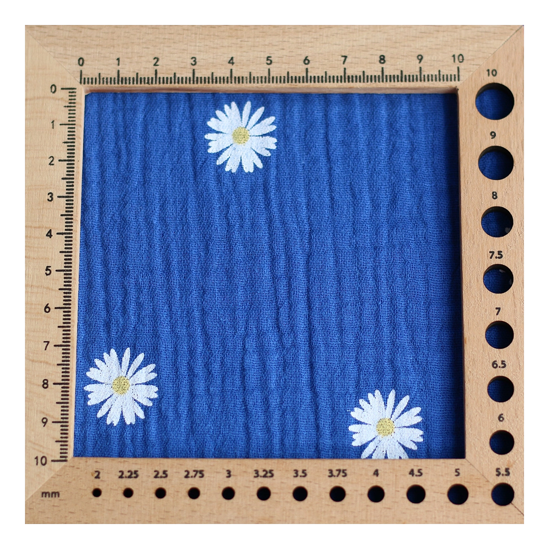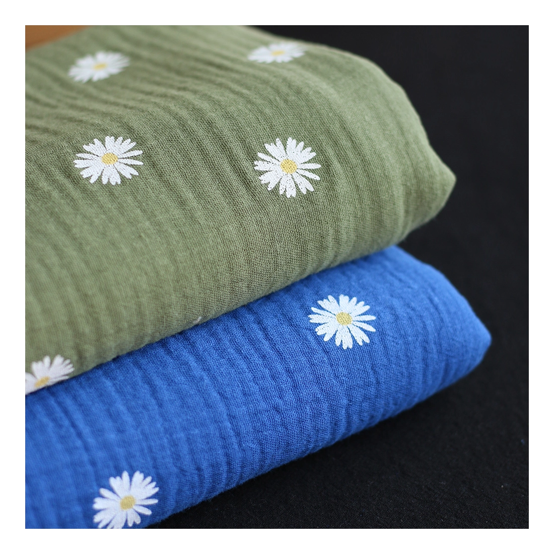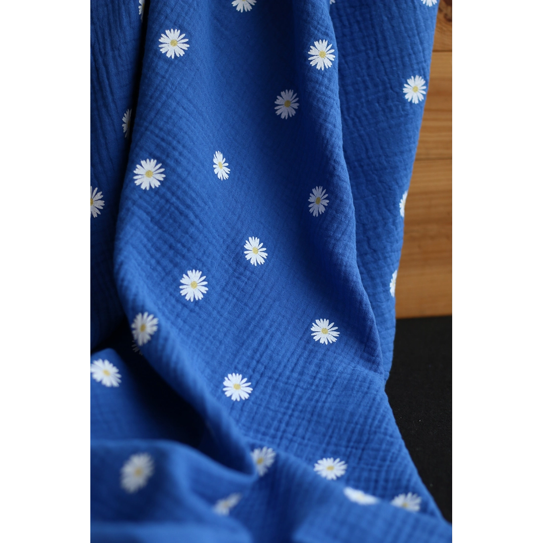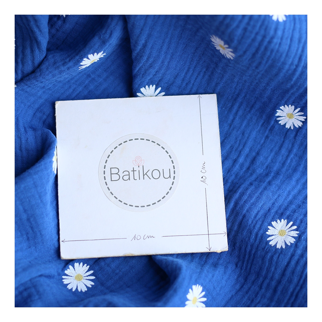 Daisy - Double gaze coton BIO motif exclusif fond bleu cobalt