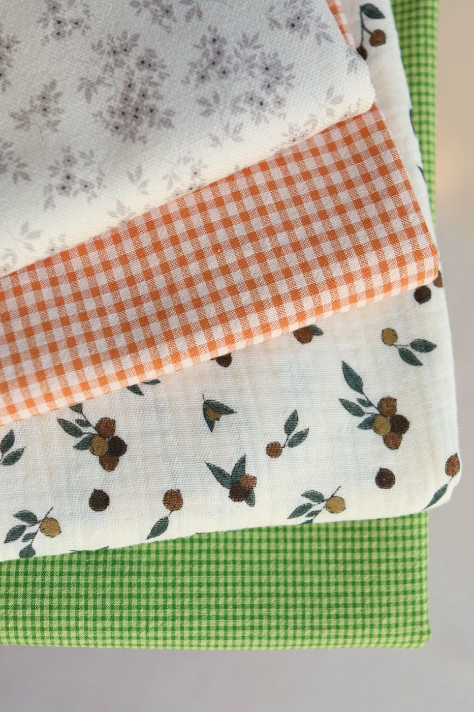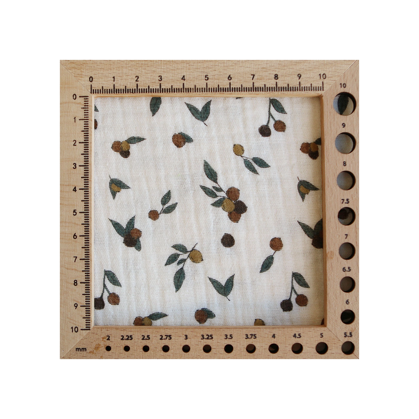 Hind - Double gaze de coton BIO écru motif exclusif baies coloris forêt