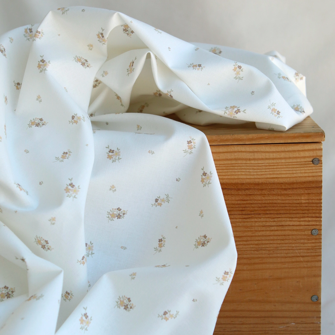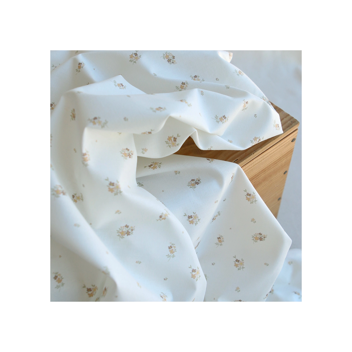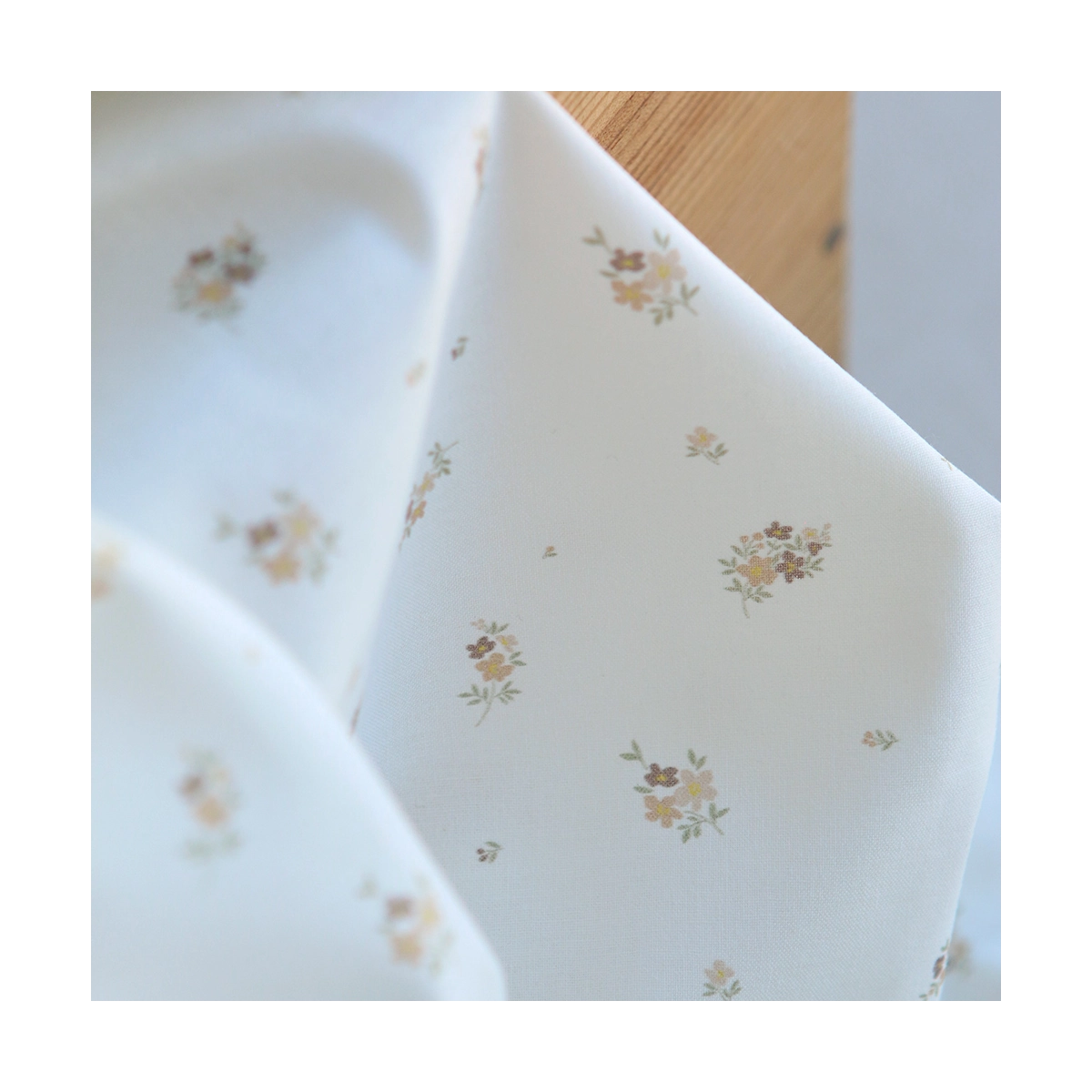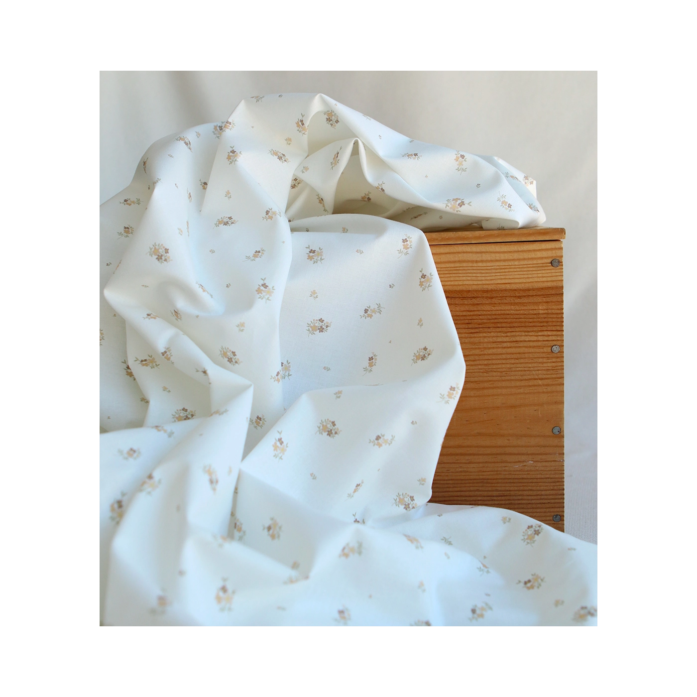 Laure - Popeline douce coton BIO organique fond blanc exclusif fleuri nature