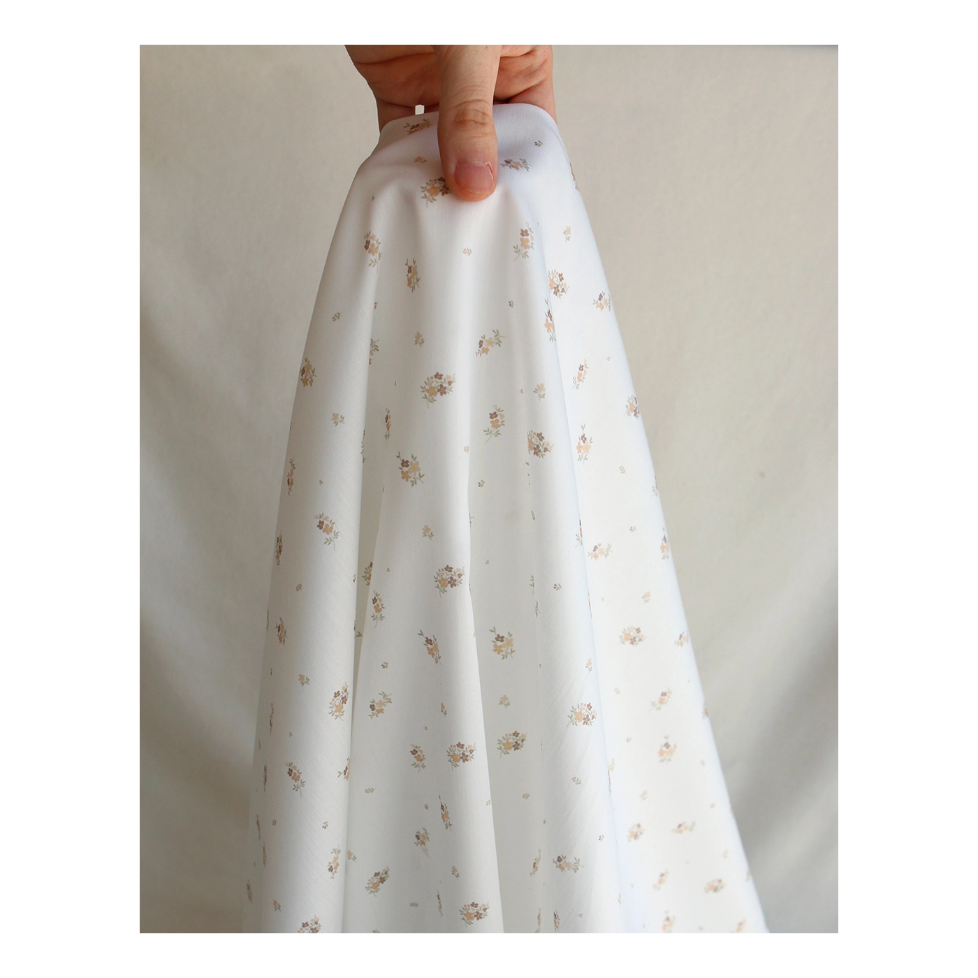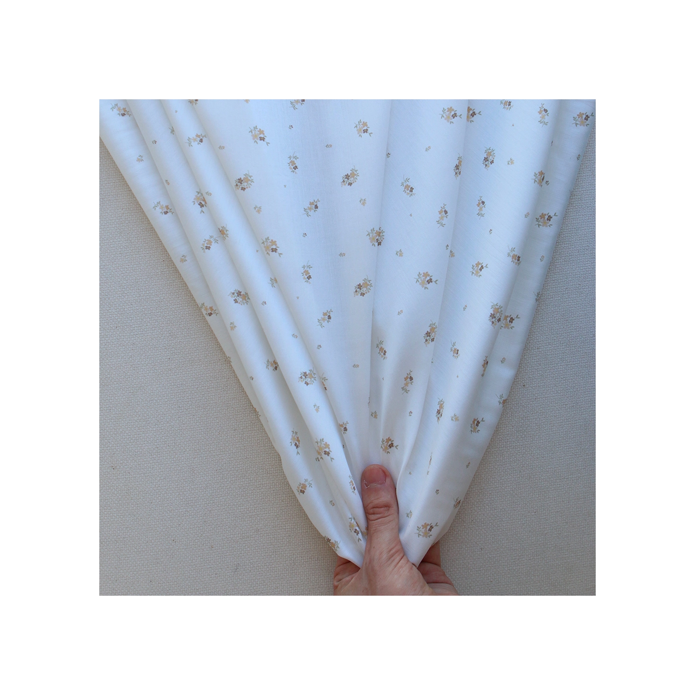 - Coloris motif fleuri exclusif Laure, fond blanc lait motif fleuri nature, teintes de vert, beige et jaune