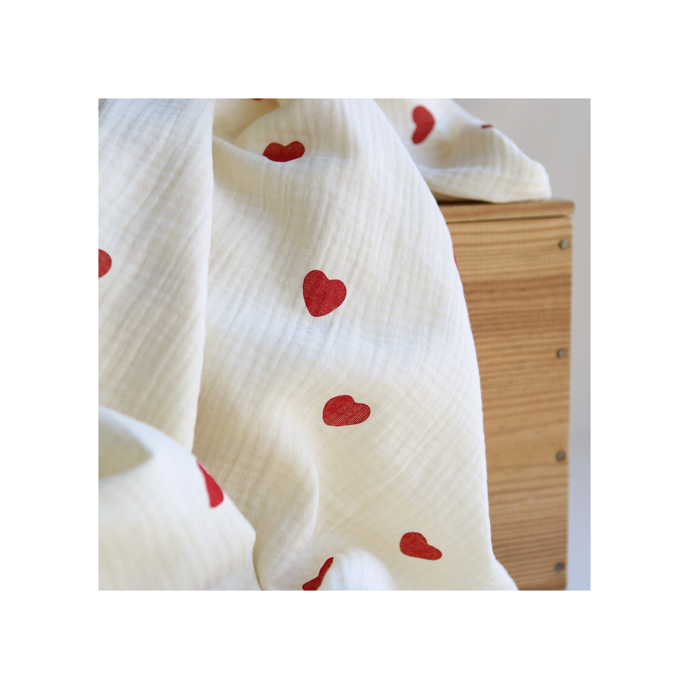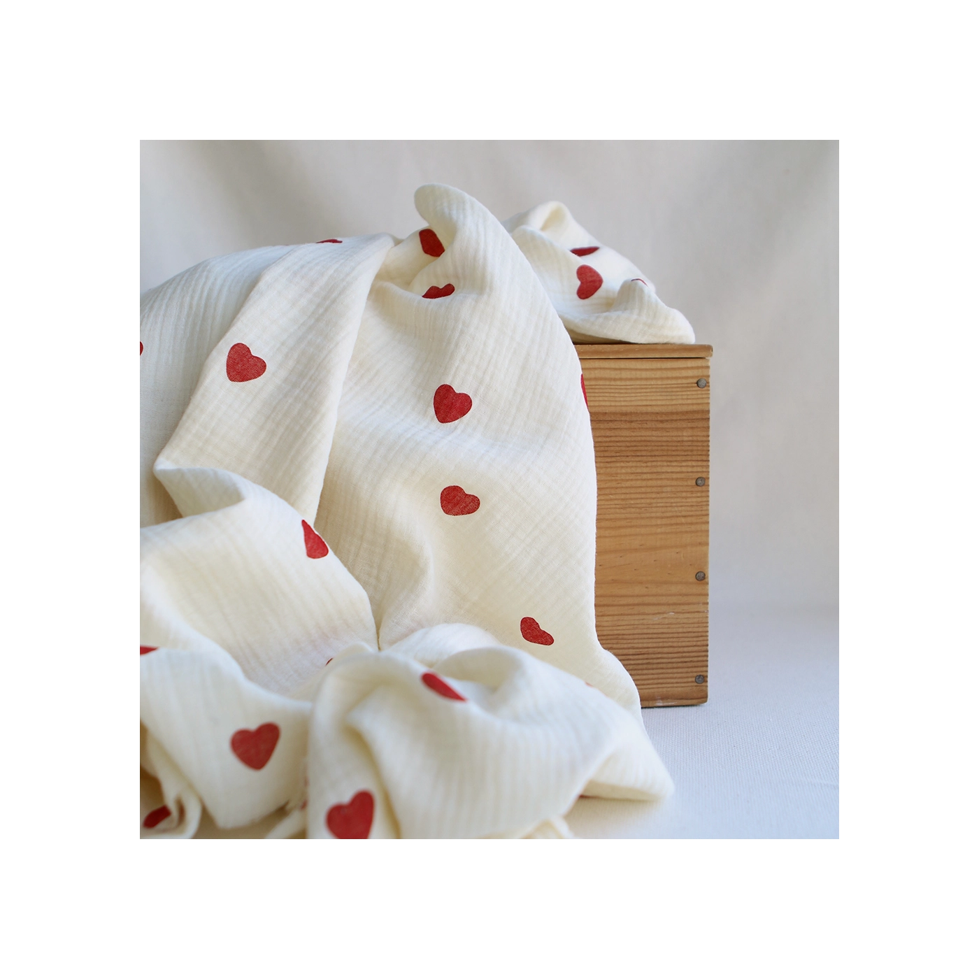 Manou - Double gaze de coton BIO exclusif vanille à motif coeurs