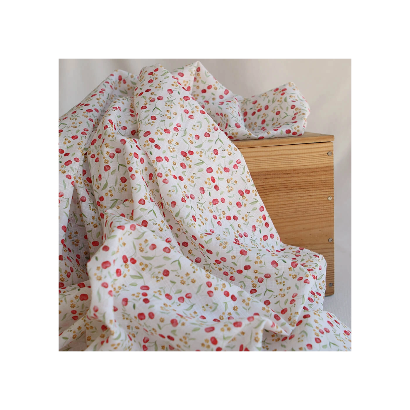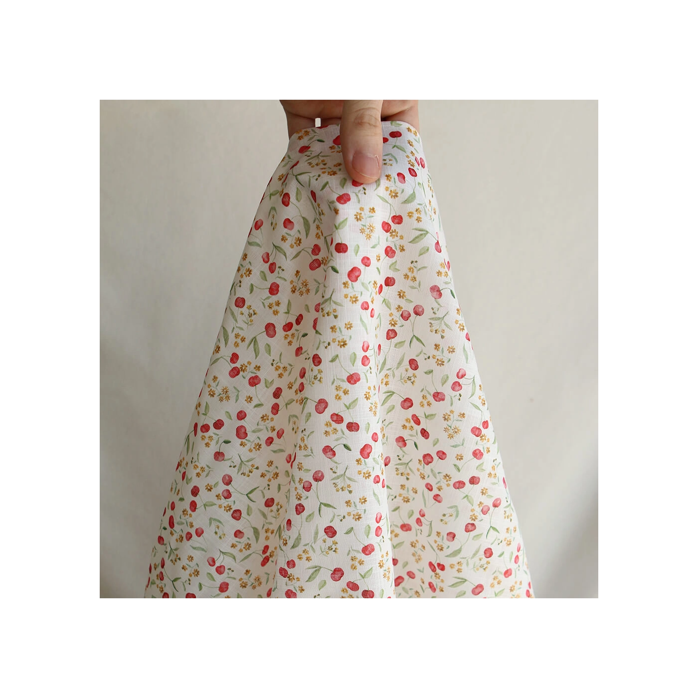 - Coloris fond écru motif cerises et fleurs