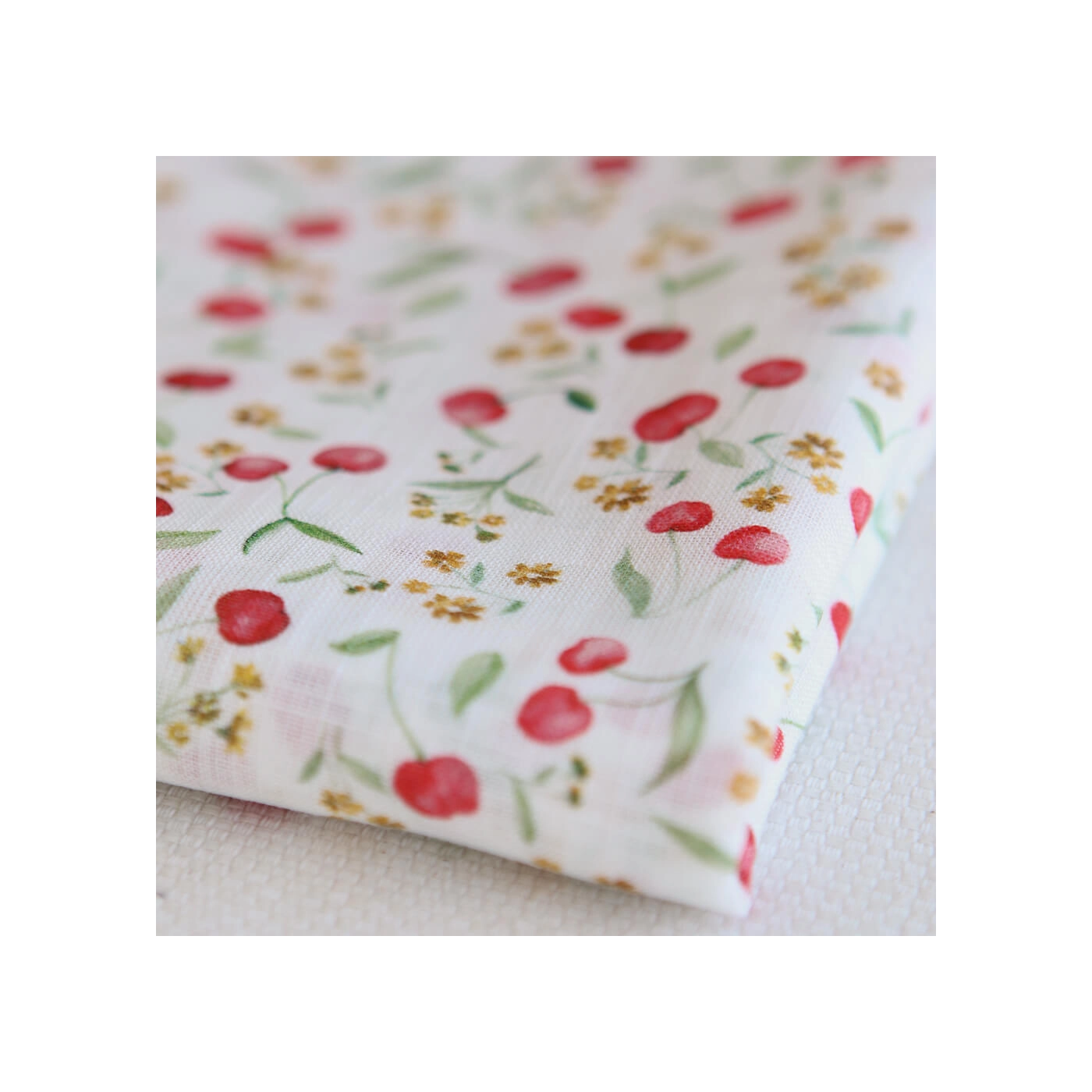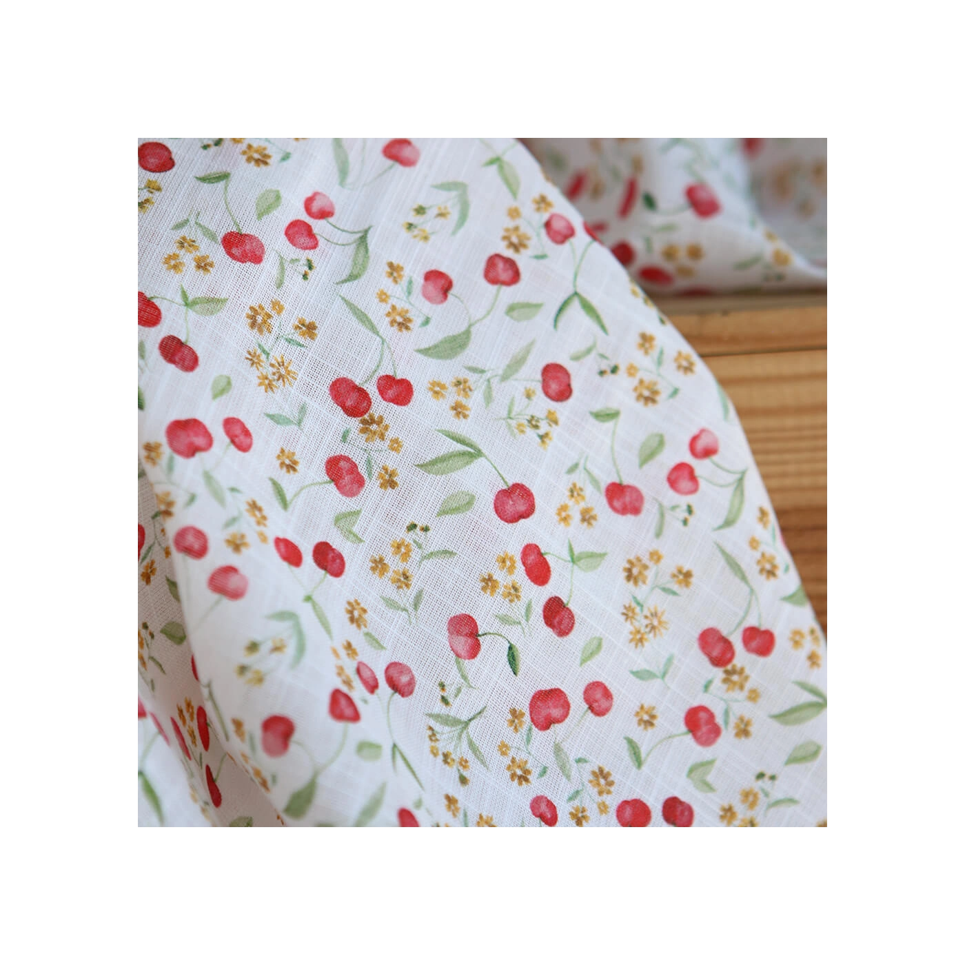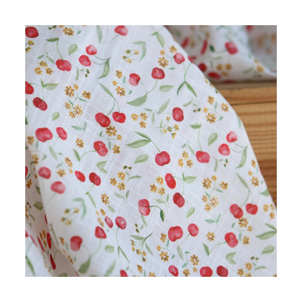 Cerisa - Popeline de coton BIO flamée / rustique motif cerise