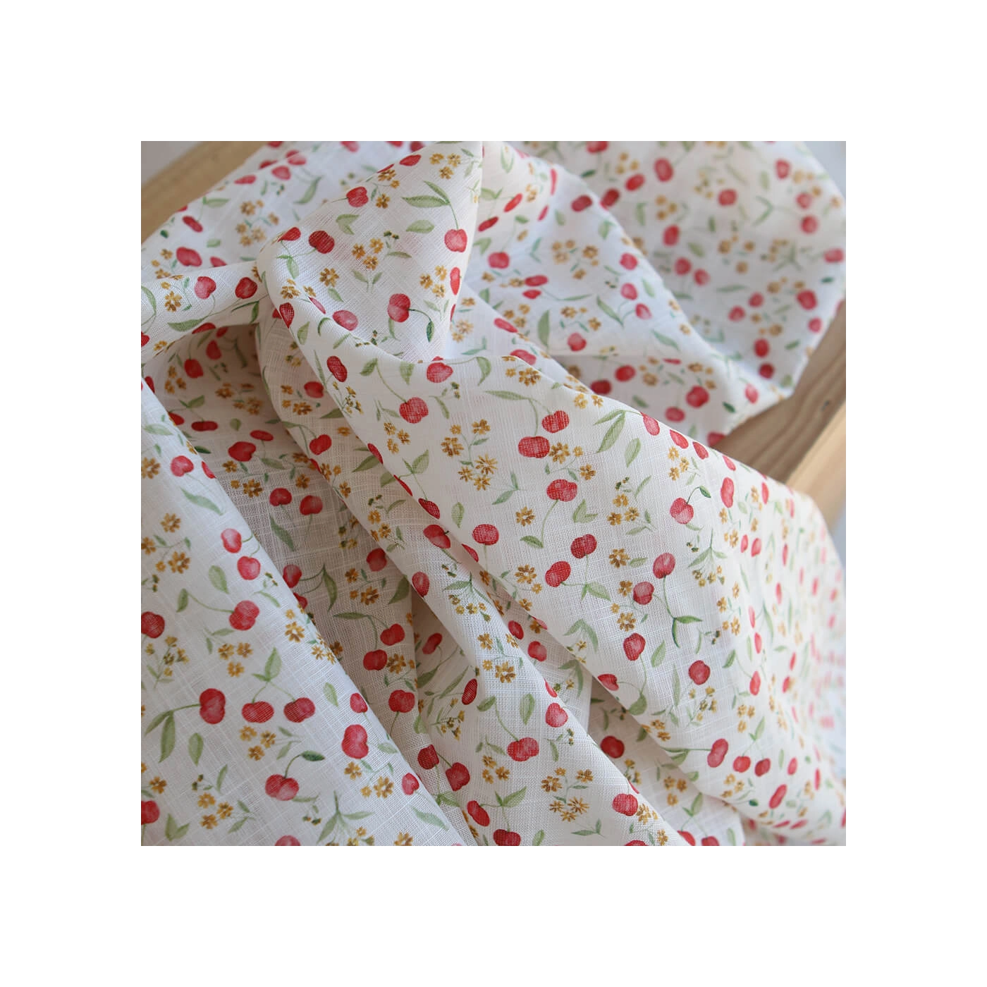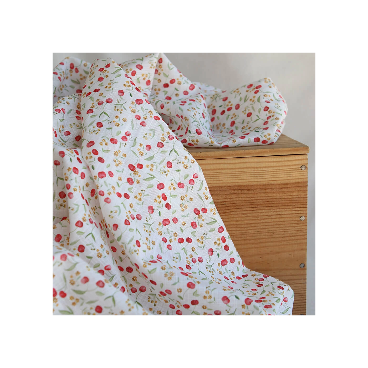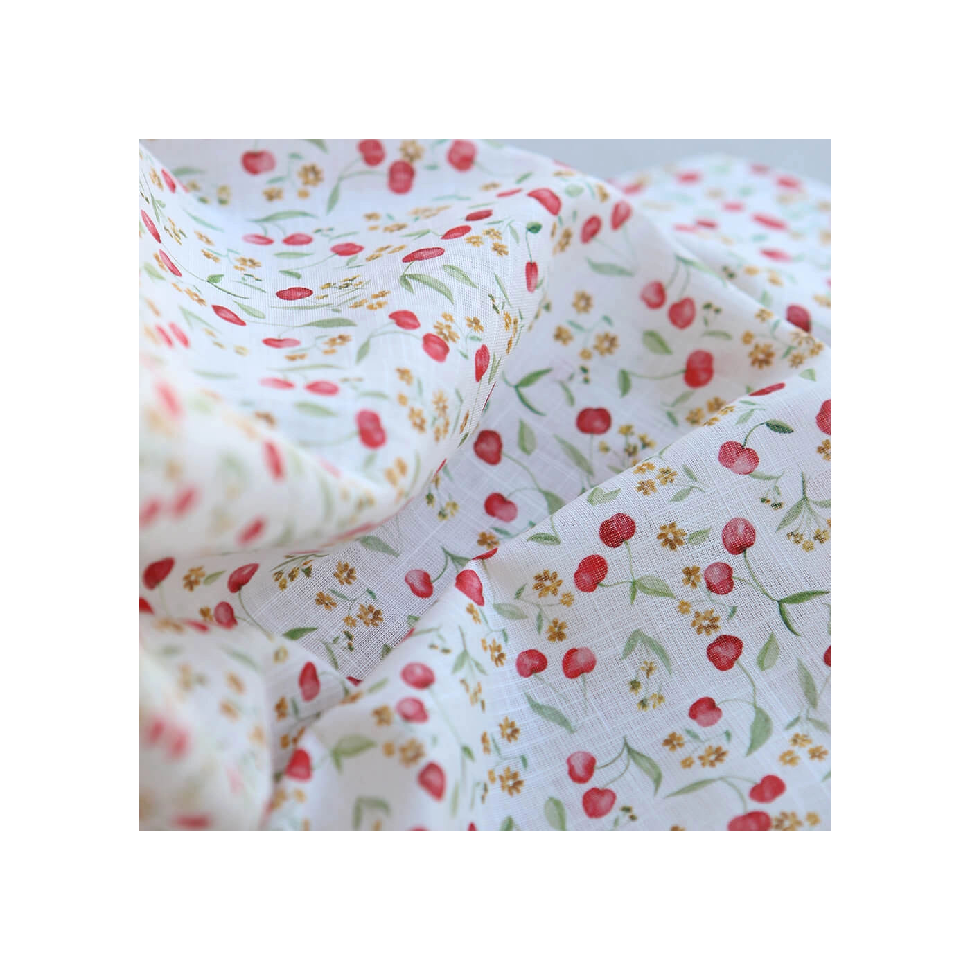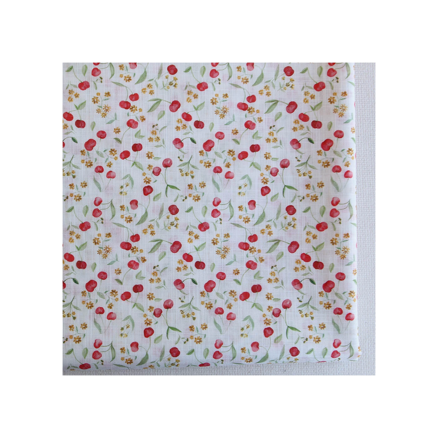 Cerisa - Popeline de coton BIO flamée / rustique motif cerise