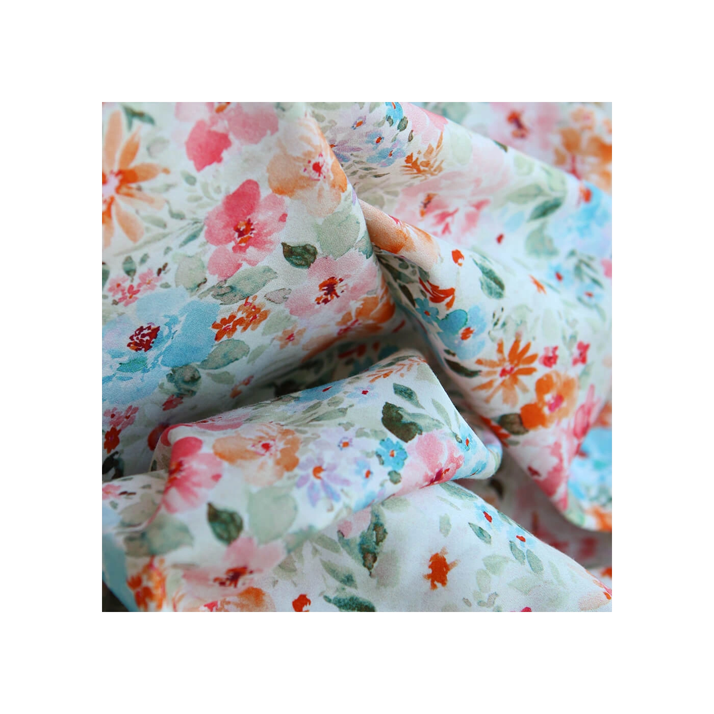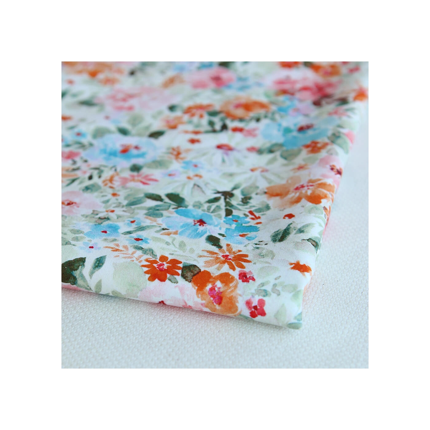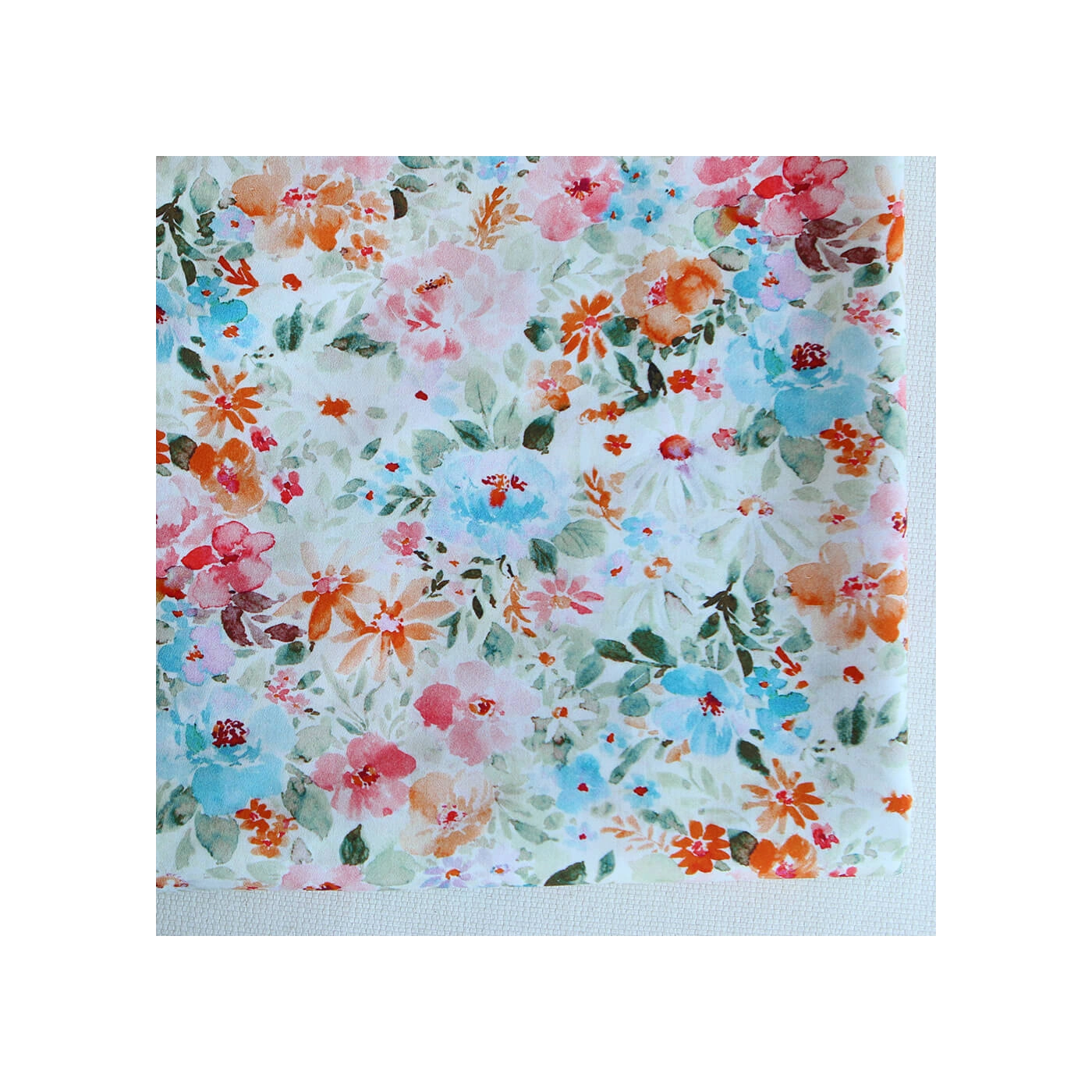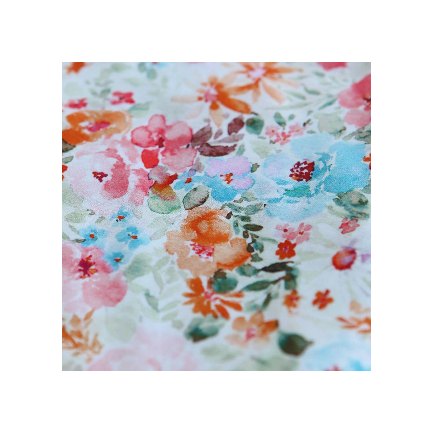 - Coloris motif fleuri aquarelle tons vert, orange, bleu et rose