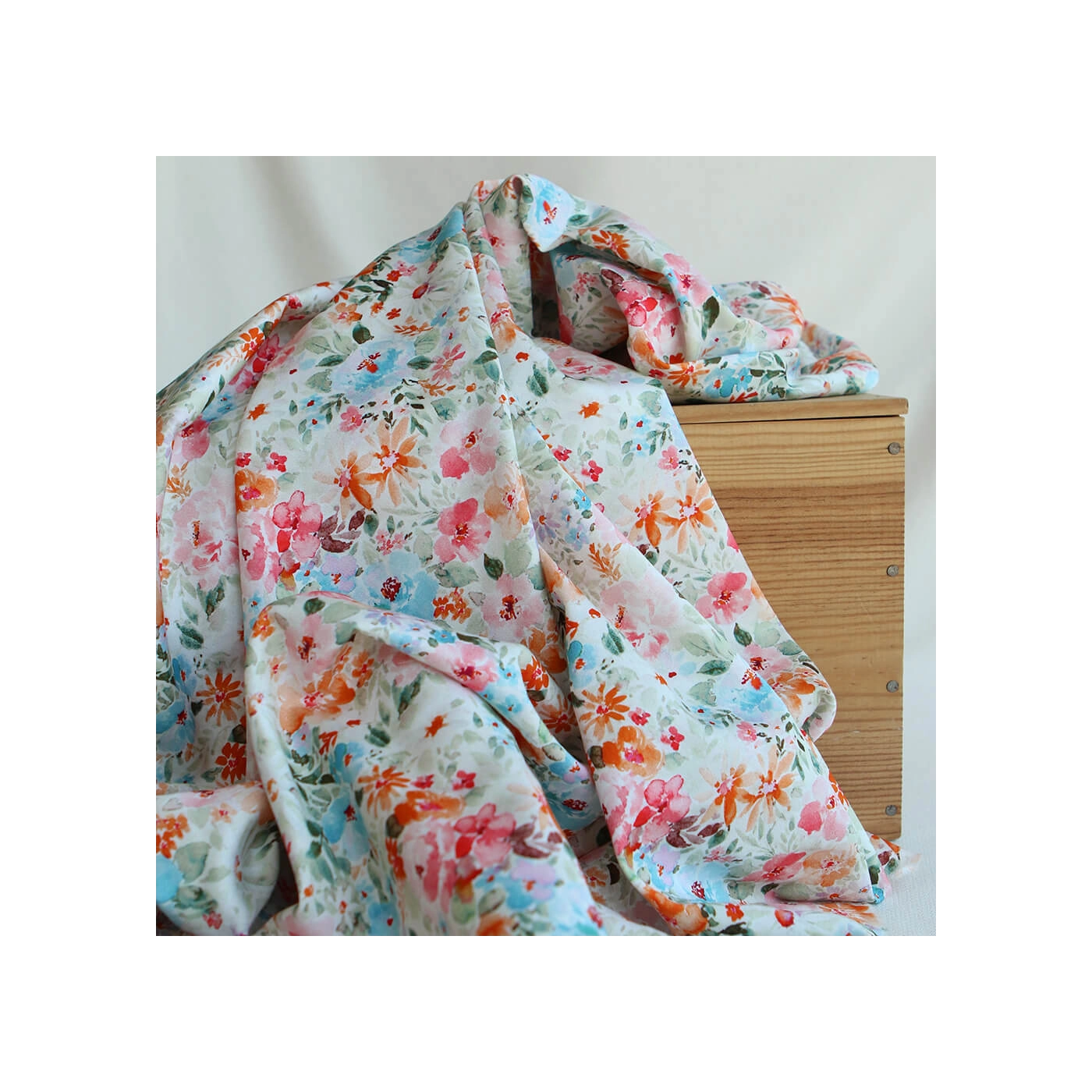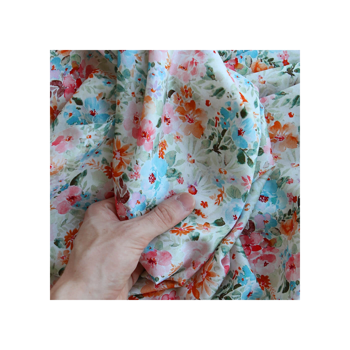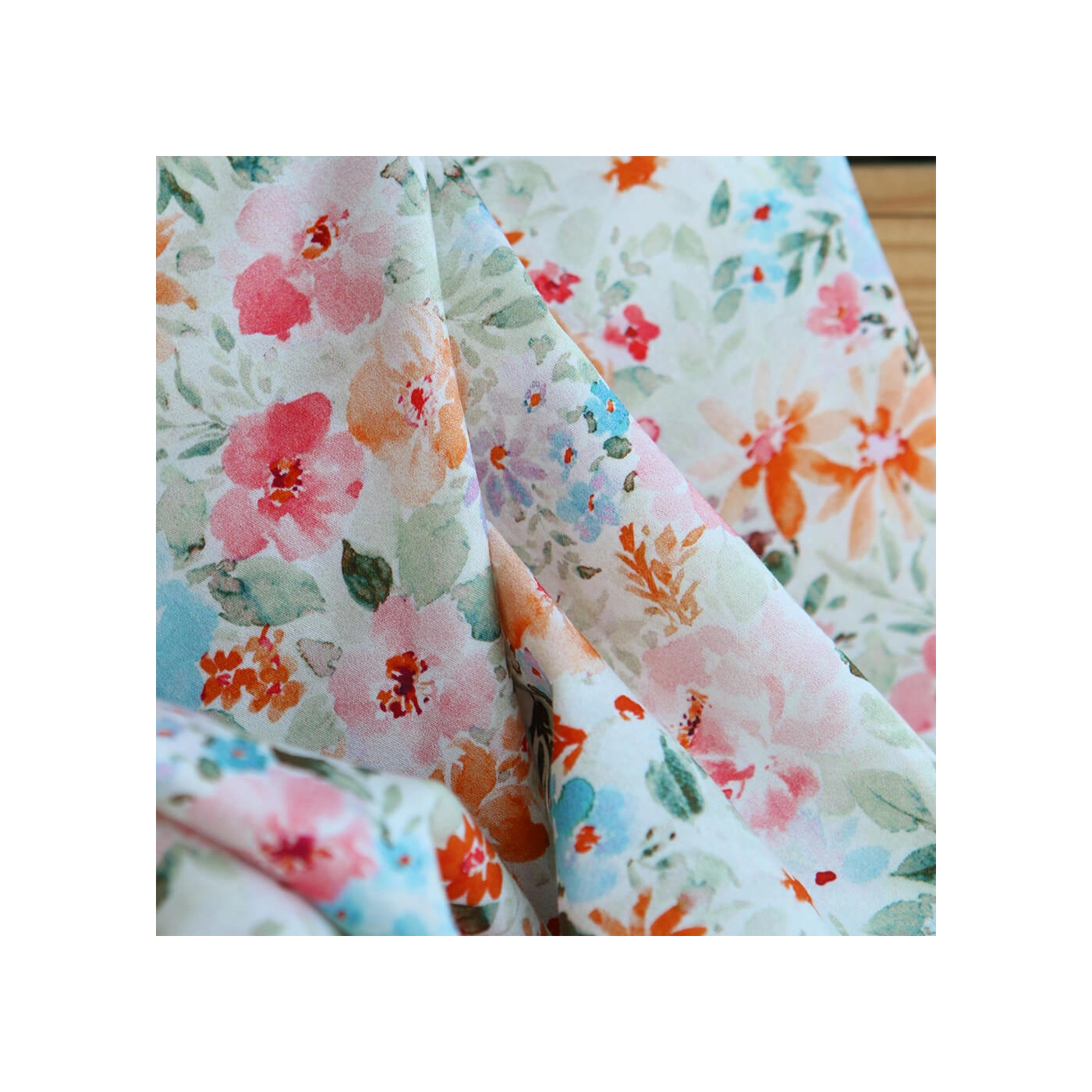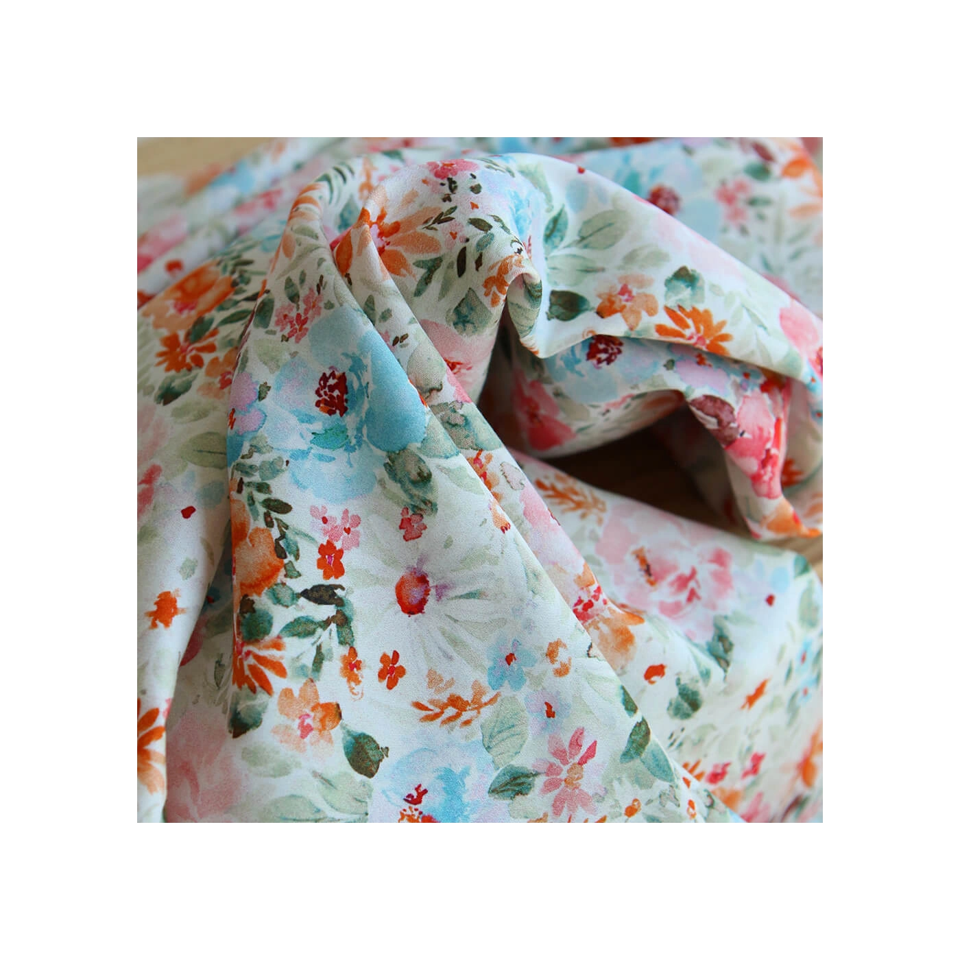 - Coloris motif fleuri aquarelle tons vert, orange, bleu et rose