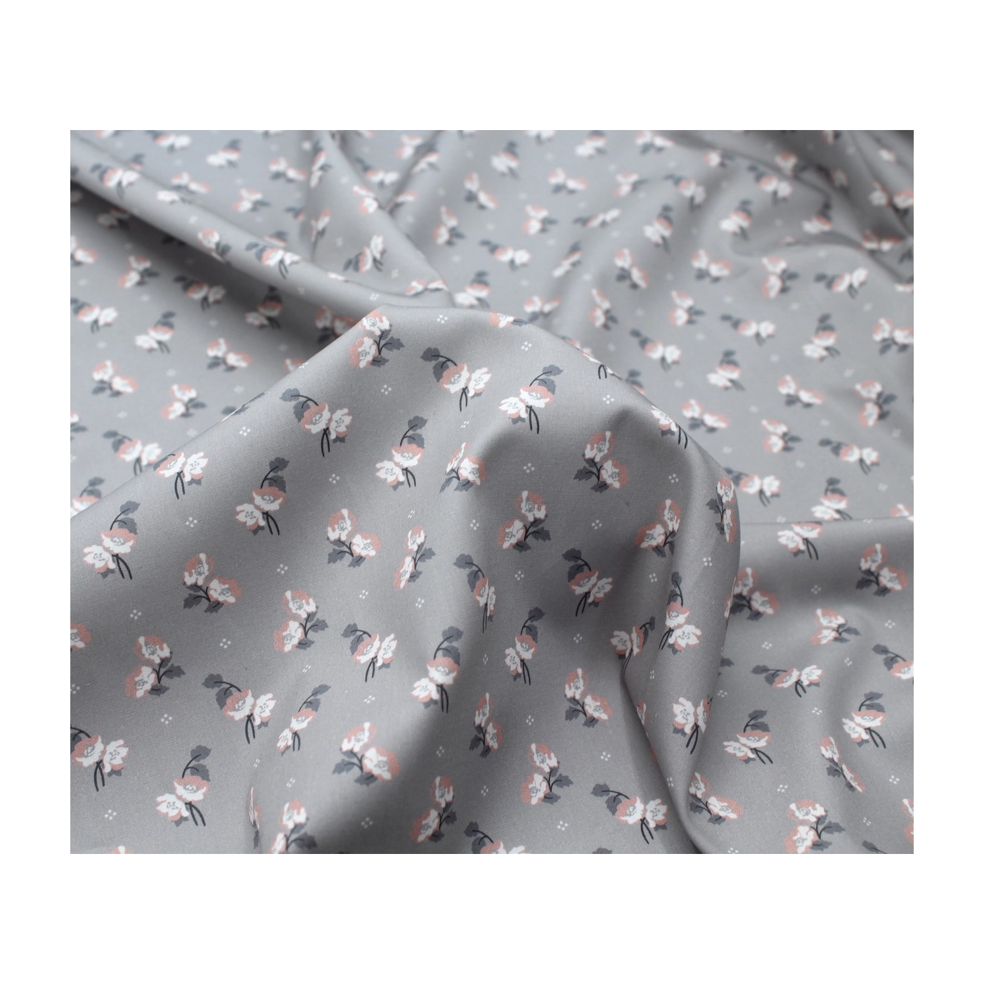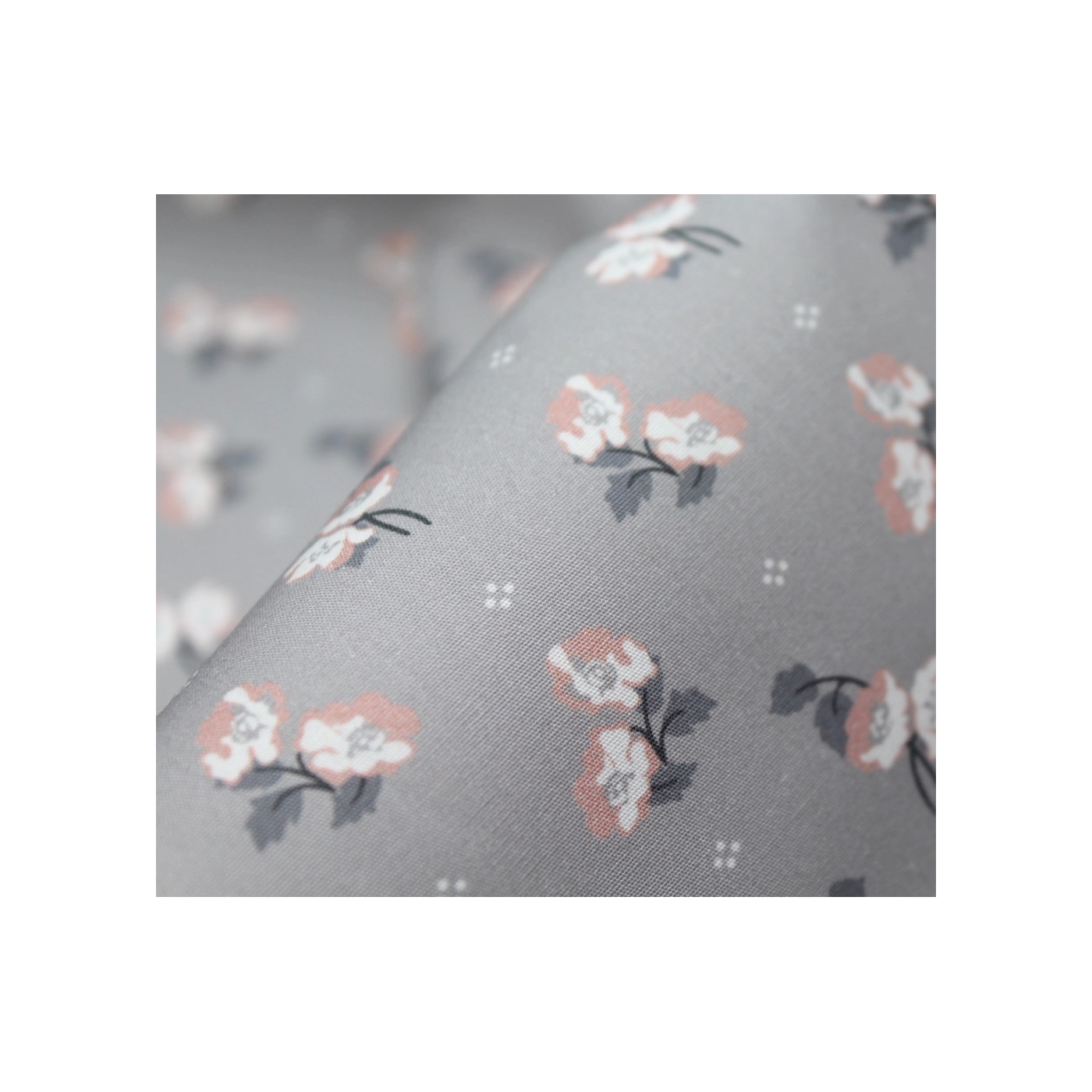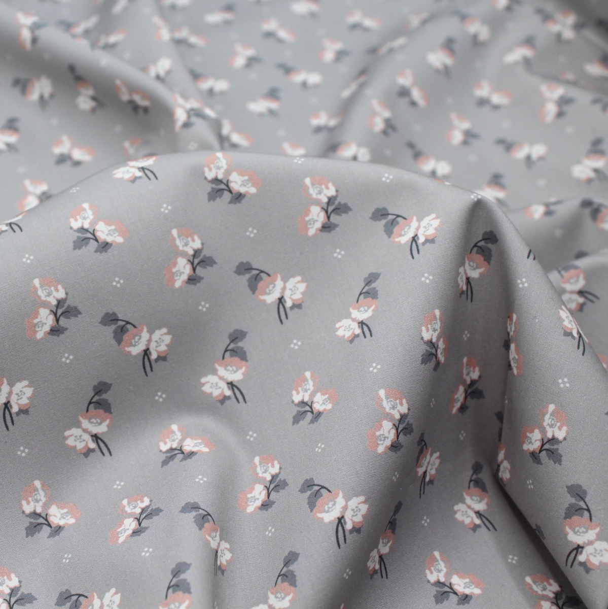 Popeline de coton BIO fine / motif fleuri exclusif Hana gris