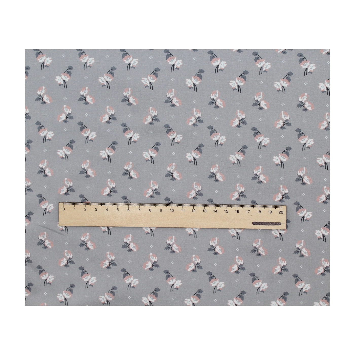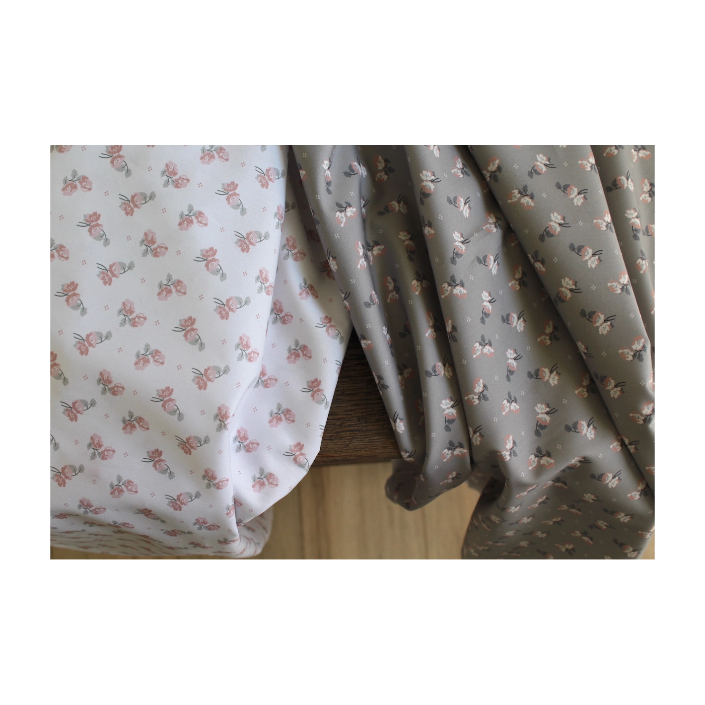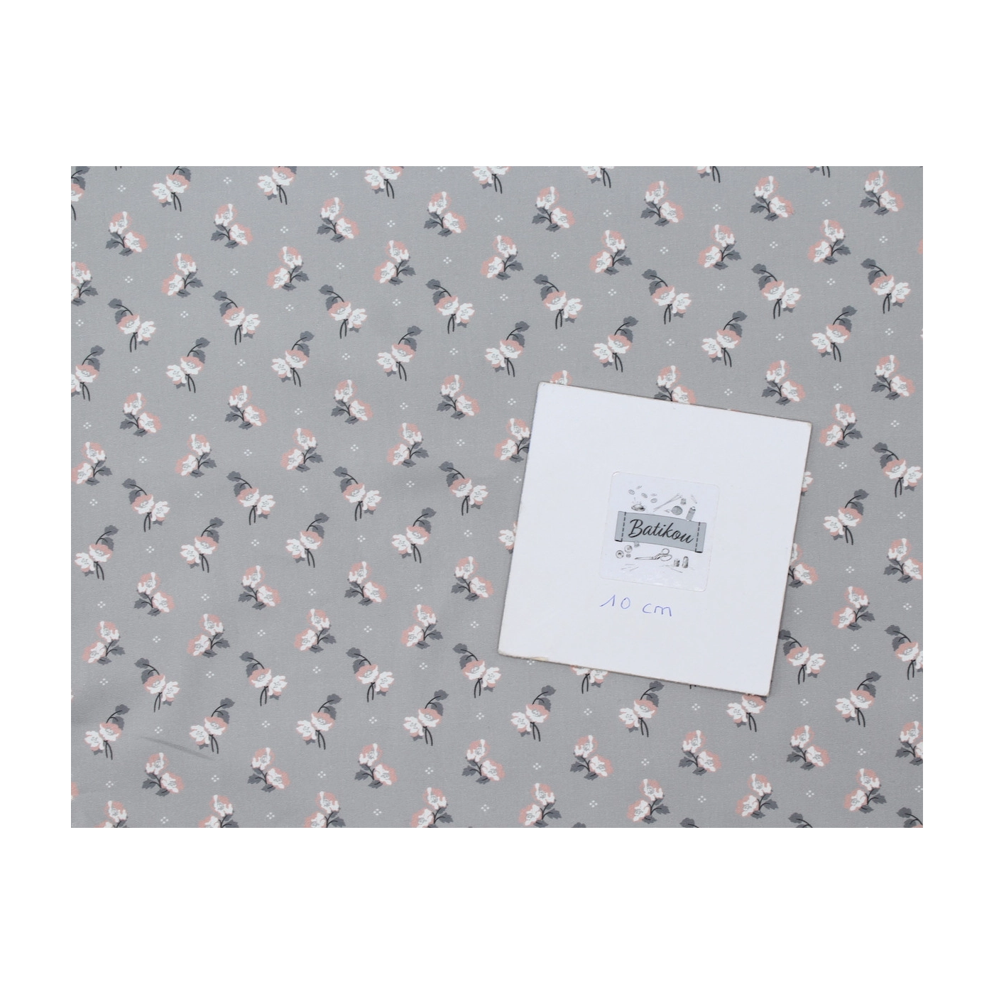 Popeline de coton BIO fine / motif fleuri exclusif Hana gris
