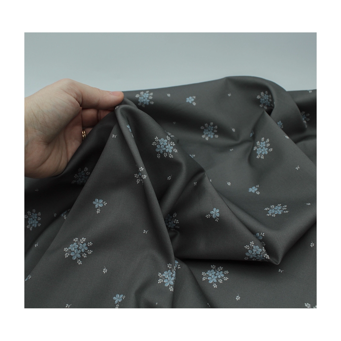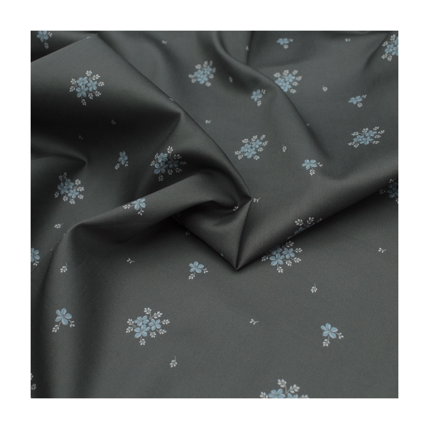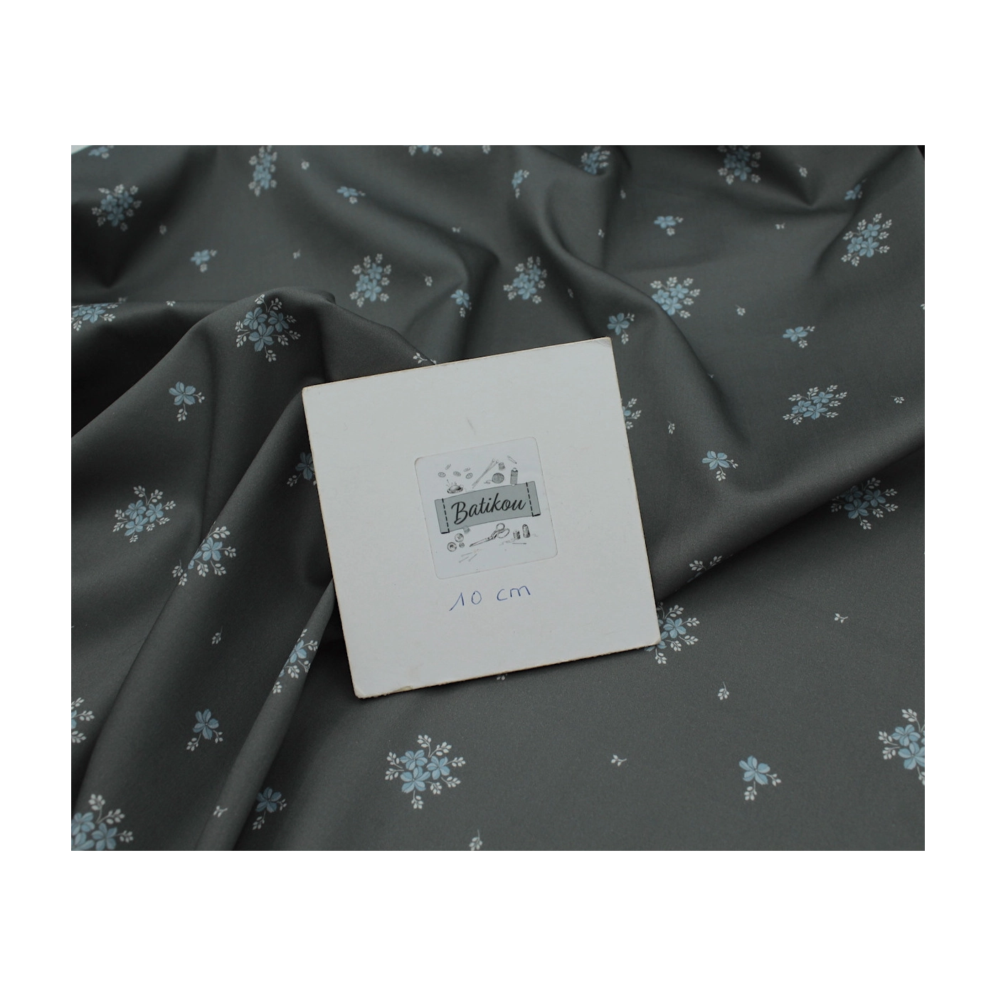 Beth - Coton satiné motif exclusif Batikou fond uni gris étain