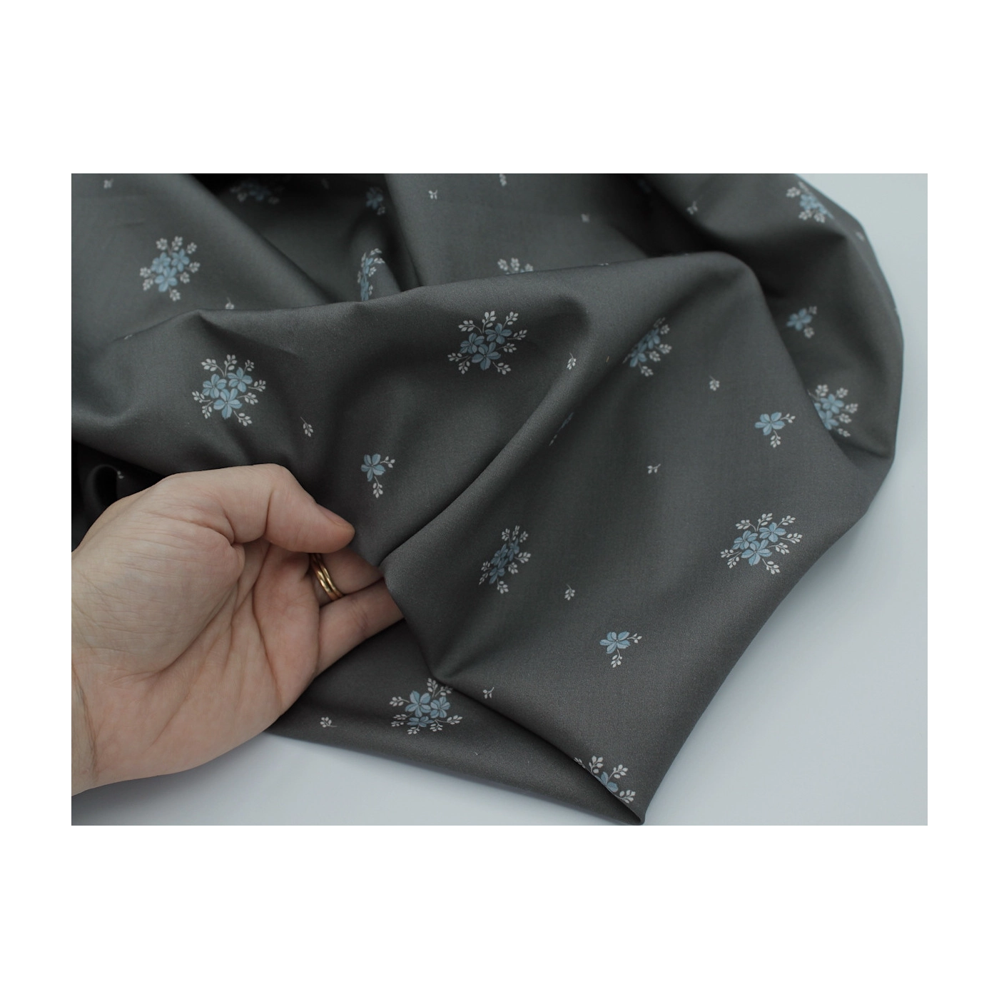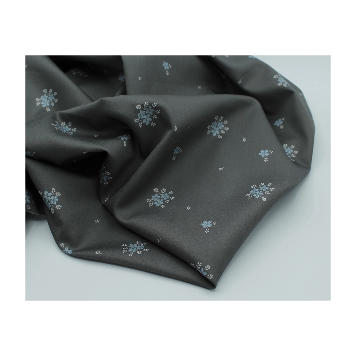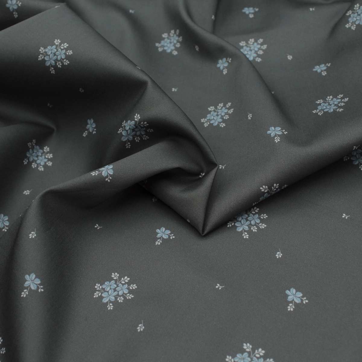 Beth - Coton satiné motif exclusif Batikou fond uni gris étain