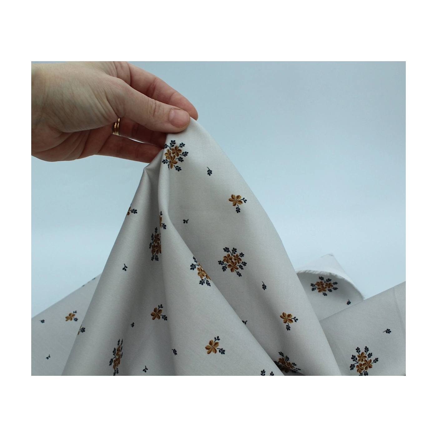 Beth - Coton satiné motif exclusif Batikou fond uni gris perle