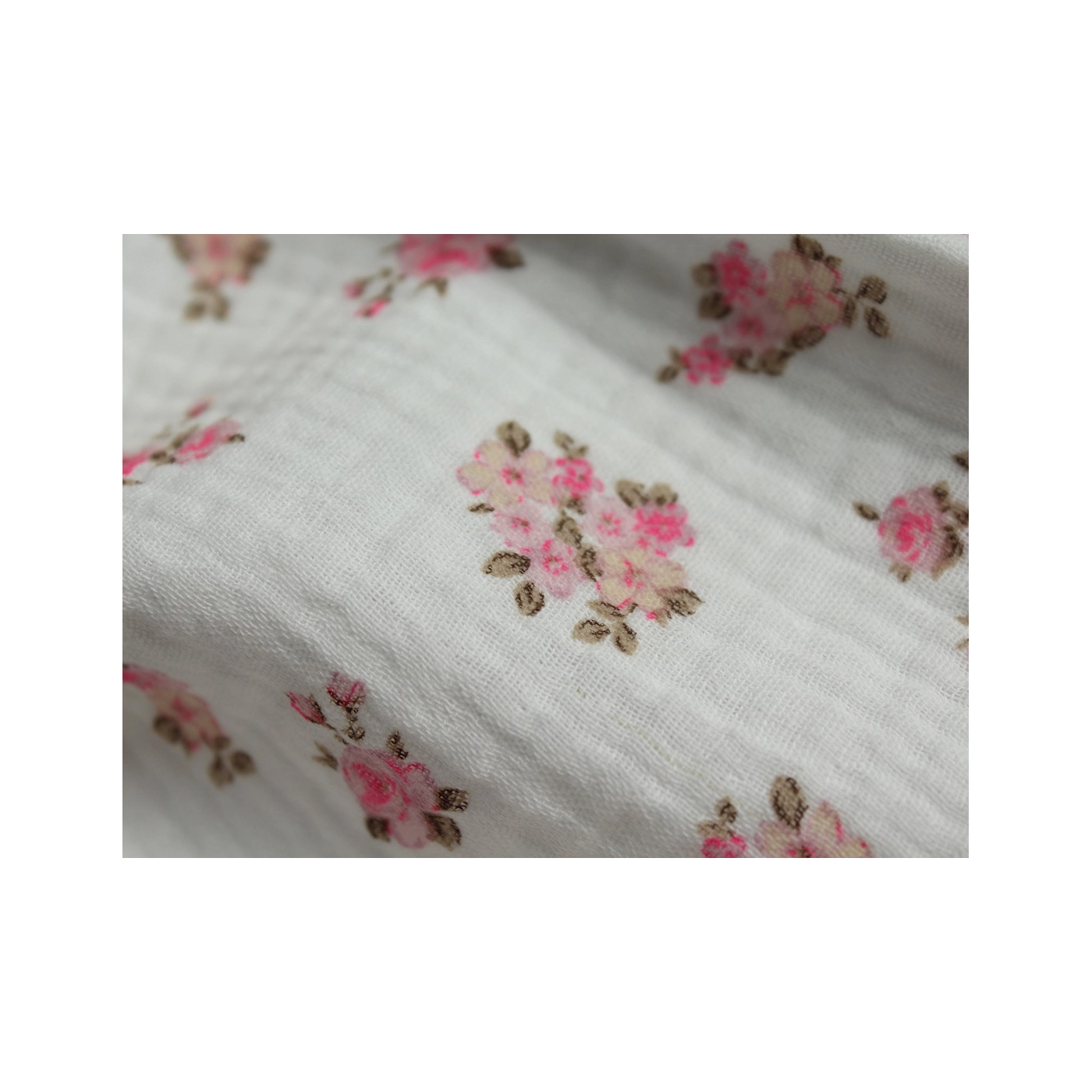 Meriem - Double gaze de coton BIO exclusif blanc à motifs fleuris gris