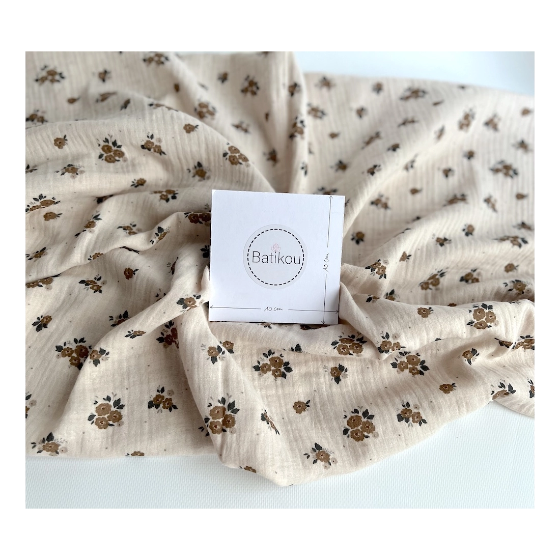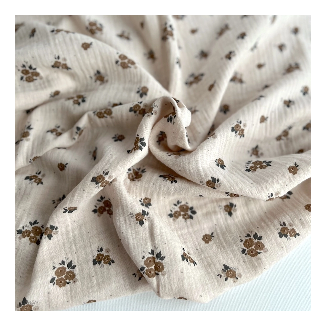 ROZEN - Double gaze de coton BIO crème motif exclusif Rozen forêt