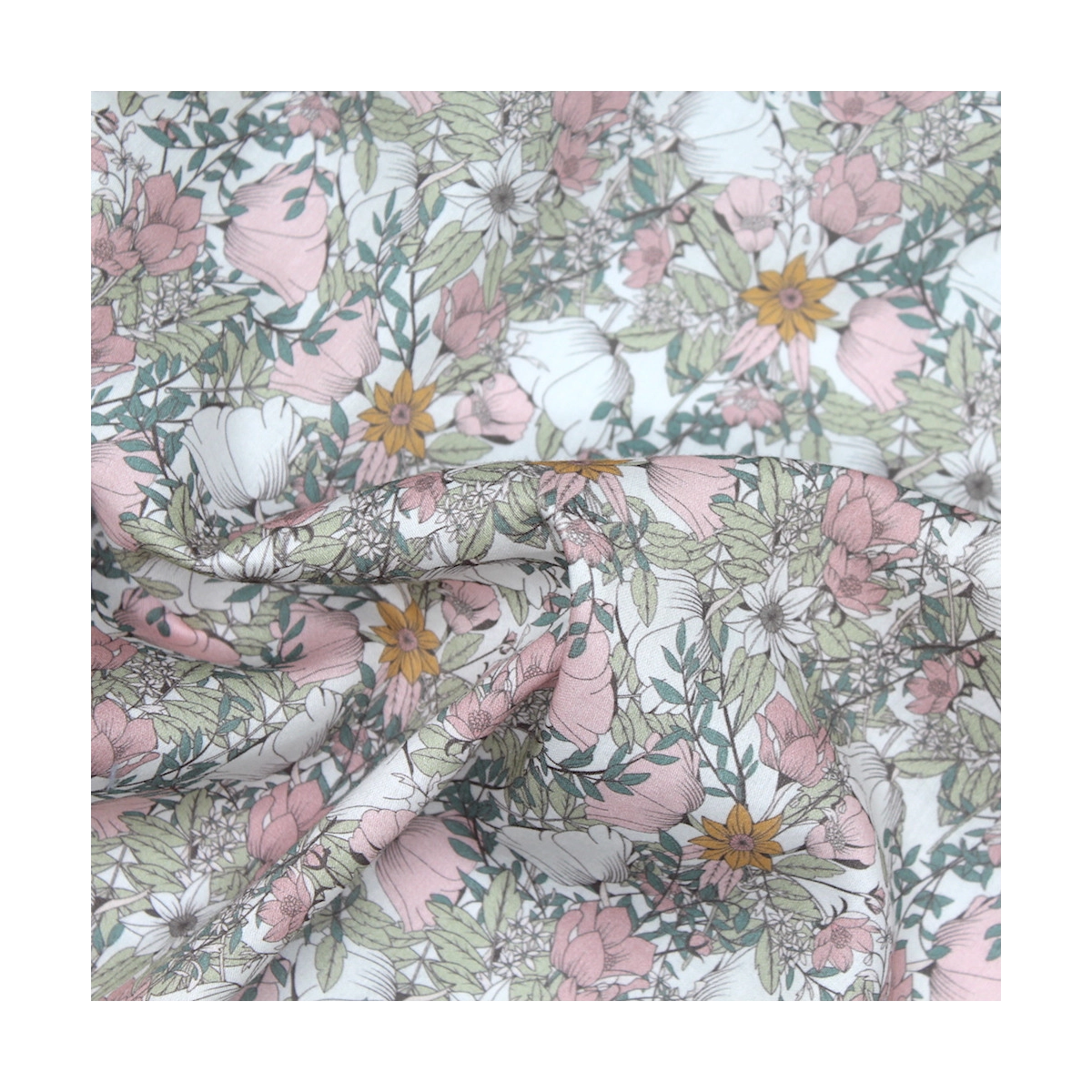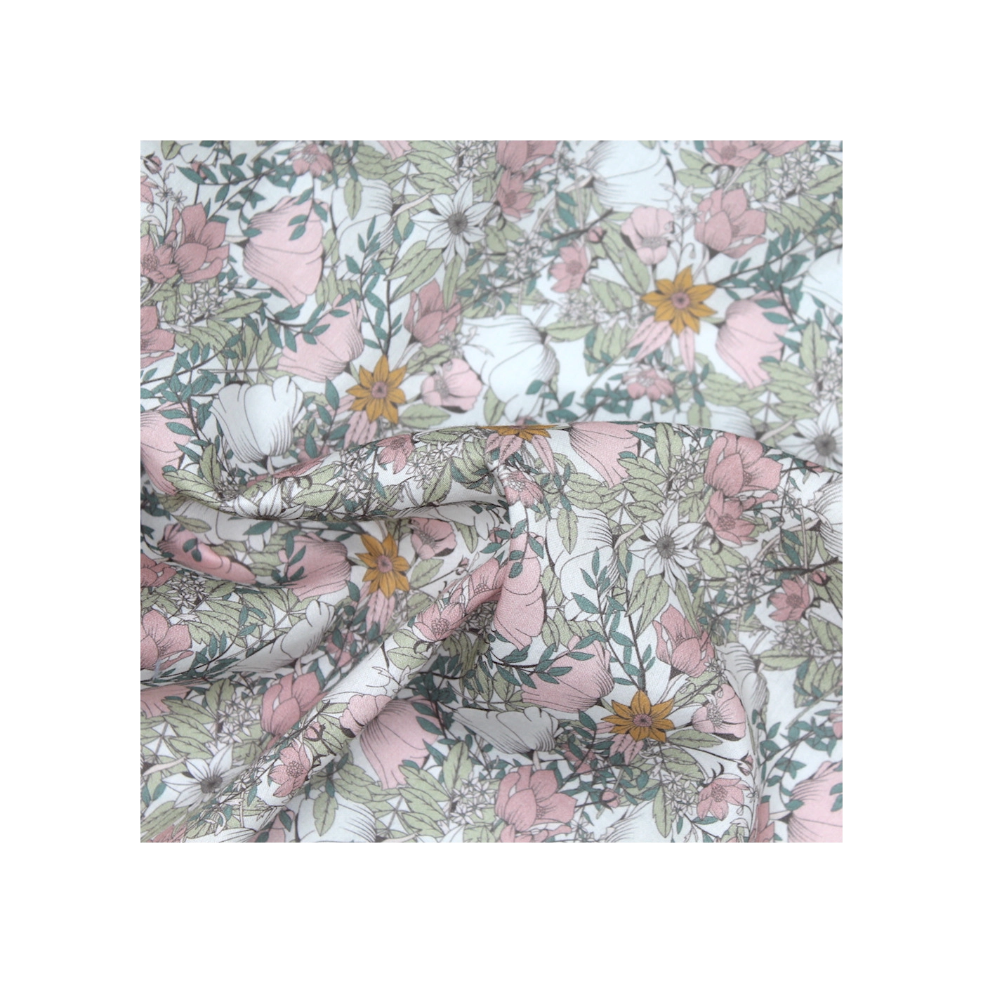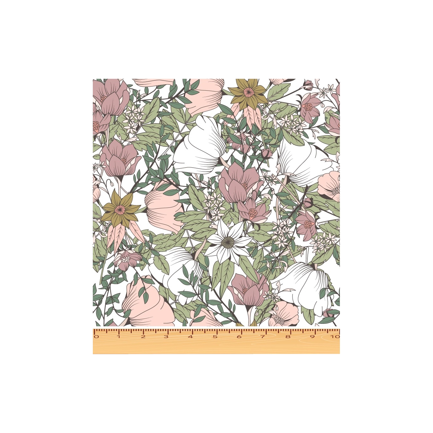 Lilou - Popeline douce coton BIO organique fond blanc imprimé exclusif vert et rose