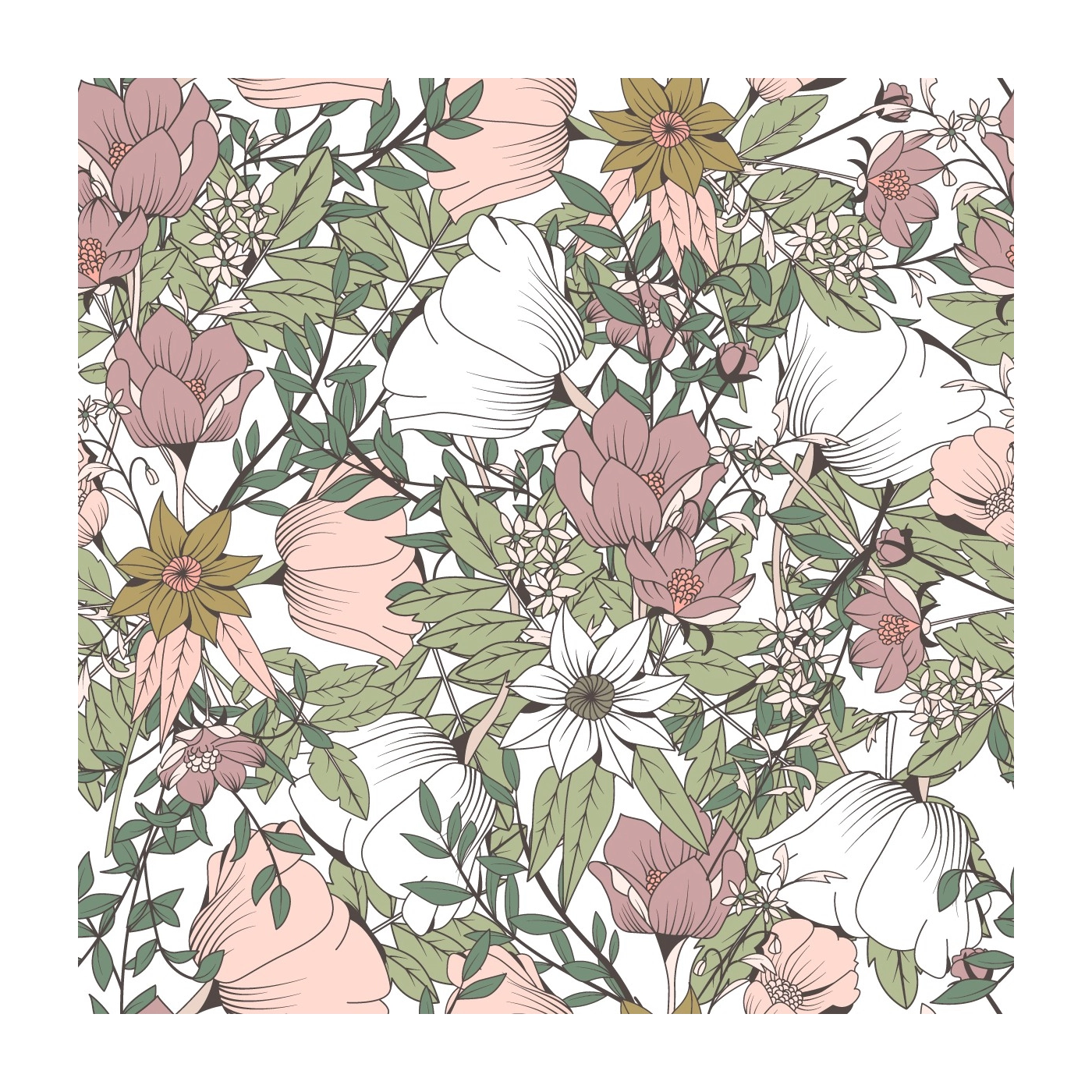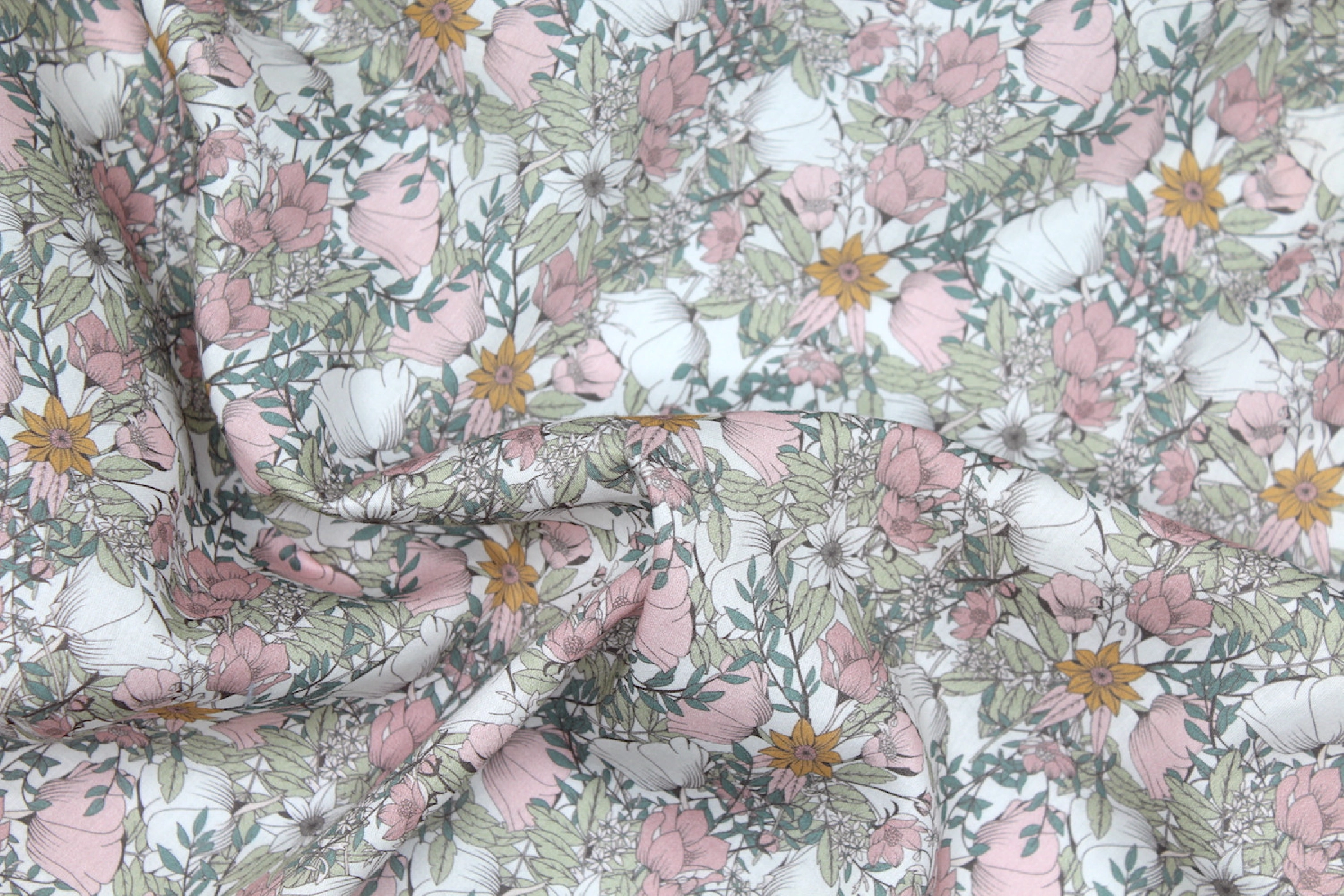 Christine - Popeline douce coton BIO organique fond blanc exclusif vert et rose