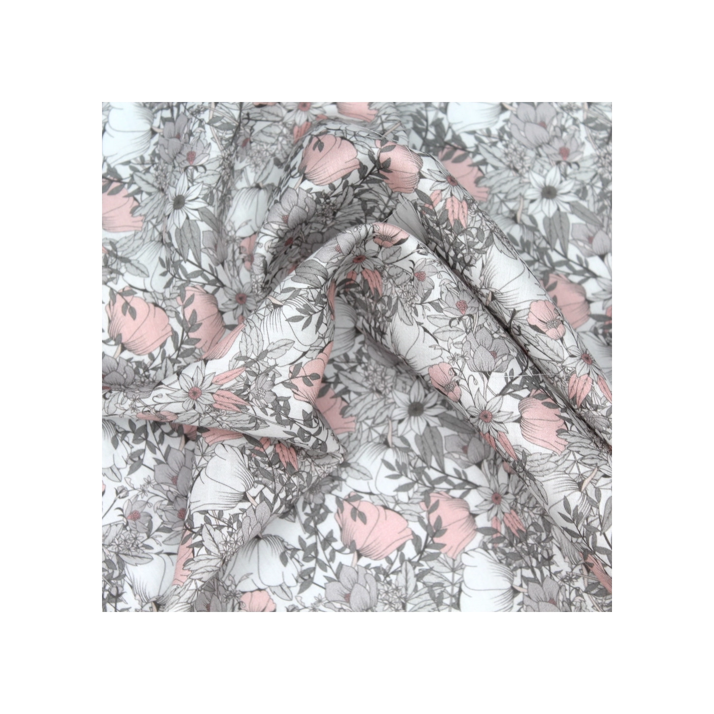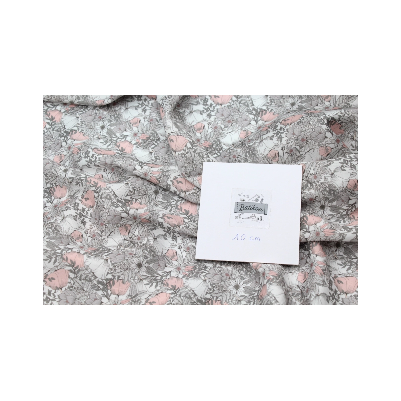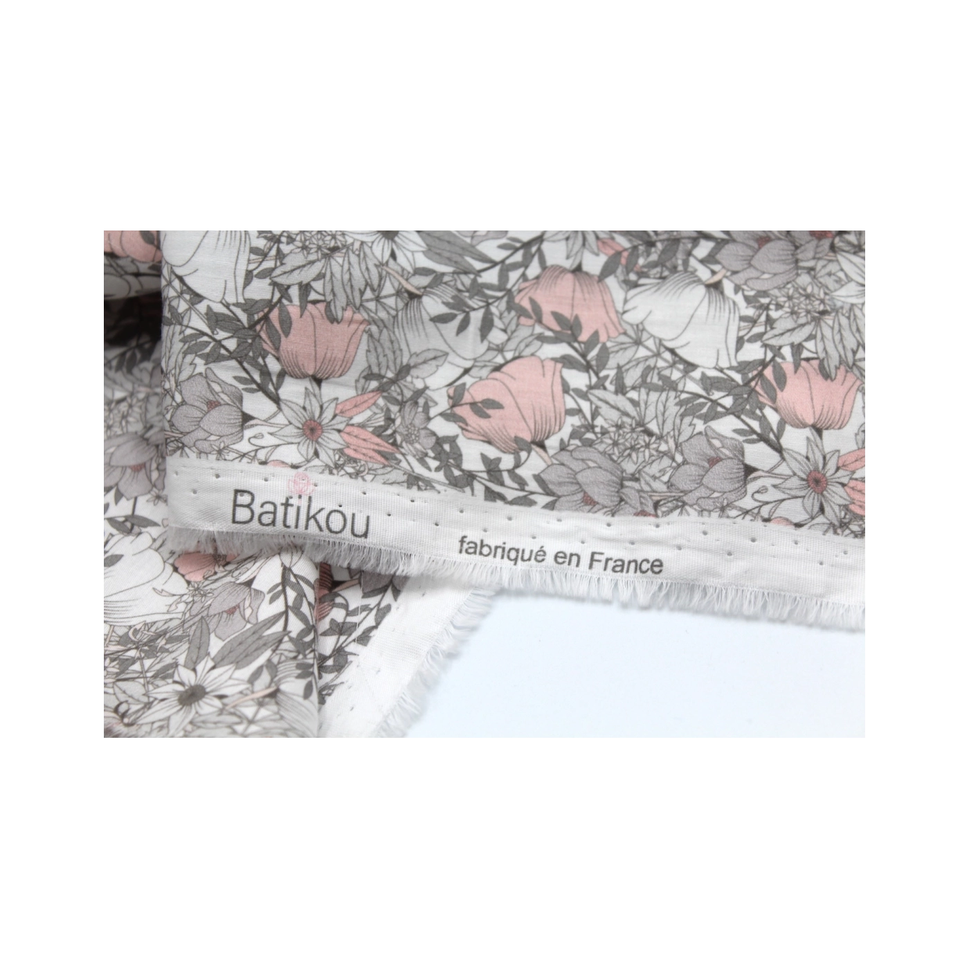 Tissu exclusif Coton lawn motif Lina gris