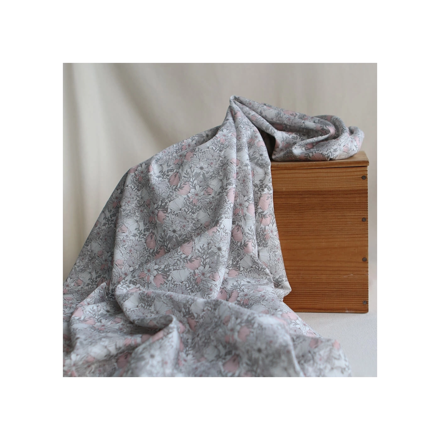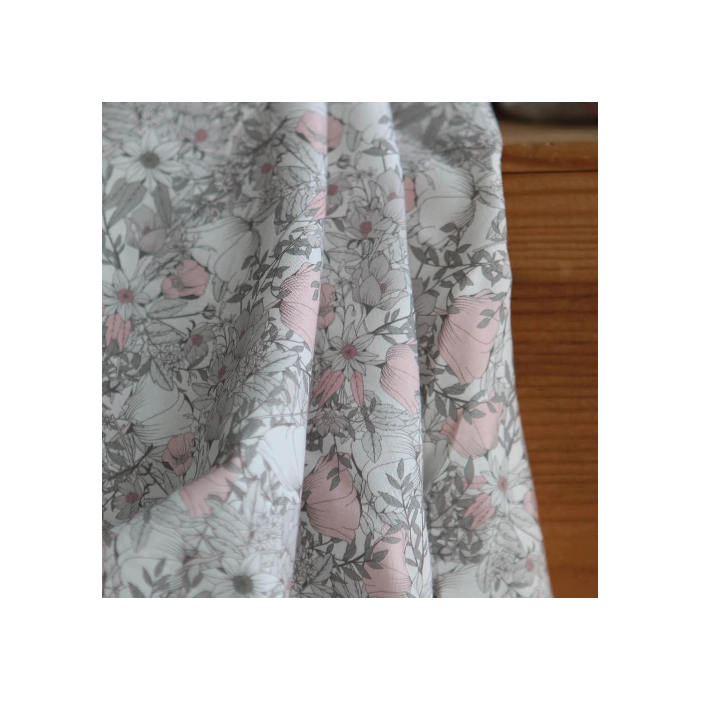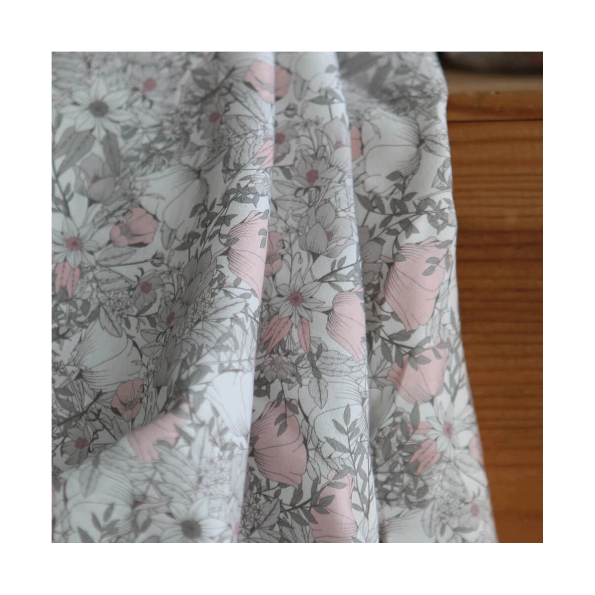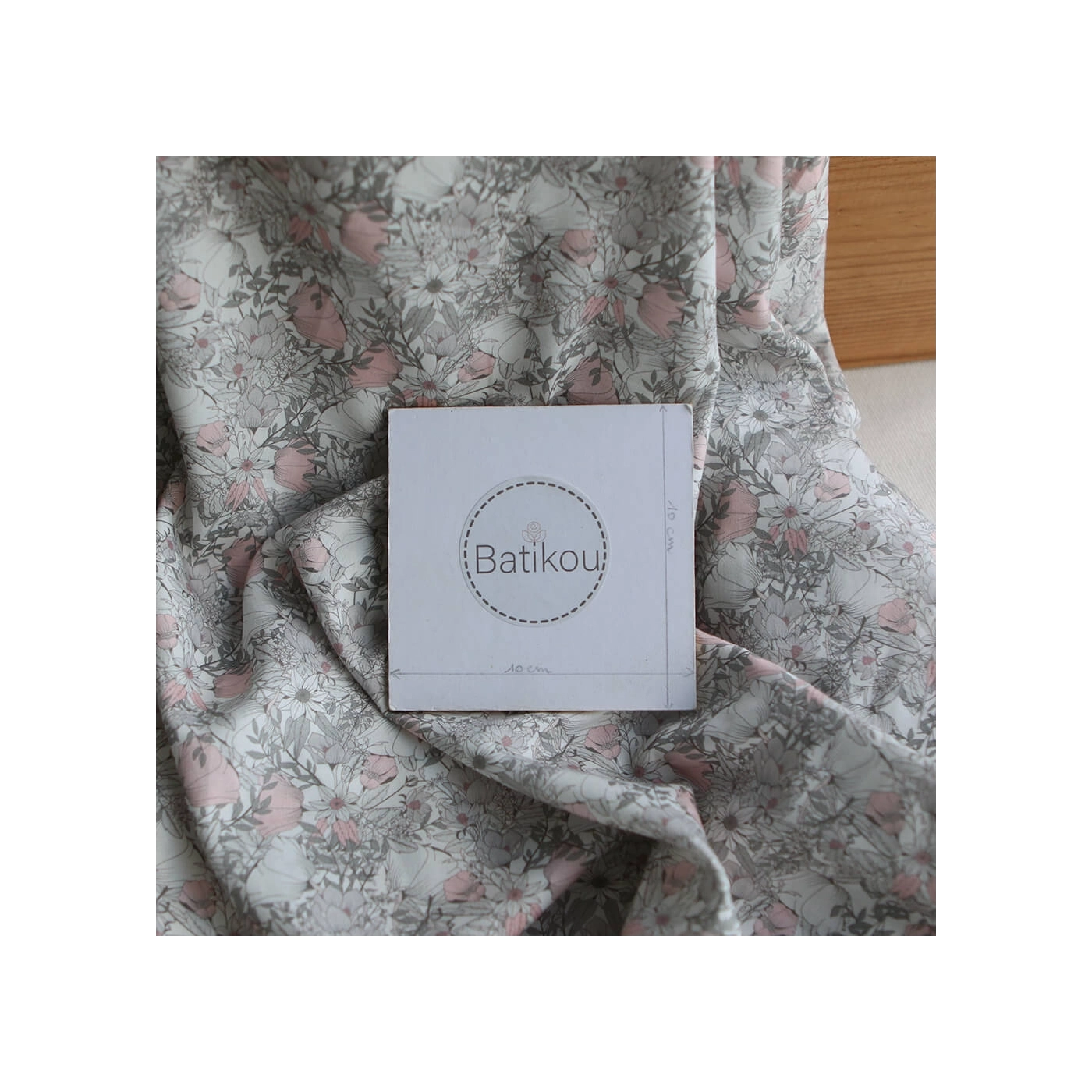 Tissu exclusif Coton lawn motif Lina gris