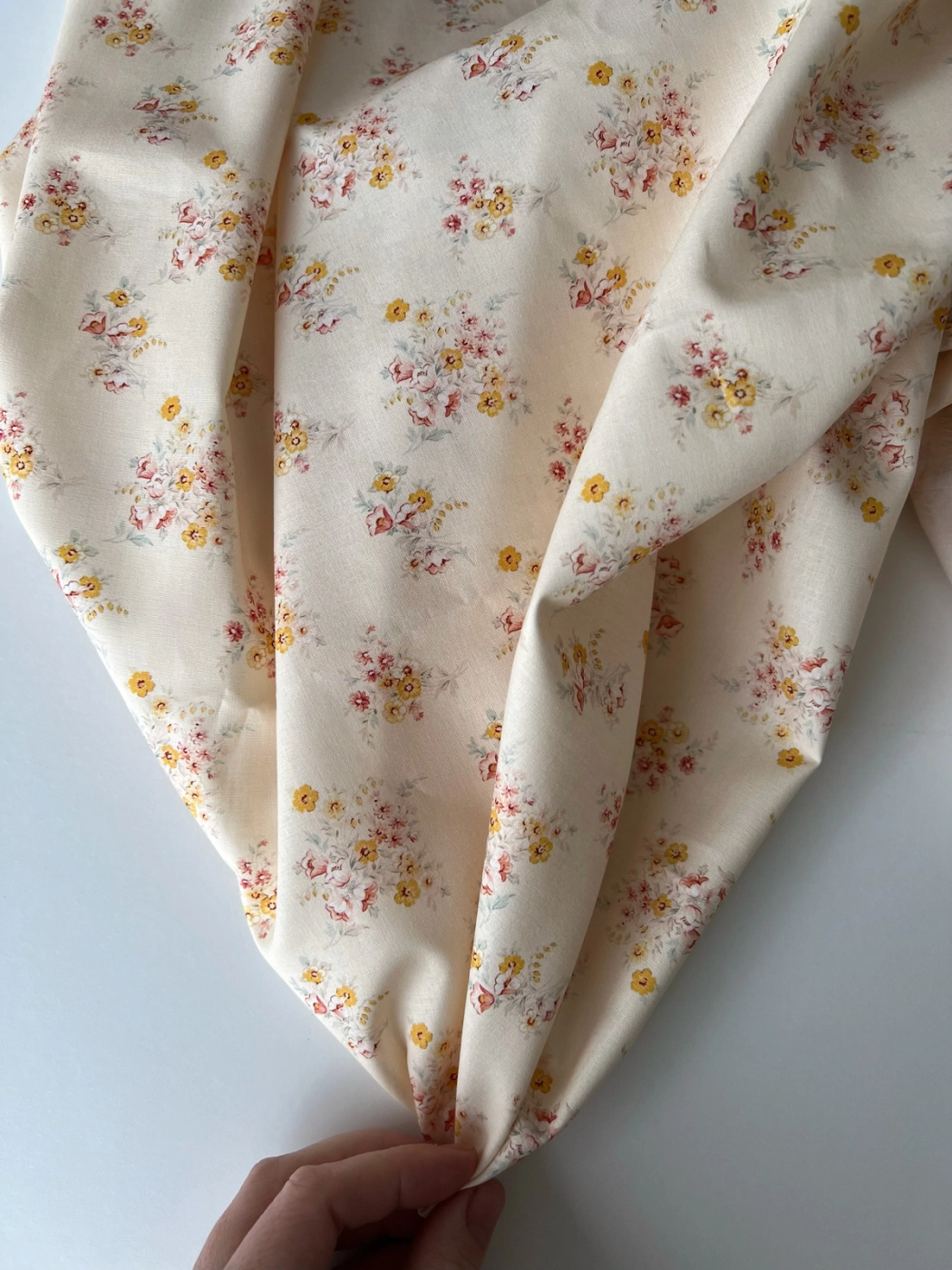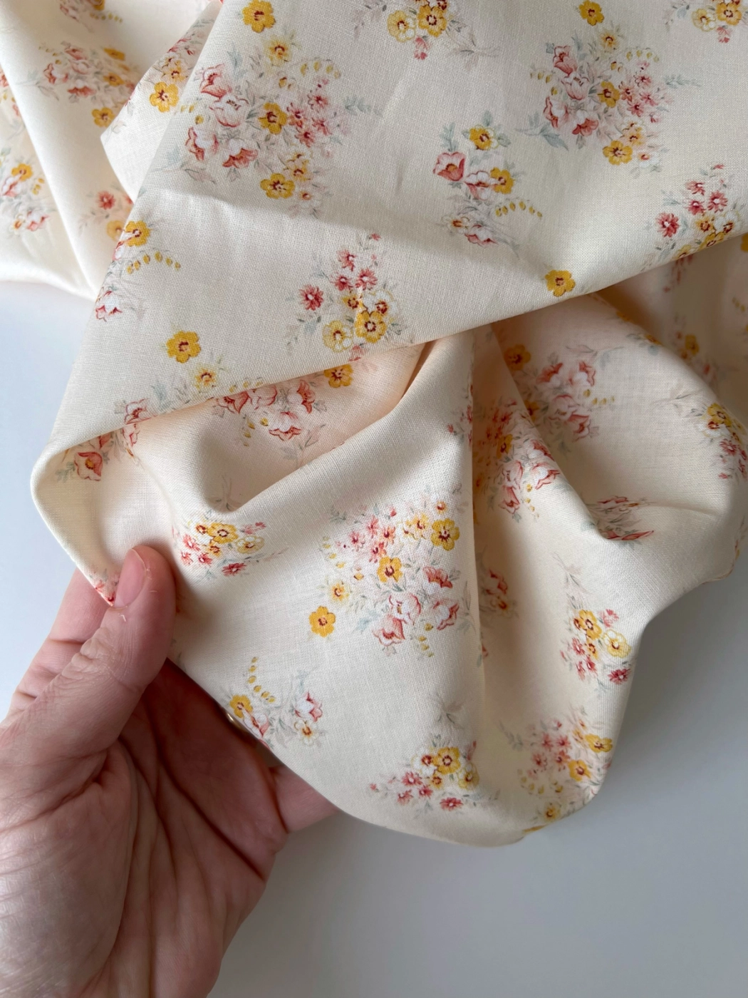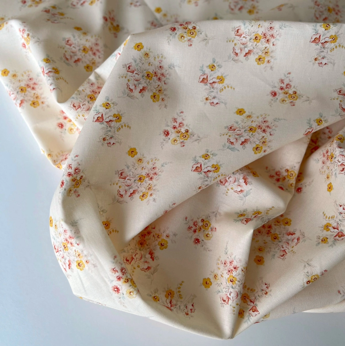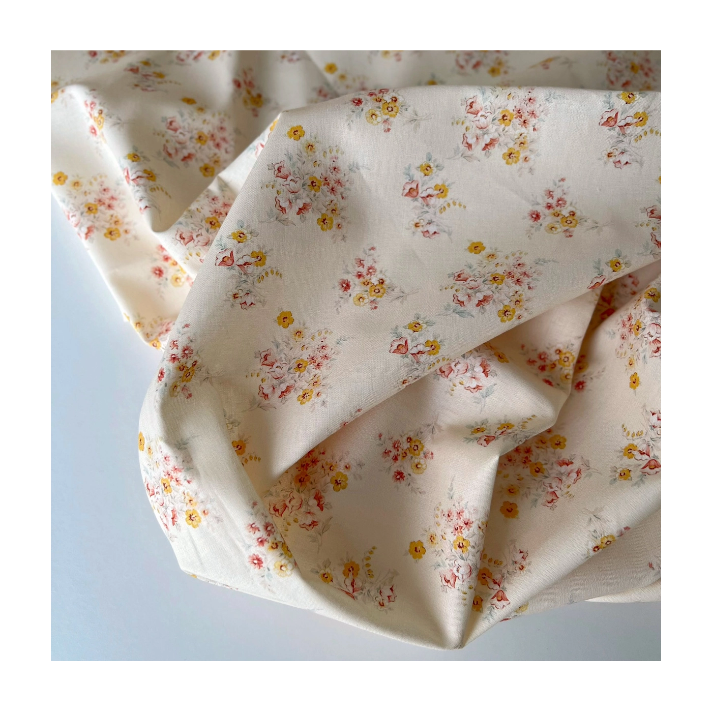 Mariya - Popeline douce coton BIO Exclusif écru motif fleuri