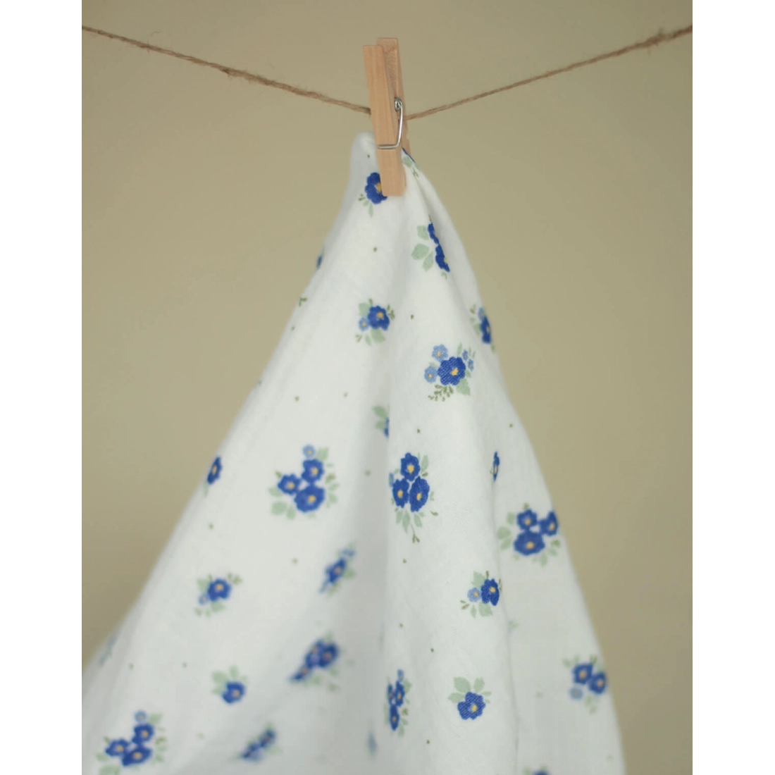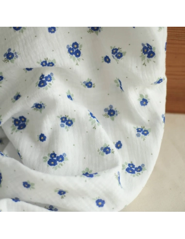 ROZEN - Double gaze de coton BIO blanc motif exclusif bleu cobalt