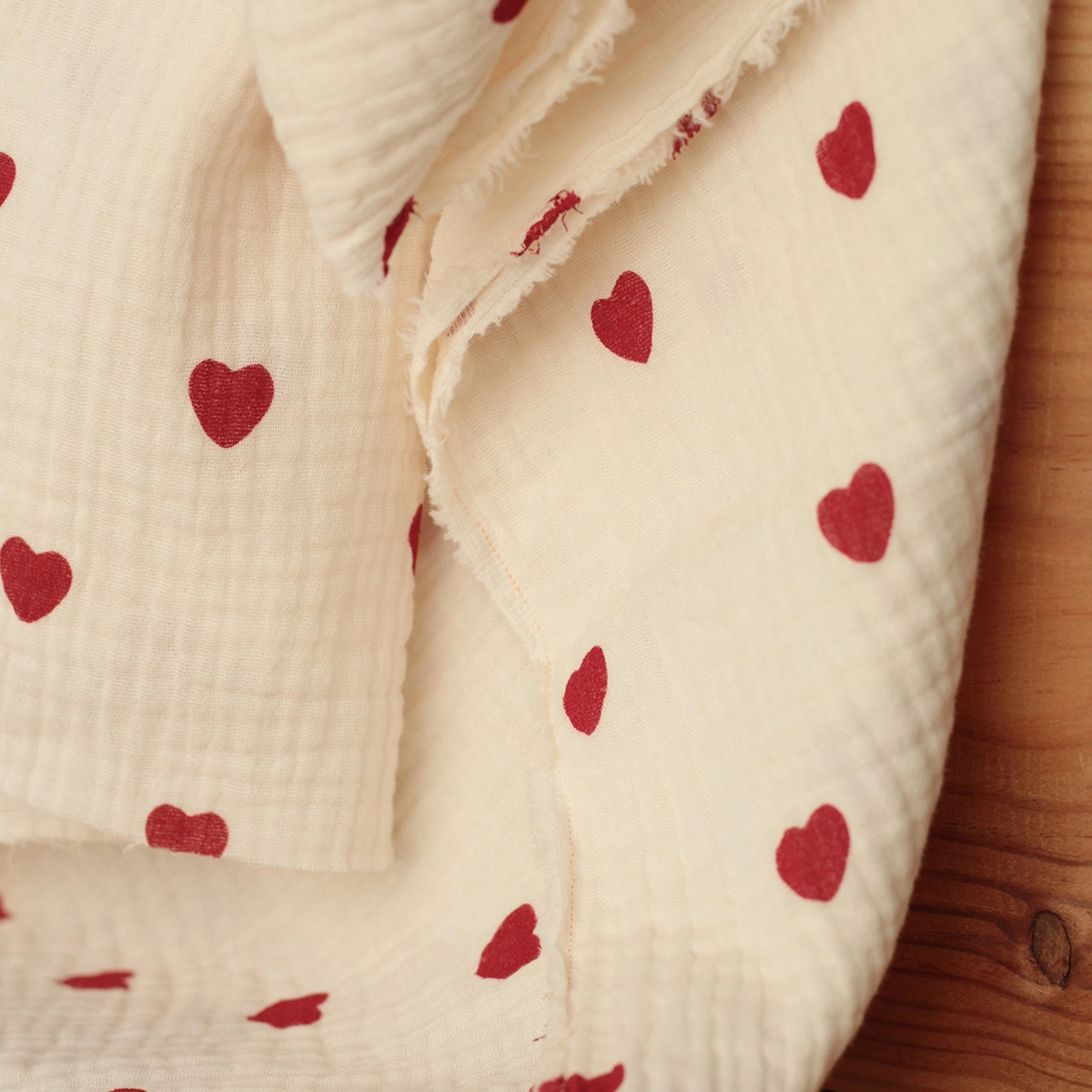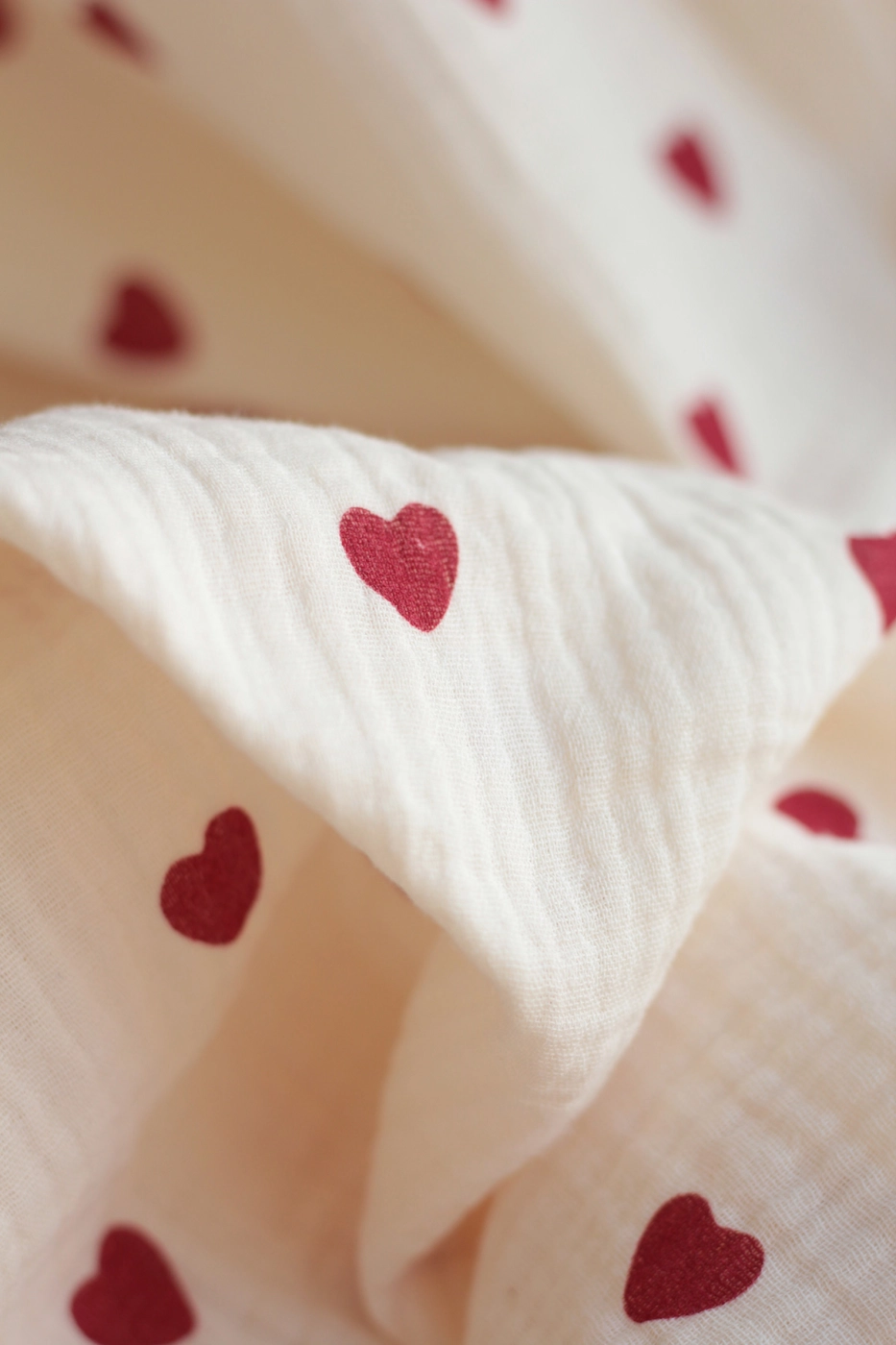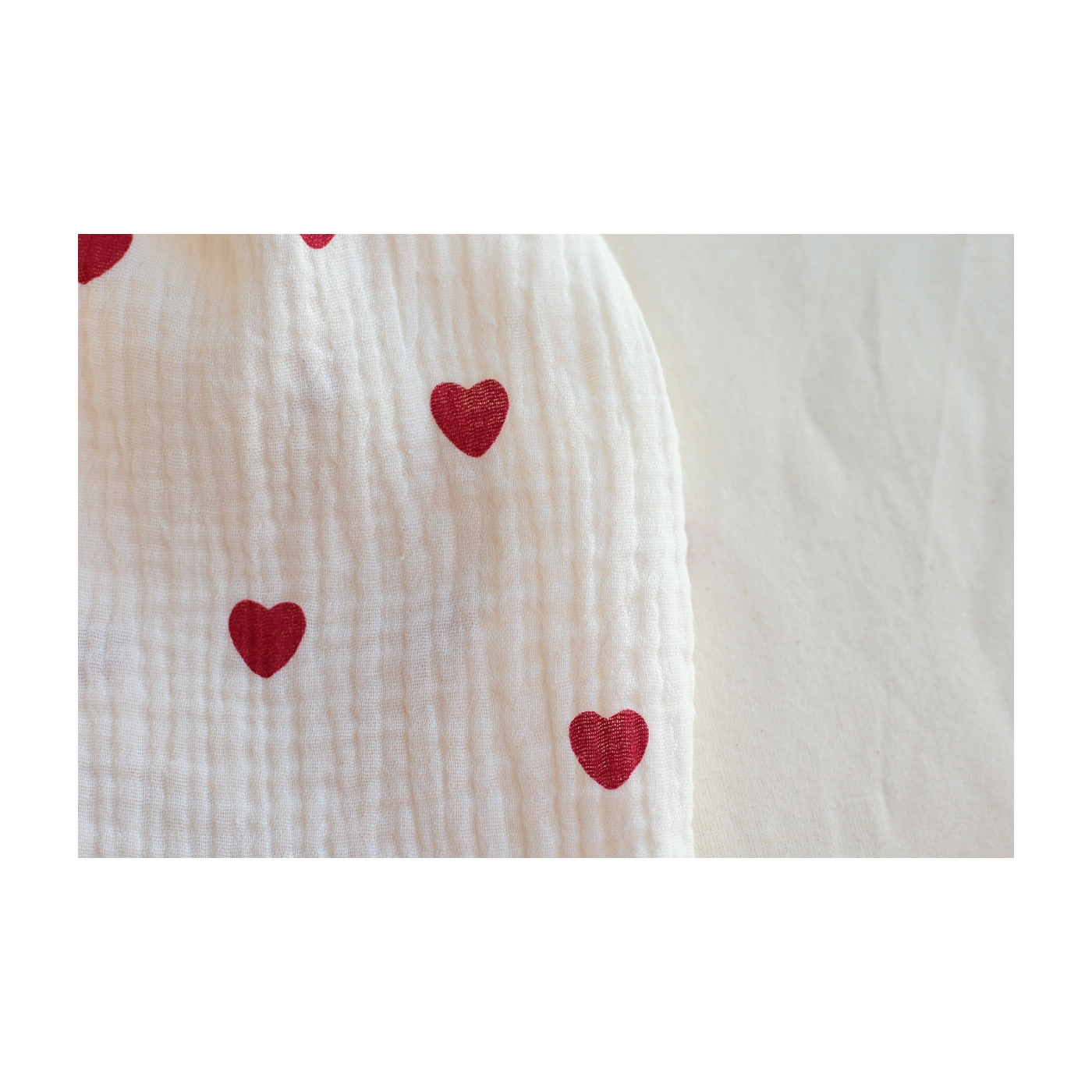 Little Manou - Double gaze de coton BIO écru à motif exclusif petits coeurs rouges