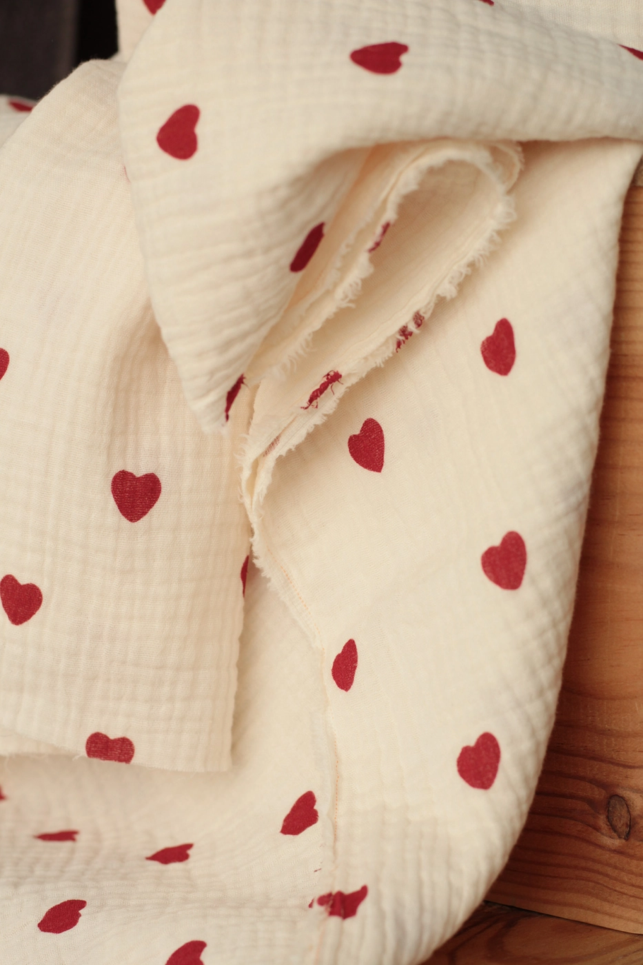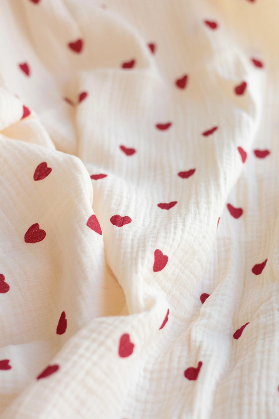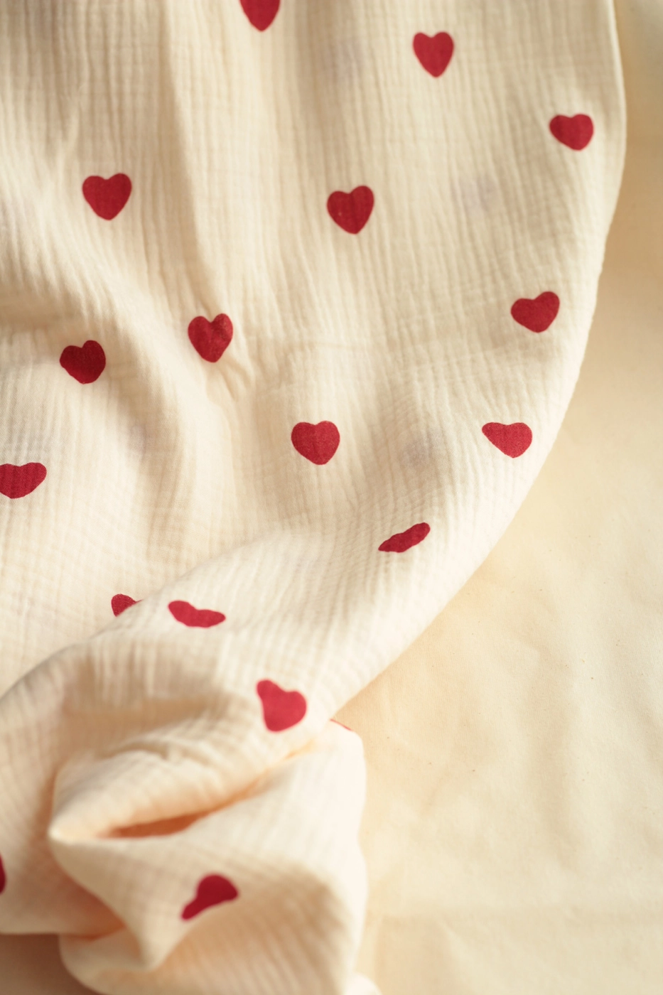 Little Manou - Double gaze de coton BIO écru à motif exclusif petits coeurs rouges