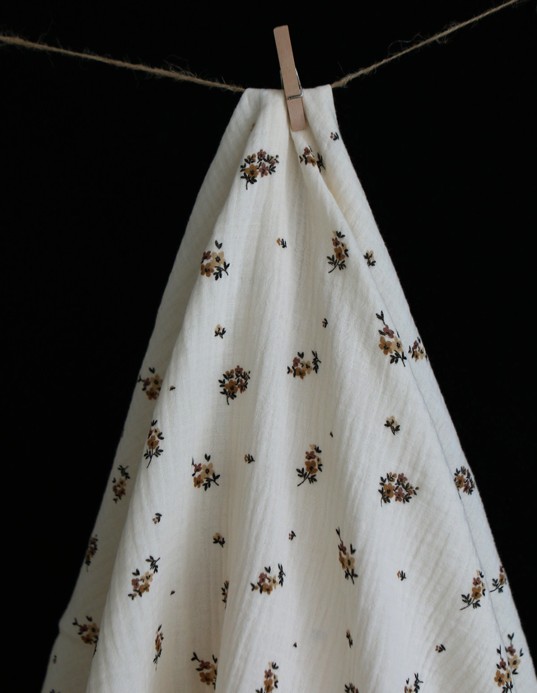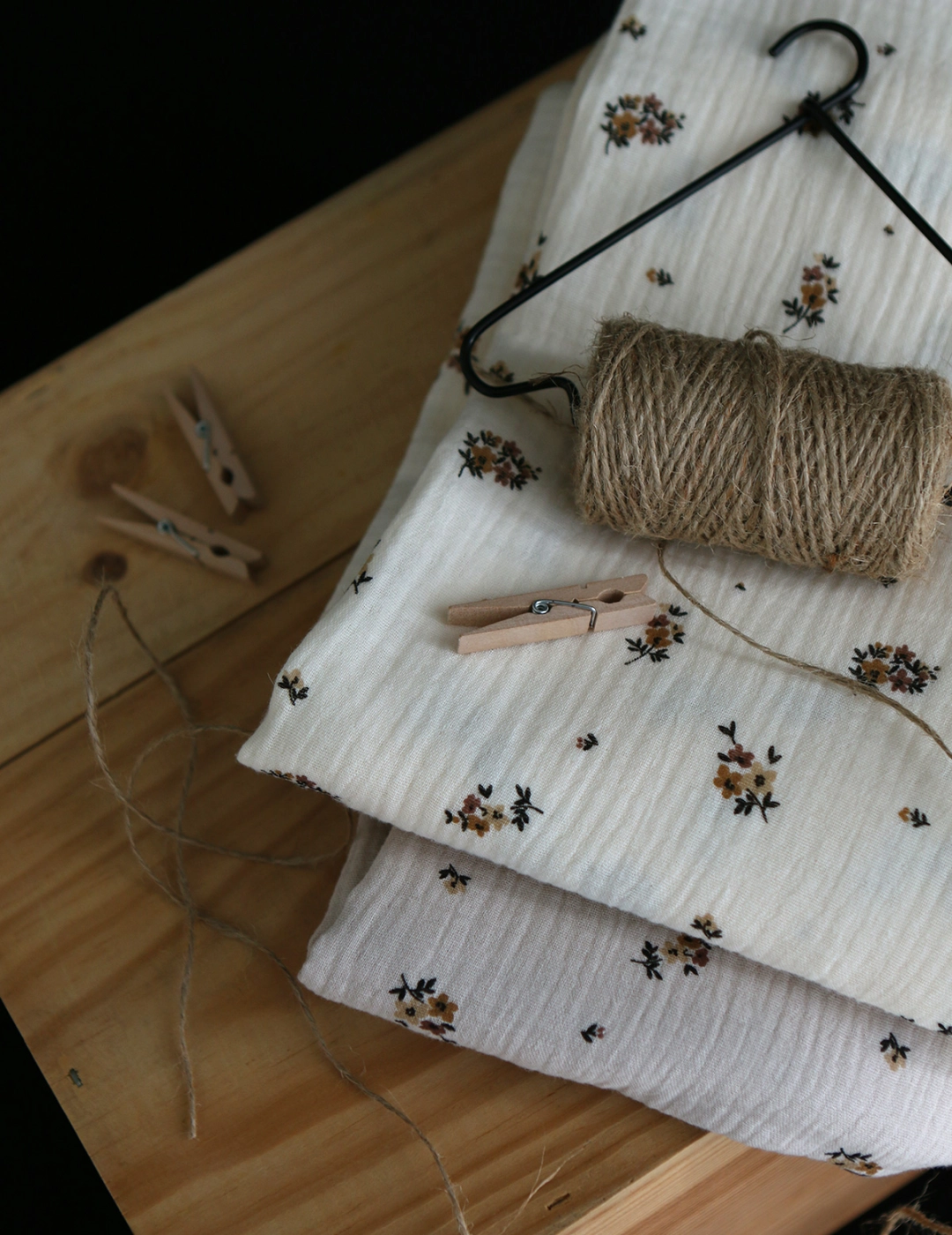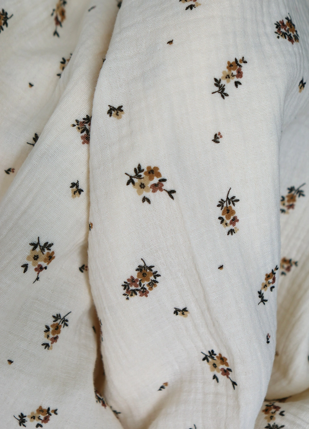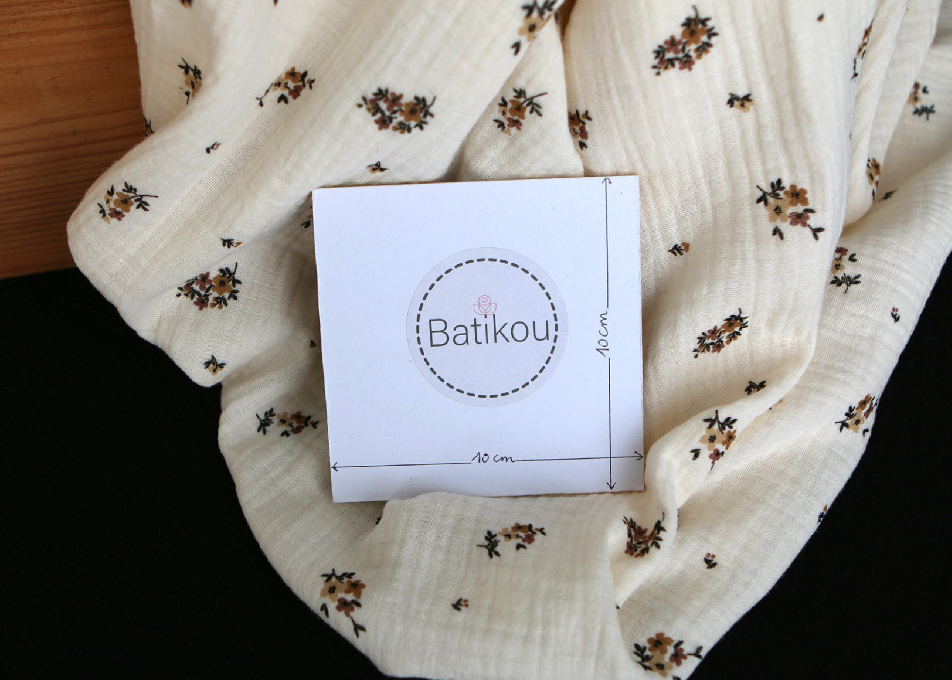 Laure - Double gaze coton BIO motif exclusif cuir fond écru