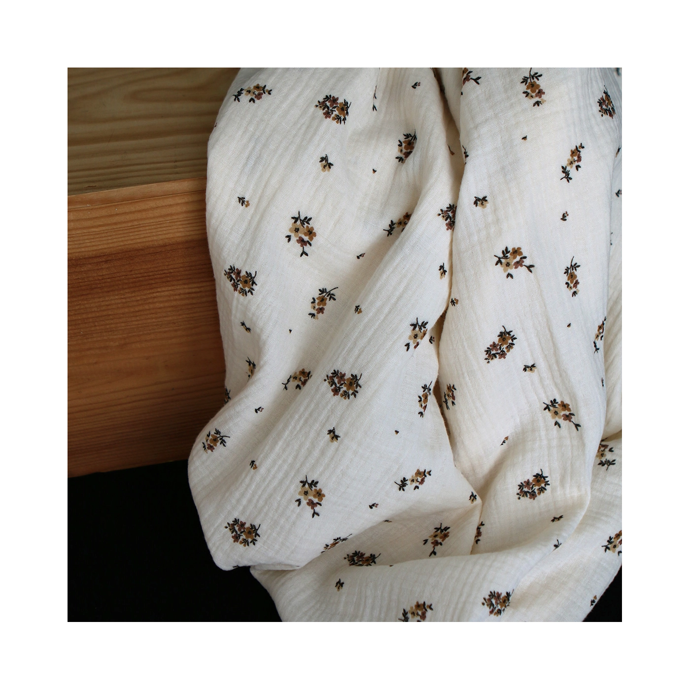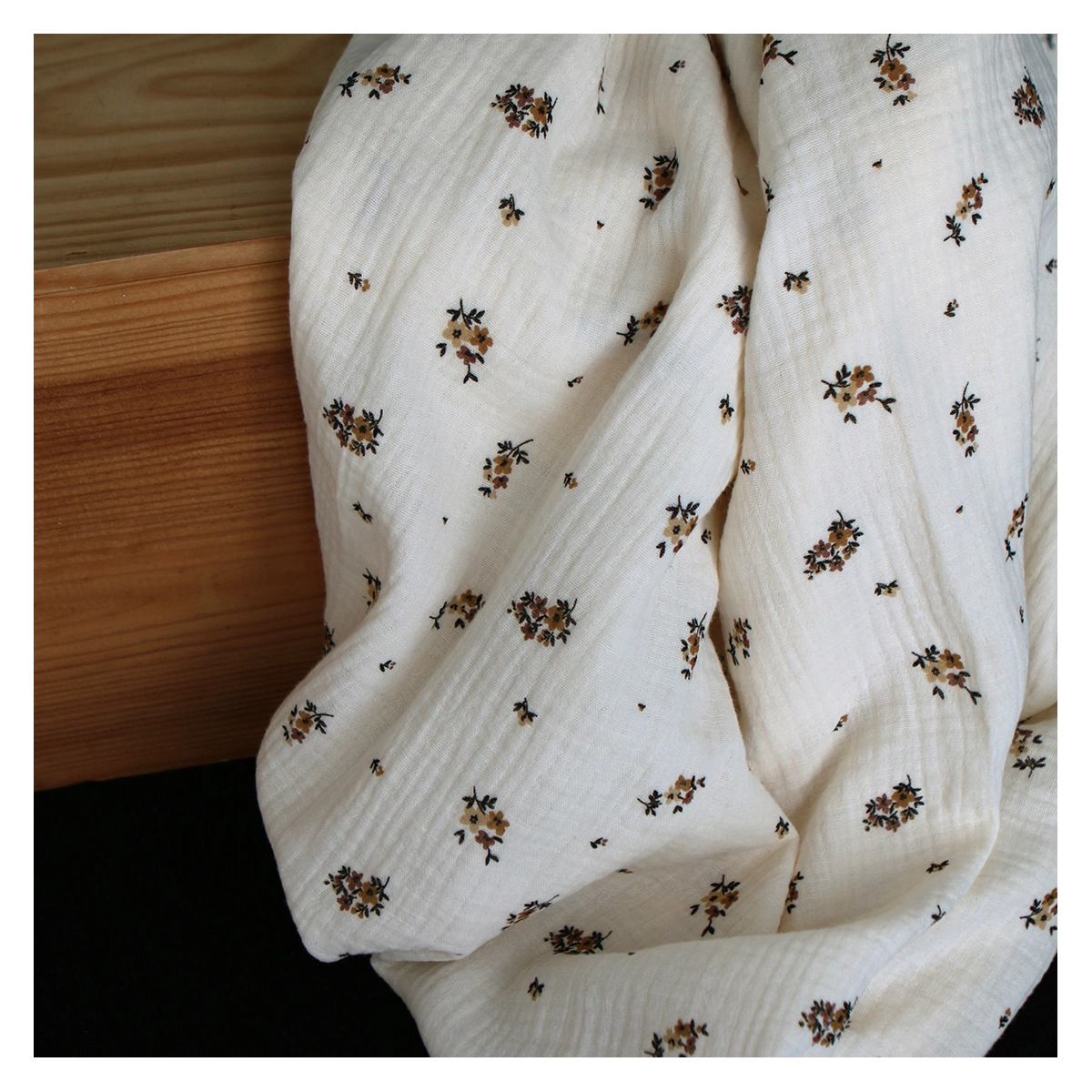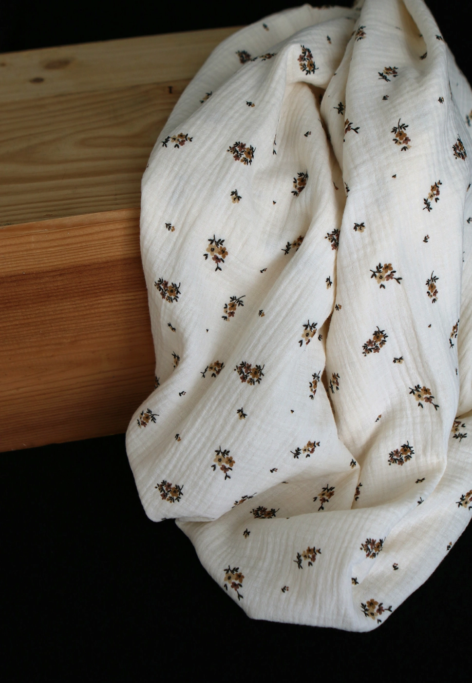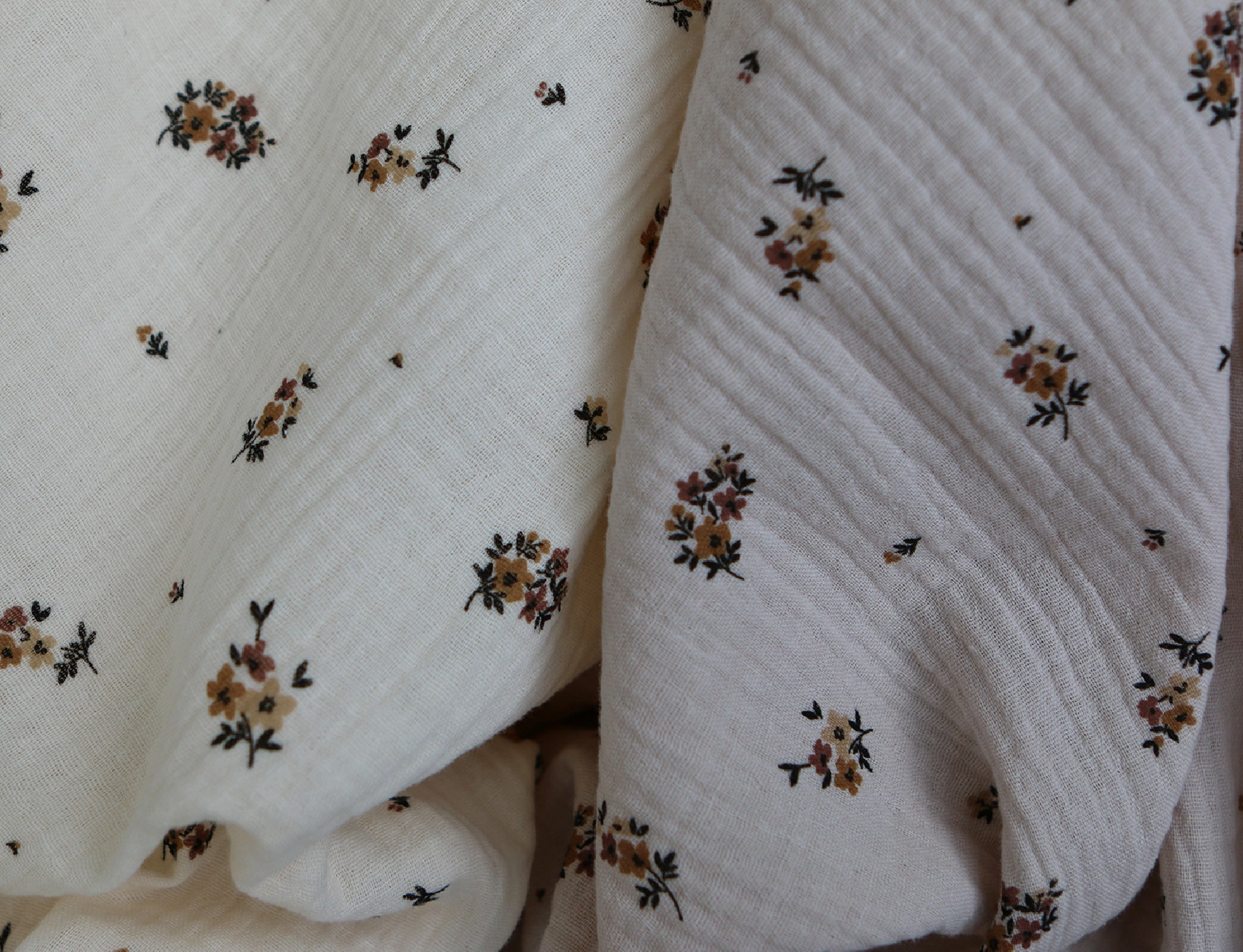 Laure - Double gaze coton BIO motif exclusif cuir fond écru