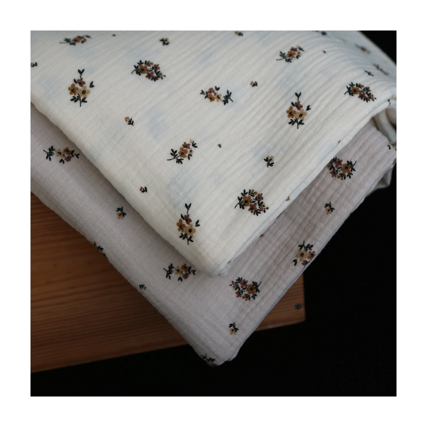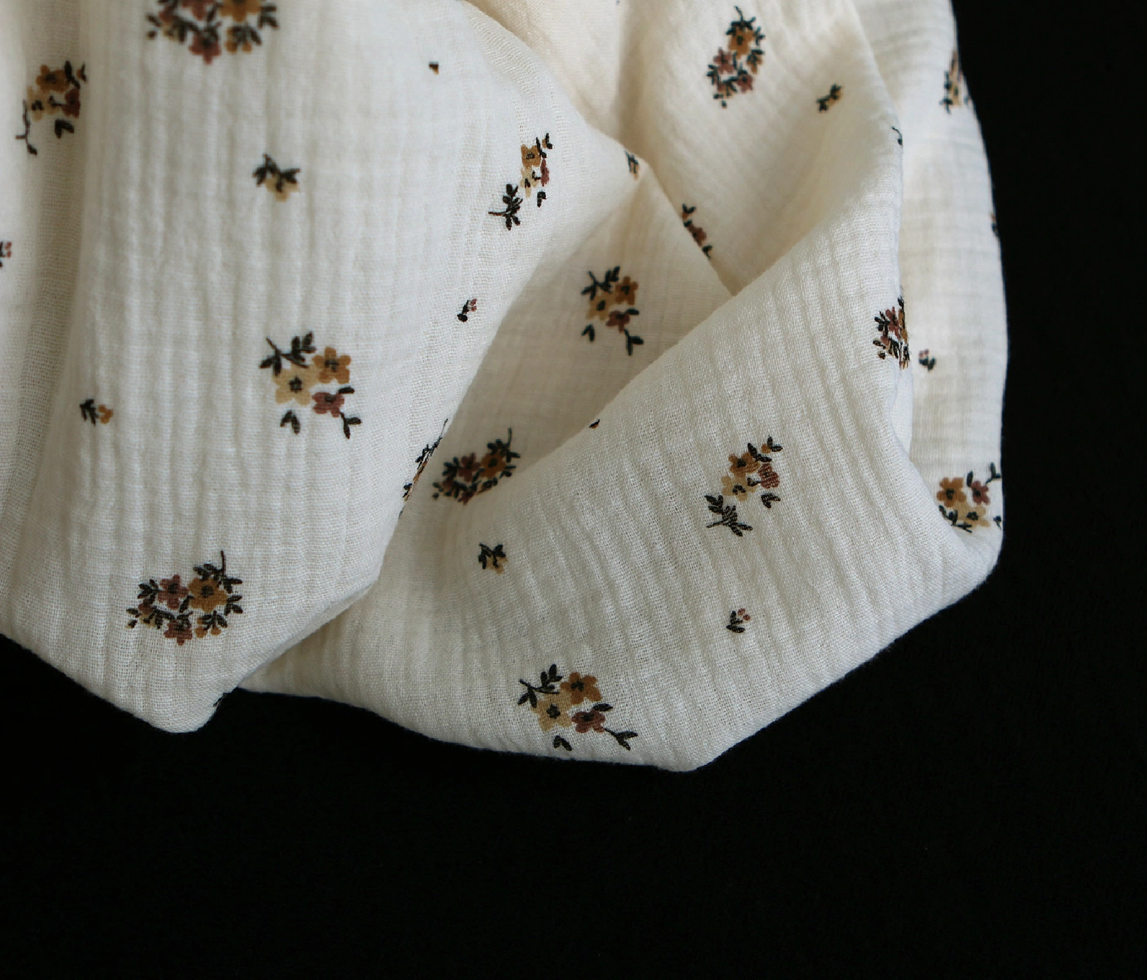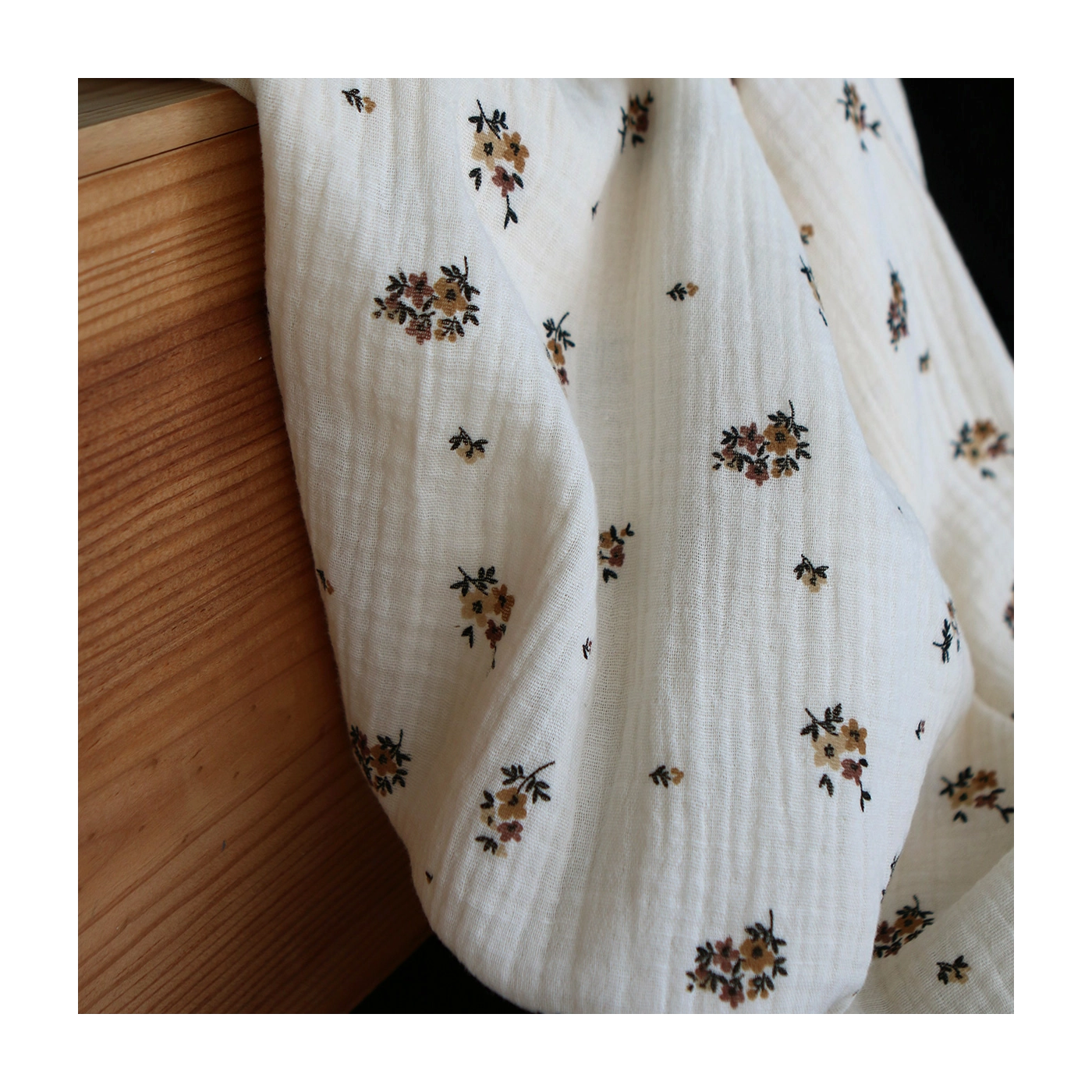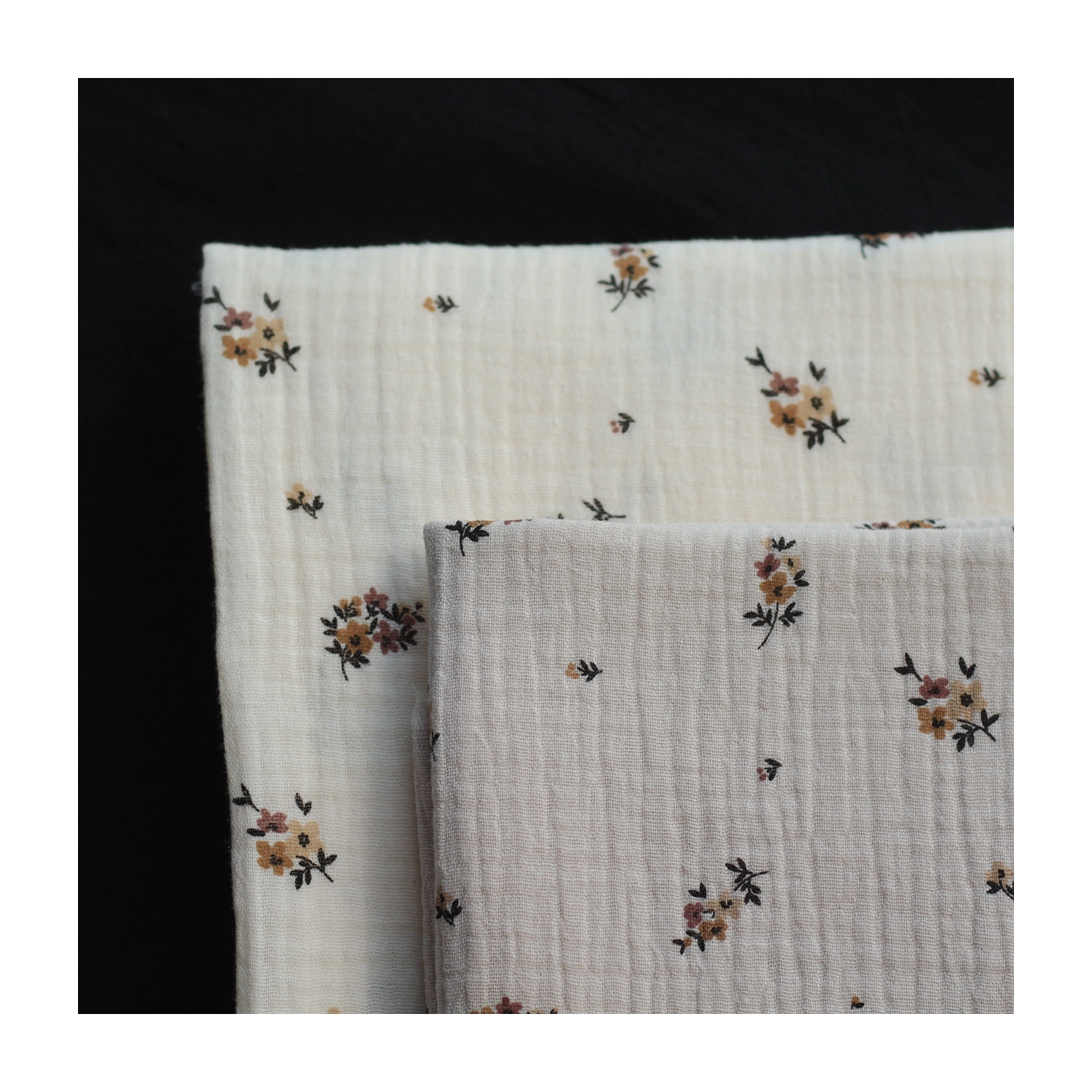 Laure - Double gaze coton BIO motif exclusif cuir fond écru