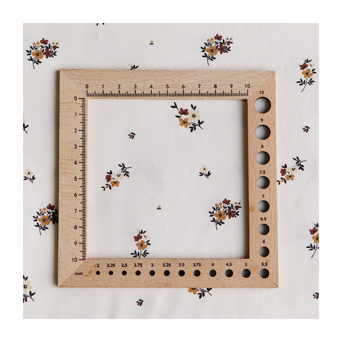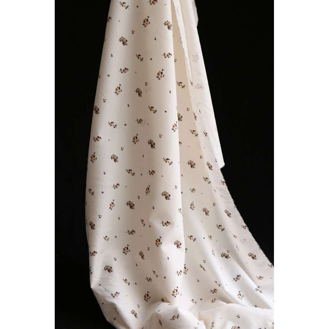 - Coloris fond écru motif exclusif Laure cuir: petit fleuri aux teintes ocre et noir