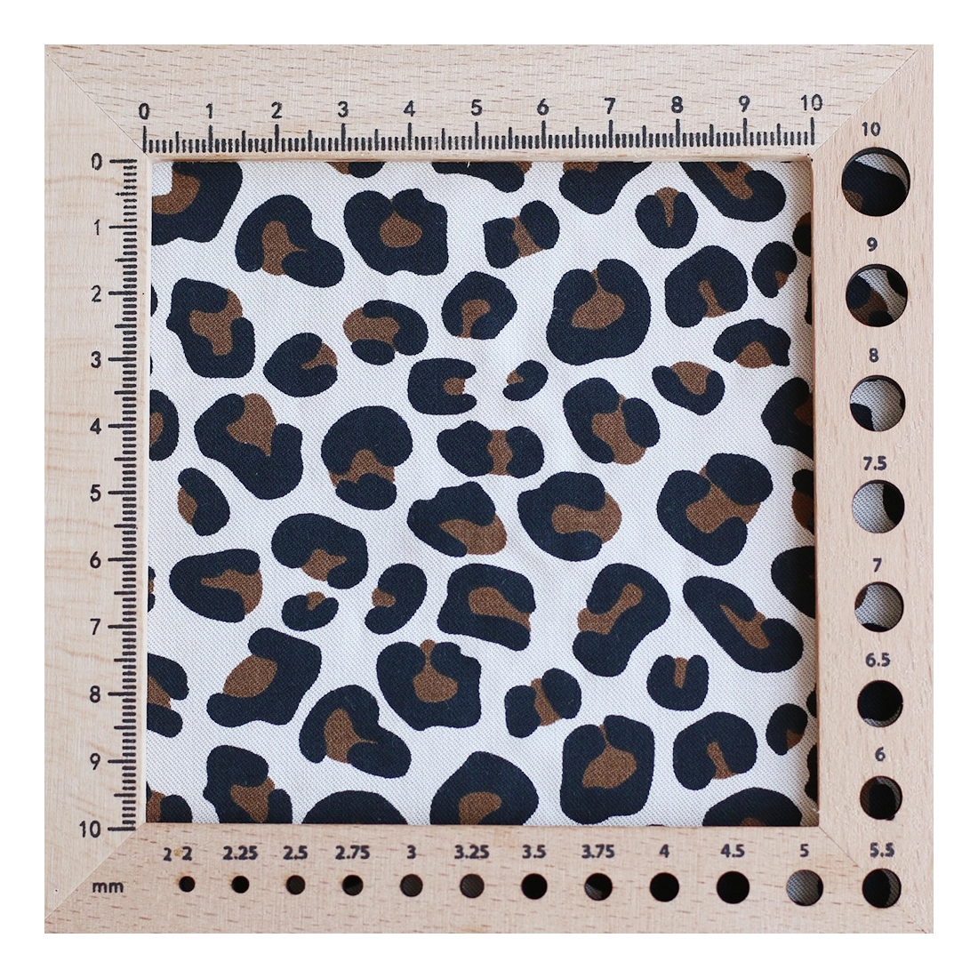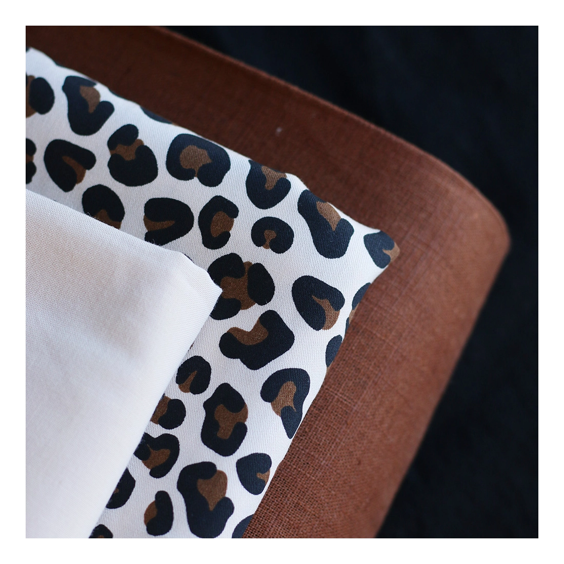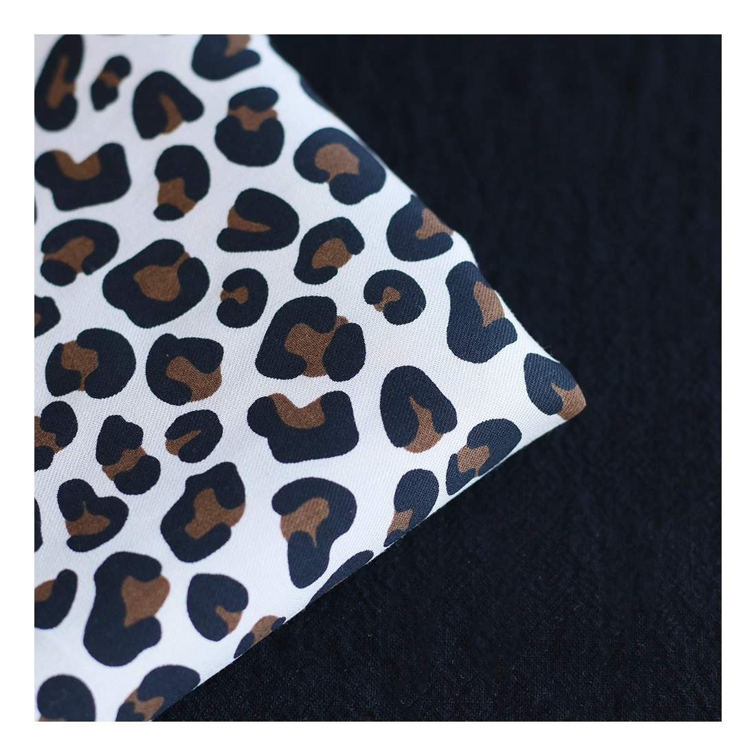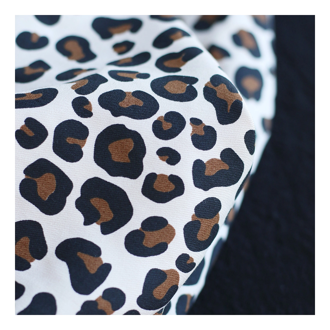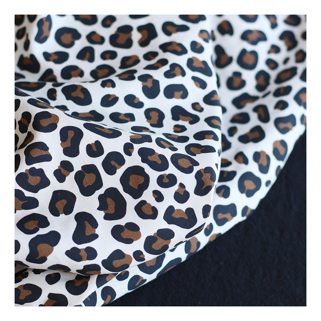 La photo avec le carré blanc permet d'avoir un repère de mesure (le carré fait 10cm de côté) et de couleur, en effet il est blanc optique. Cette indication peut vous permettre de mieux percevoir le rendu du tissu.