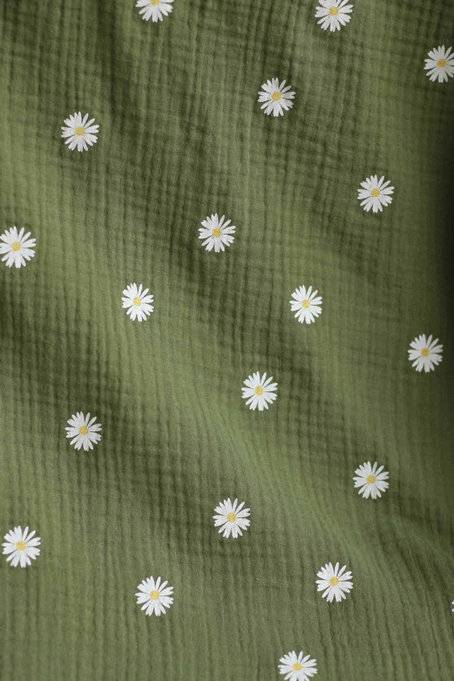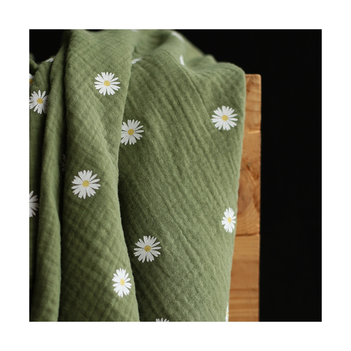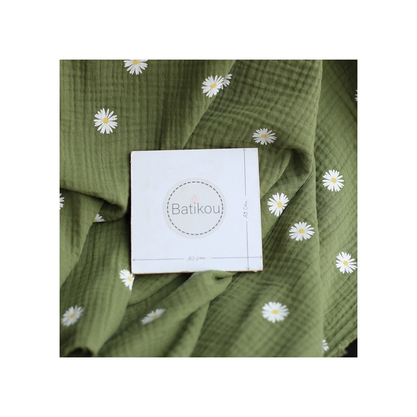 Daisy - Double gaze coton BIO motif exclusif fond vert olive