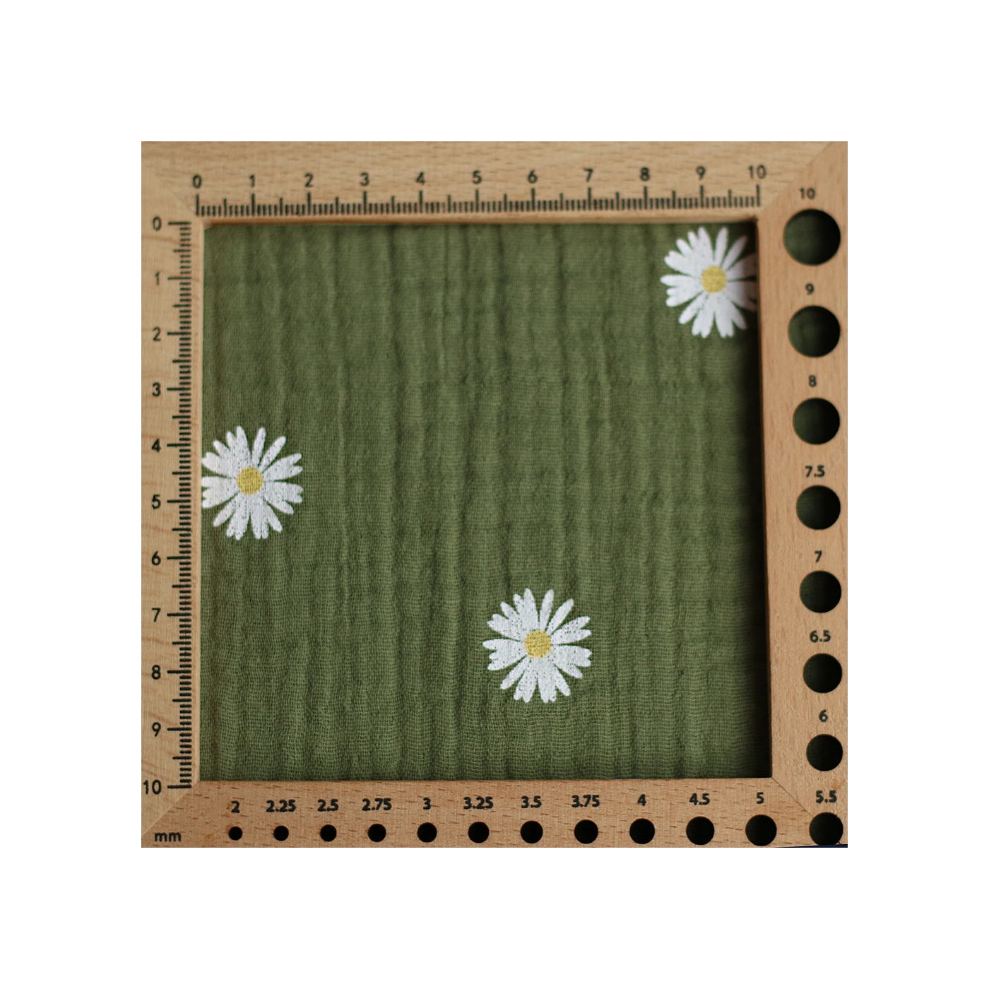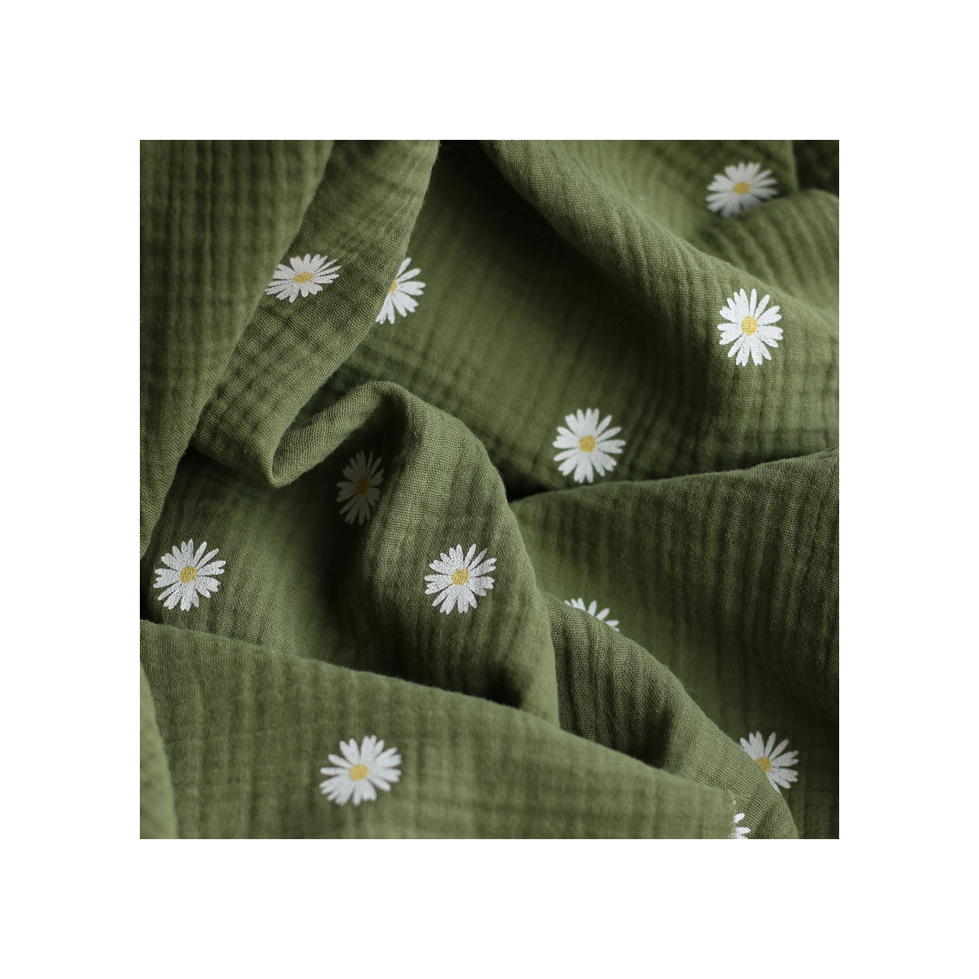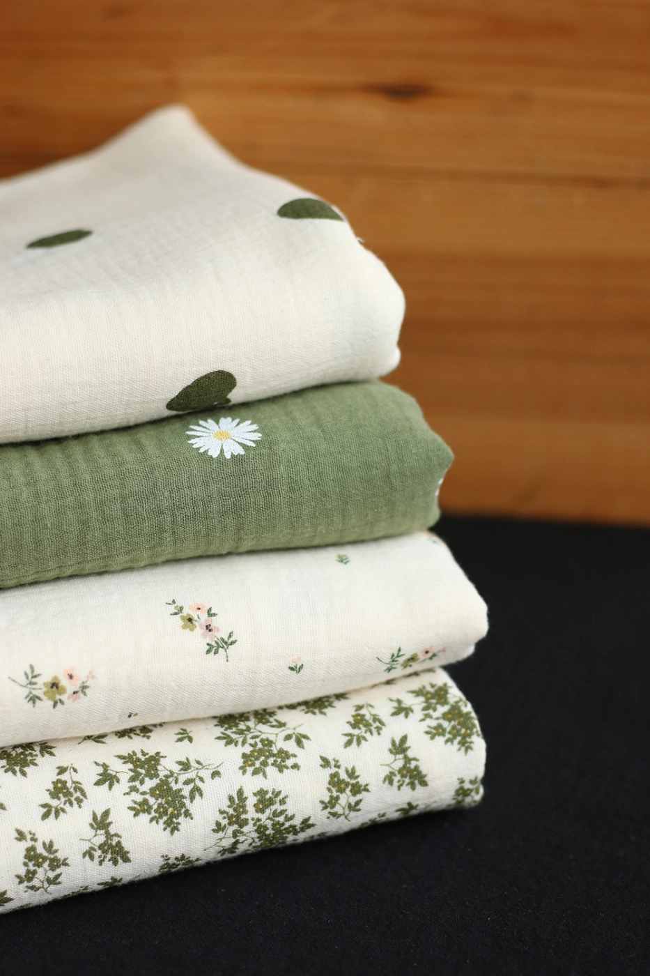 Daisy - Double gaze coton BIO motif exclusif fond vert olive