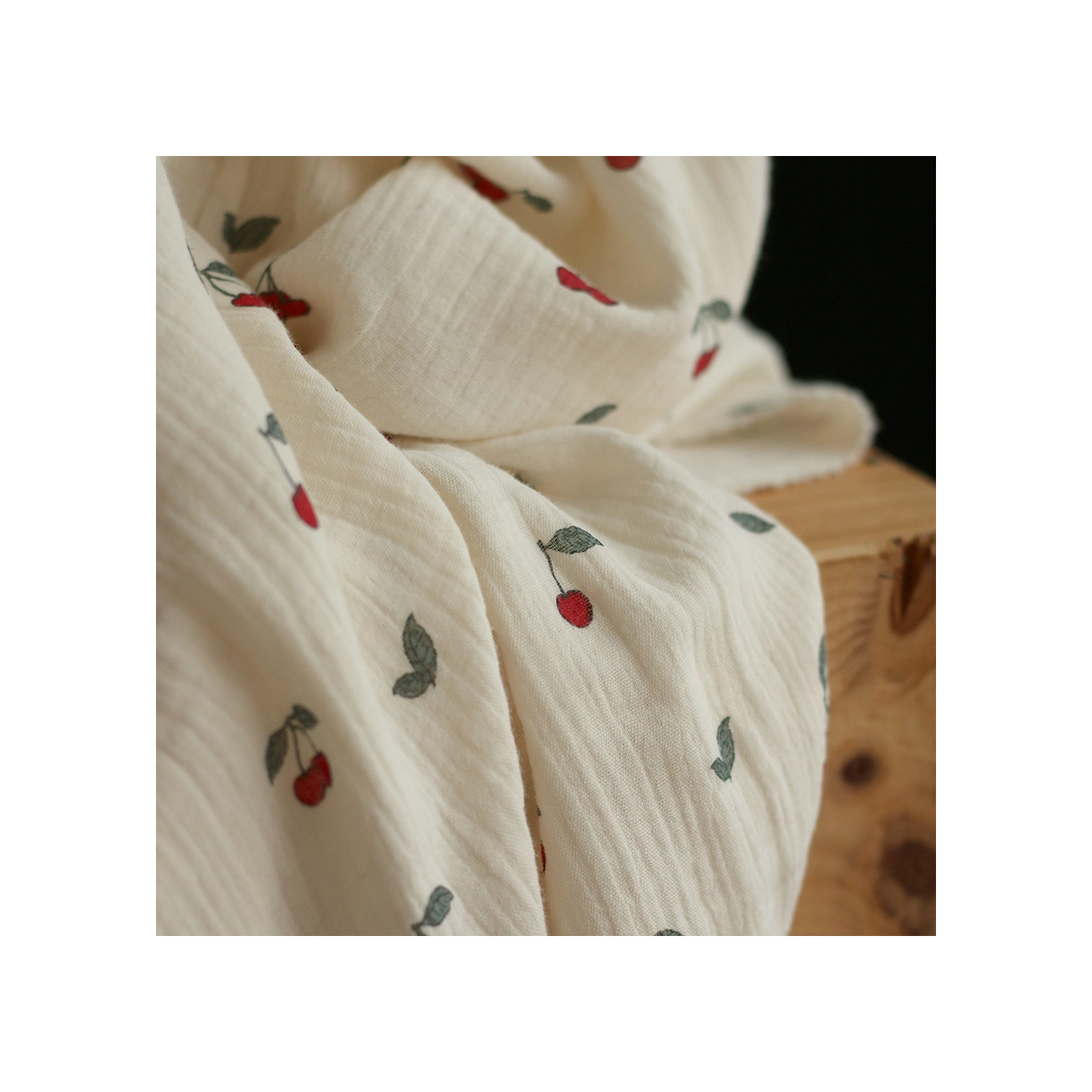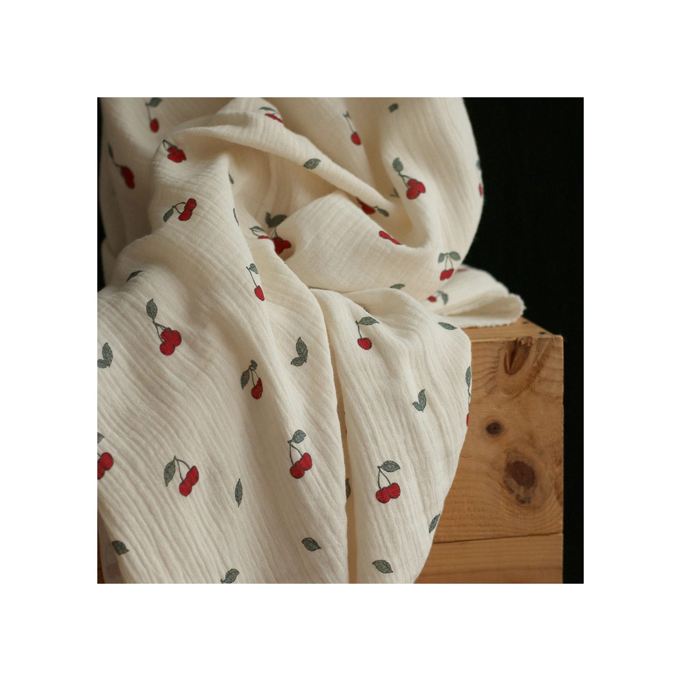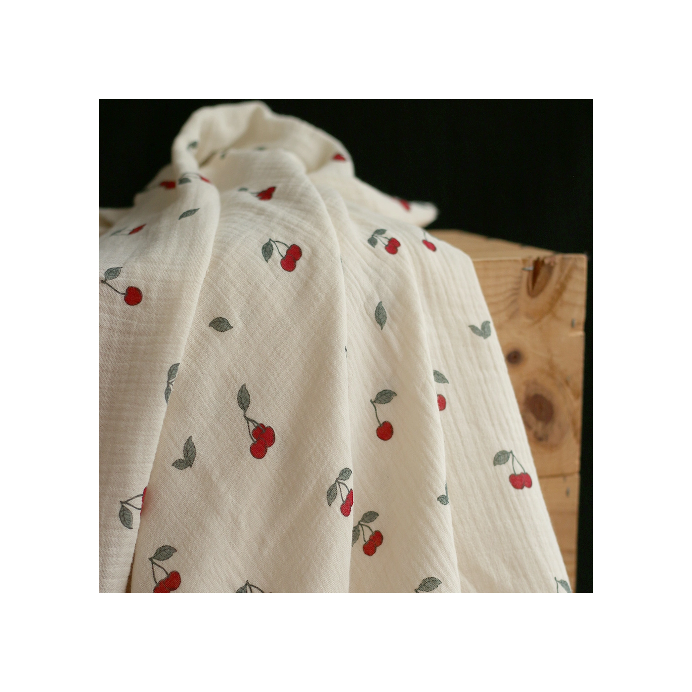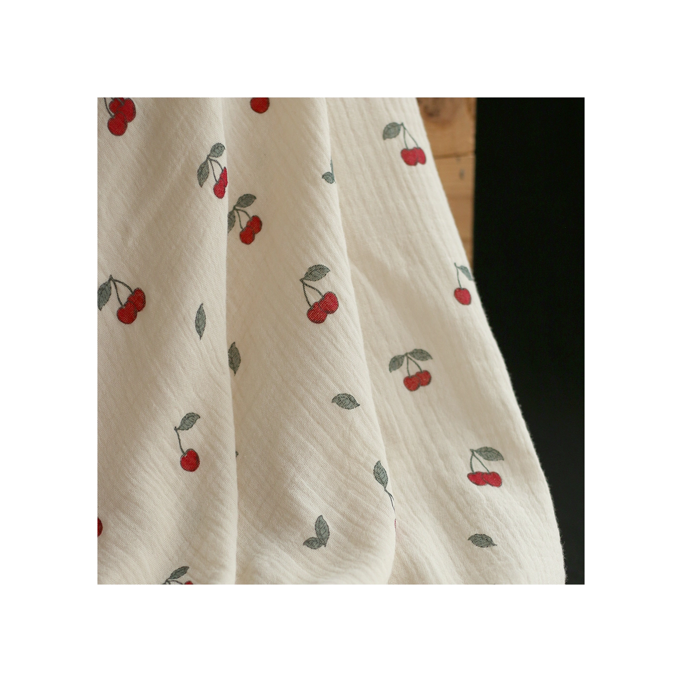 La photo avec le carré blanc permet d'avoir un repère de mesure (le carré fait 10cm de côté) et de couleur, en effet il est blanc optique. Cette indication peut vous permettre de mieux percevoir le rendu du tissu;