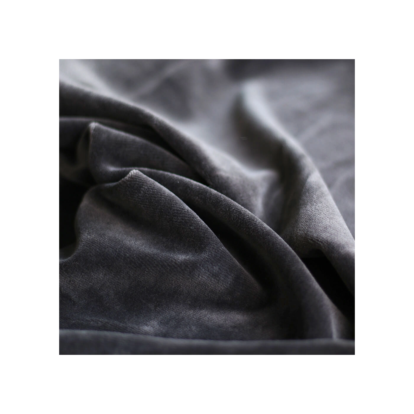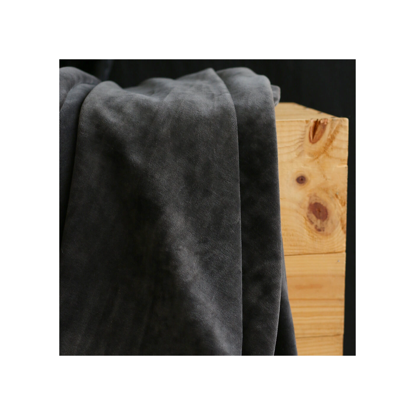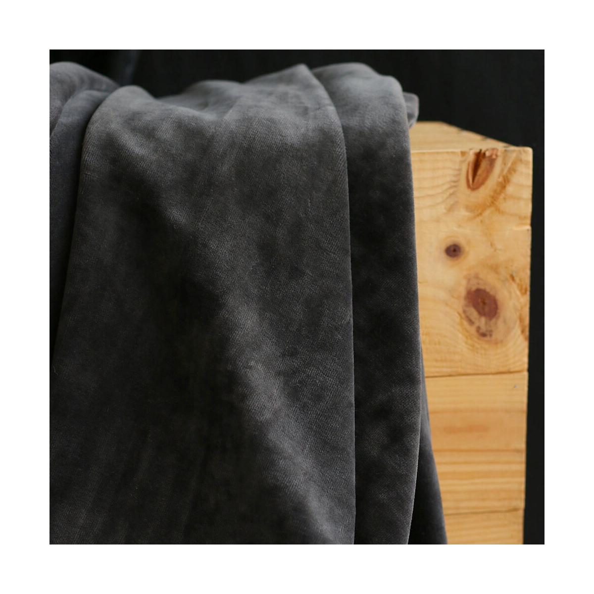 Avec son toucher moelleux et son coloris gris anthracite profond, ce velours nicky est un très beau choix pour des créations confortables, modernes et faciles à assortir.