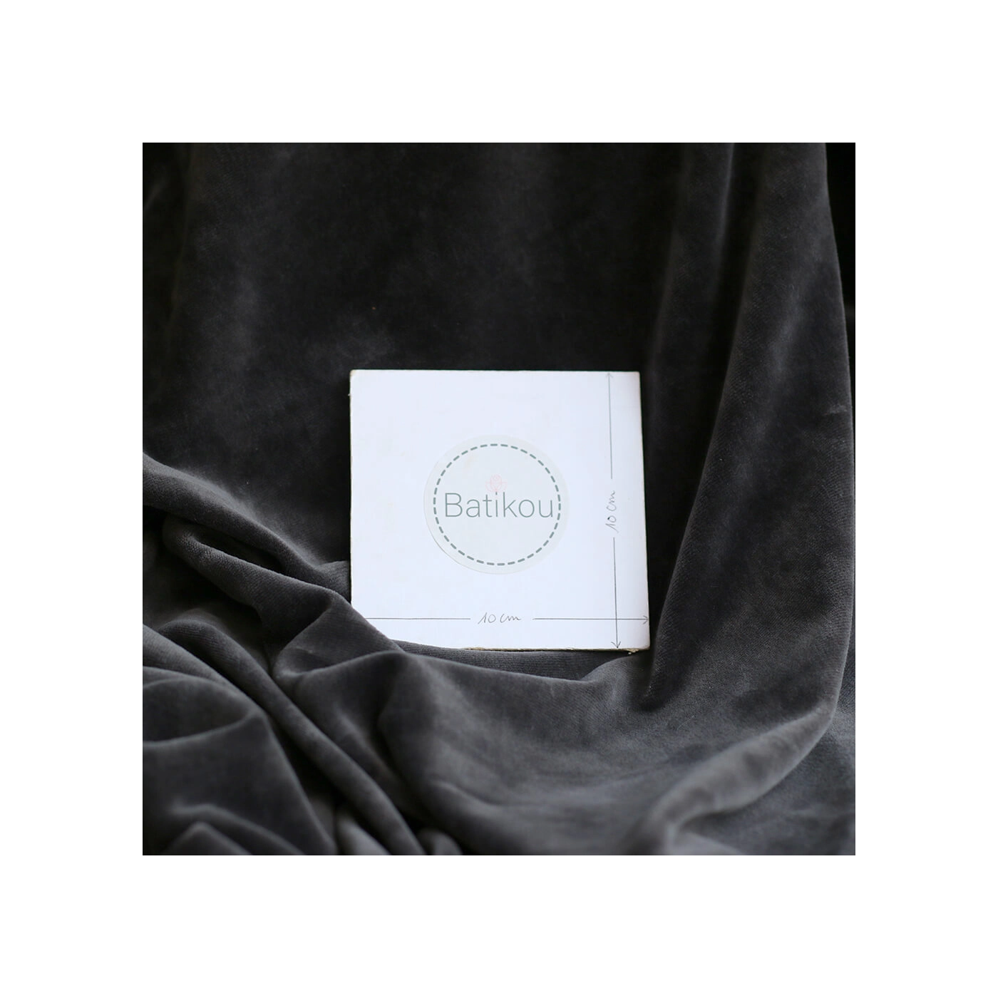 Ce velours nicky séduit par son toucher doux, son aspect légèrement velouté et son très beau coloris gris anthracite. La teinte oscille entre un gris graphite dense et un charbon adouci, ce qui lui donne un rendu sobre, moderne et facile à coordonner avec des imprimés comme avec des unis plus clairs. Avec ses 220 g/m2, cette maille offre un bel équilibre entre confort, souplesse et tenue, pour des créations agréables à porter au quotidien.