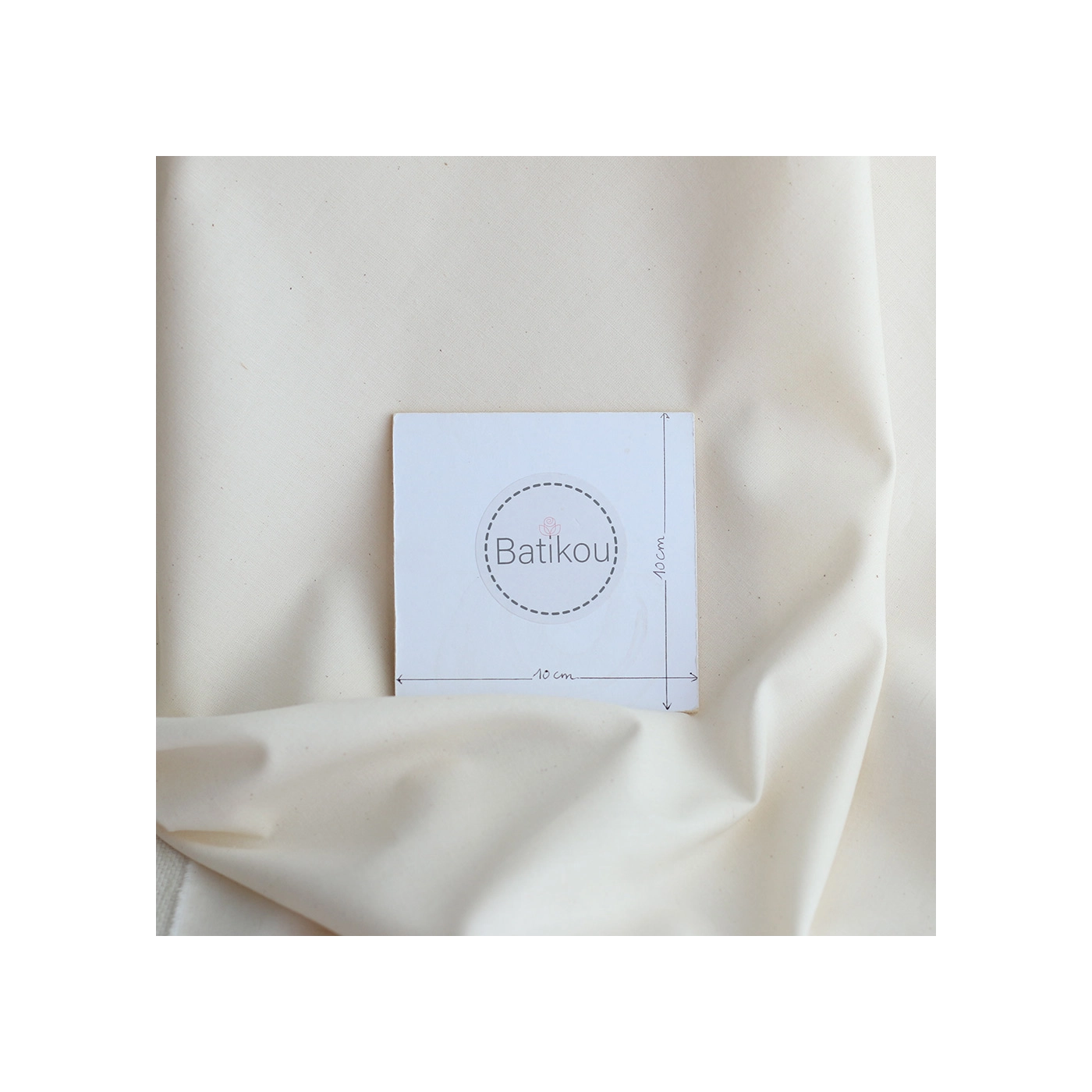 La photo avec le carré blanc permet d'avoir un repère de mesure (le carré fait 10cm de côté) et de couleur, en effet il est blanc optique. Cette indication peut vous permettre de mieux percevoir le rendu du tissu.