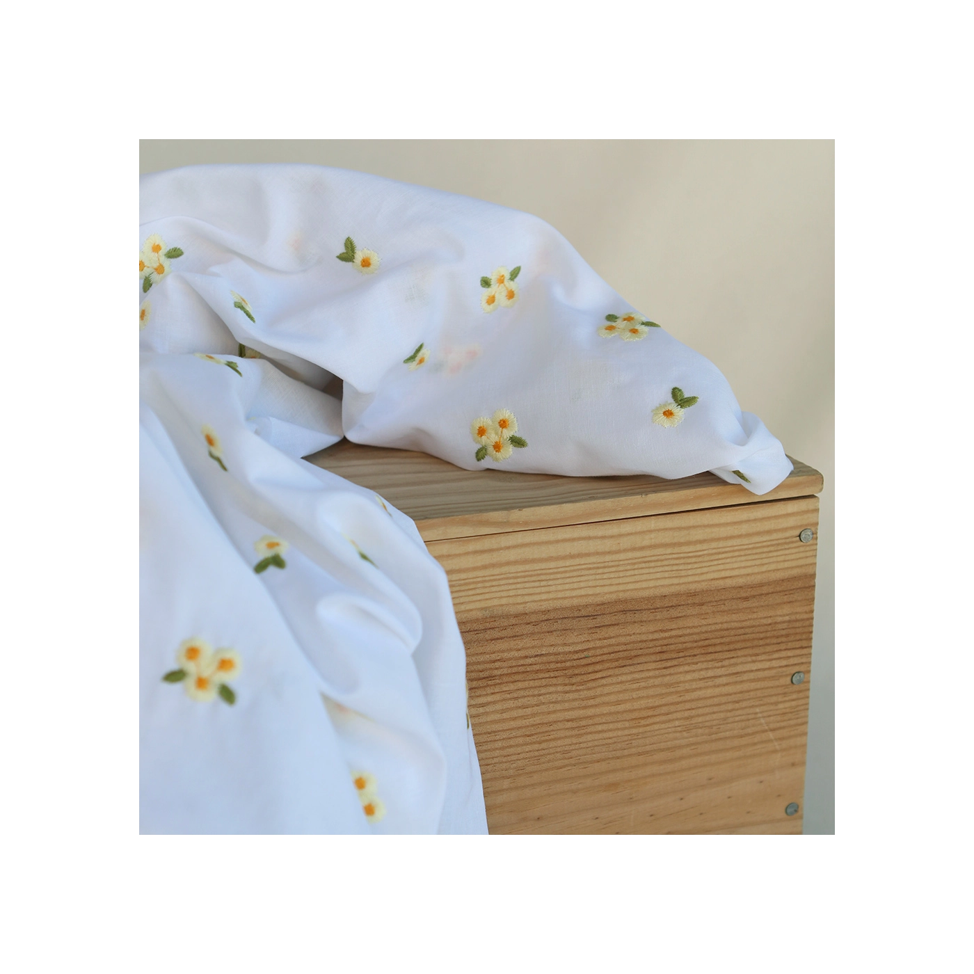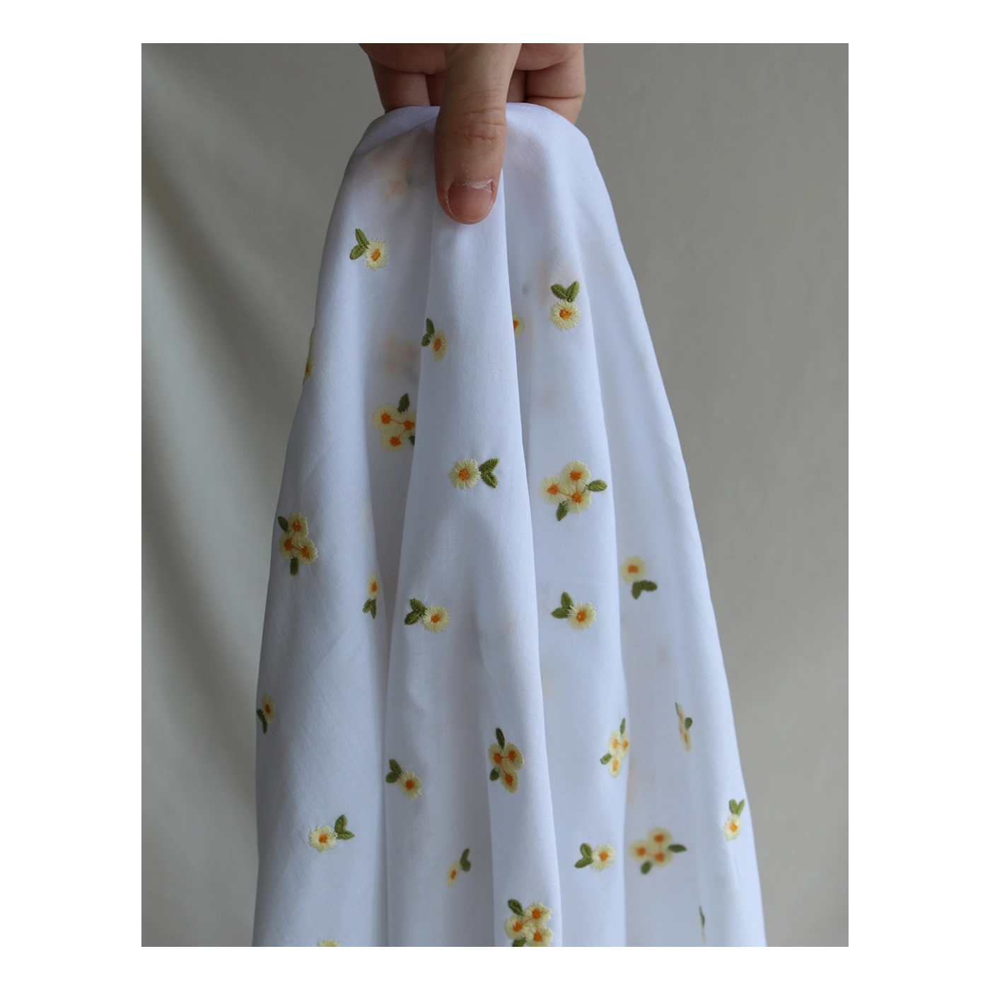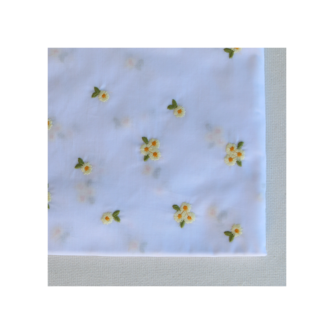 Floralie - Voile de coton blanc broderies petites fleurs jaunes