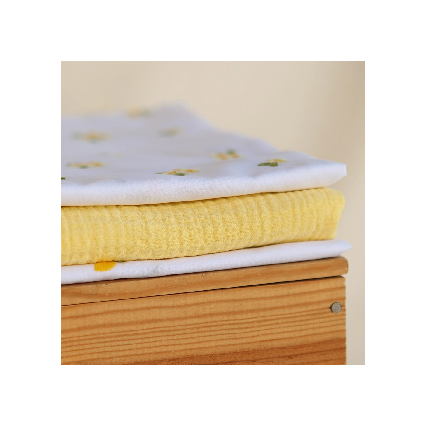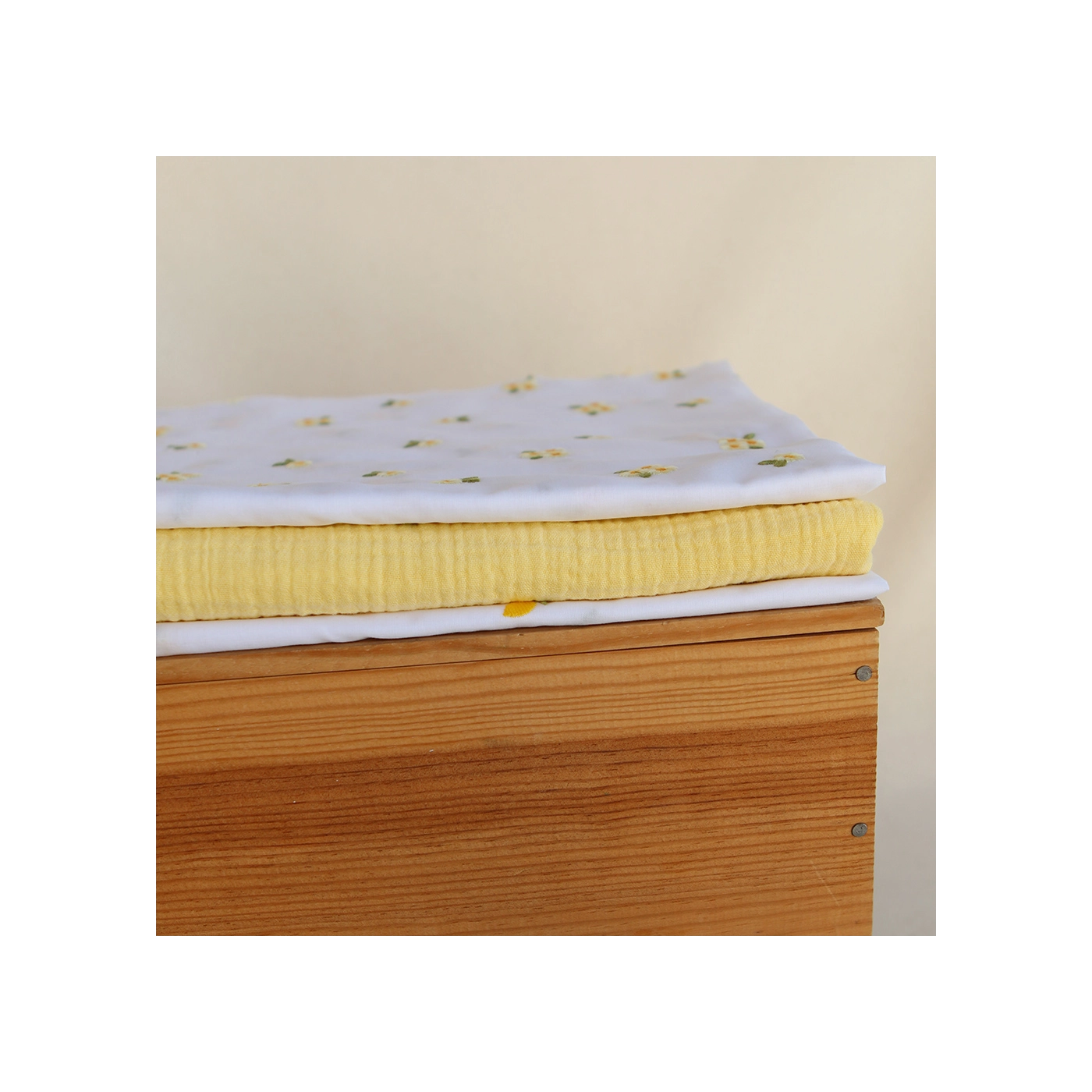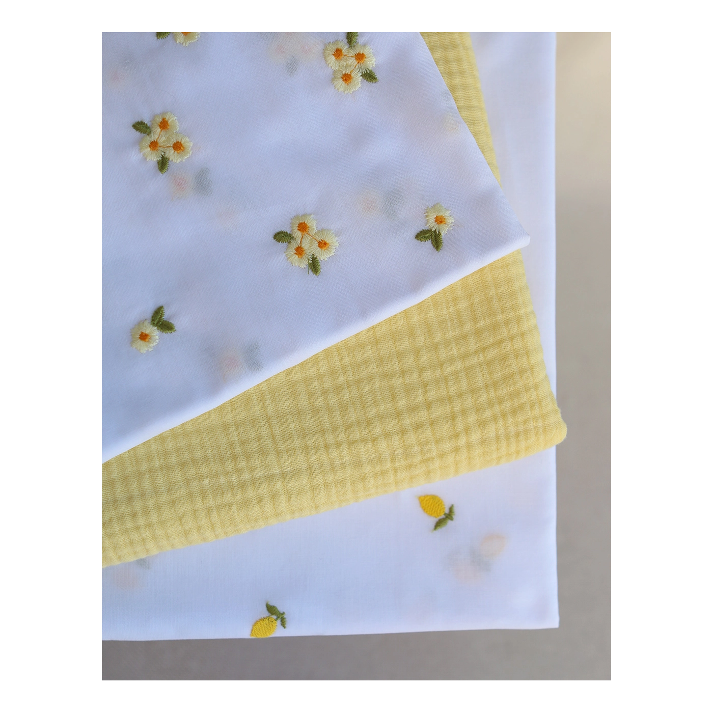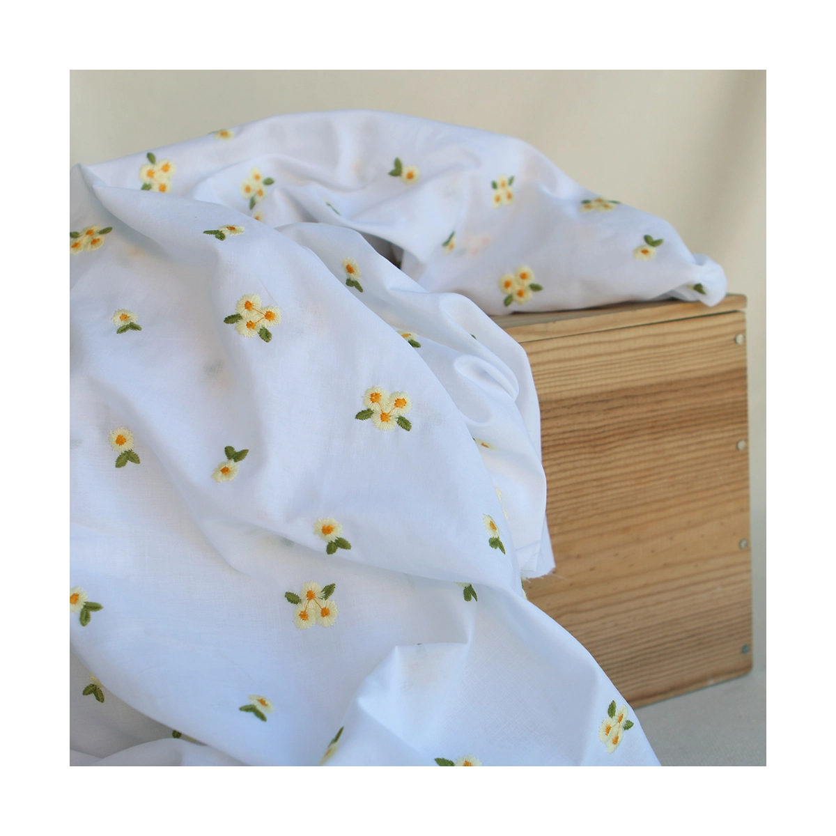 Floralie - Voile de coton blanc broderies petites fleurs jaunes