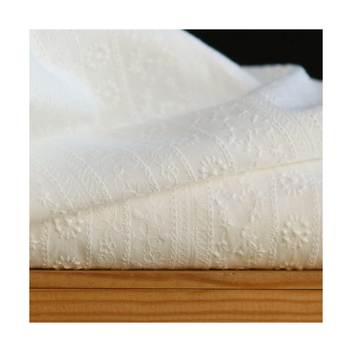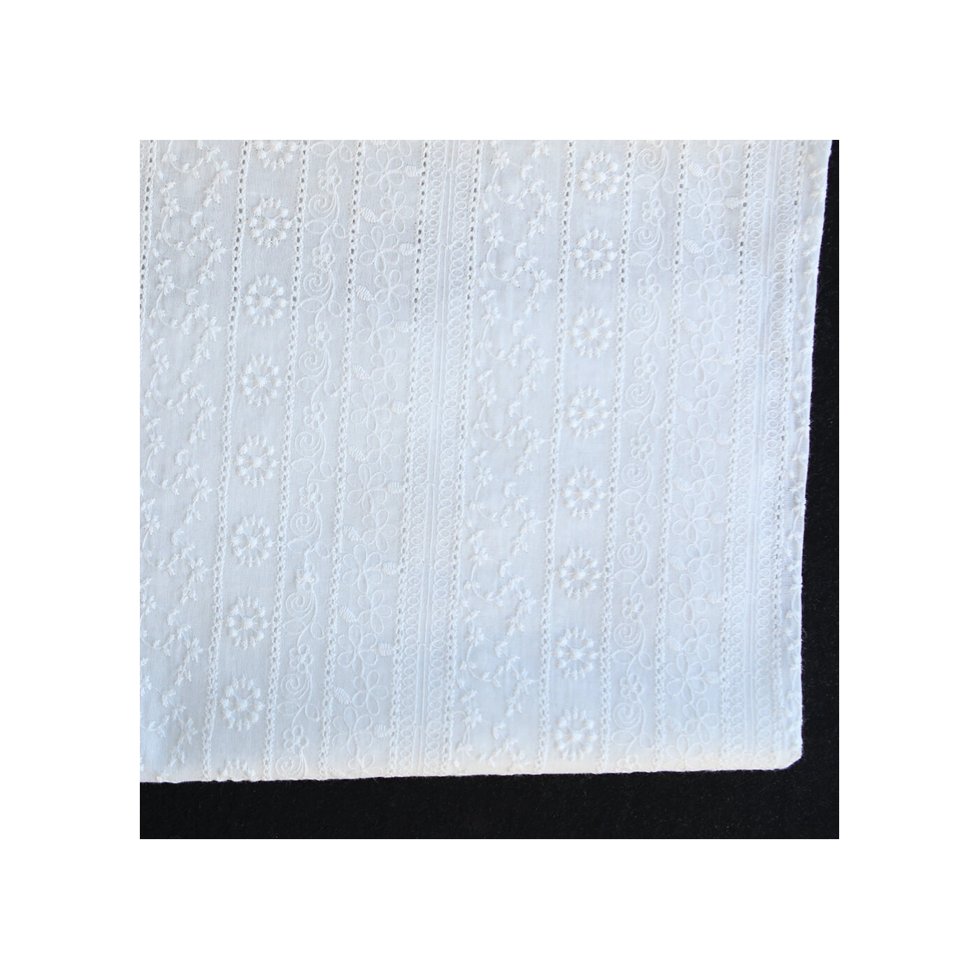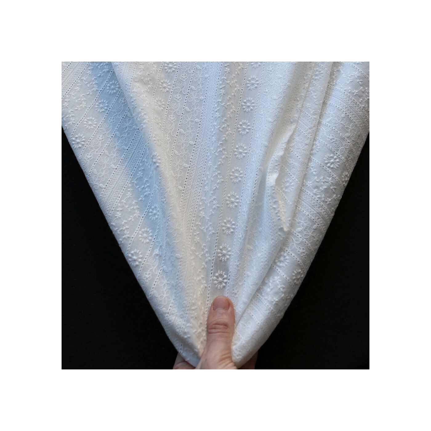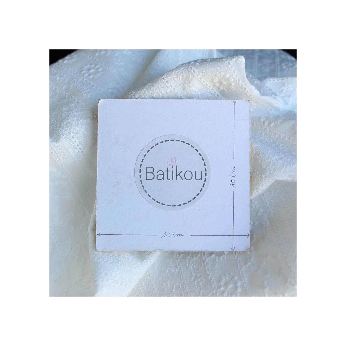 Lalie - Voile de coton blanc lait broderies bandes fleuries