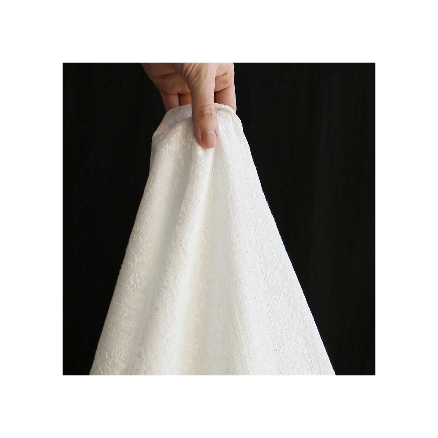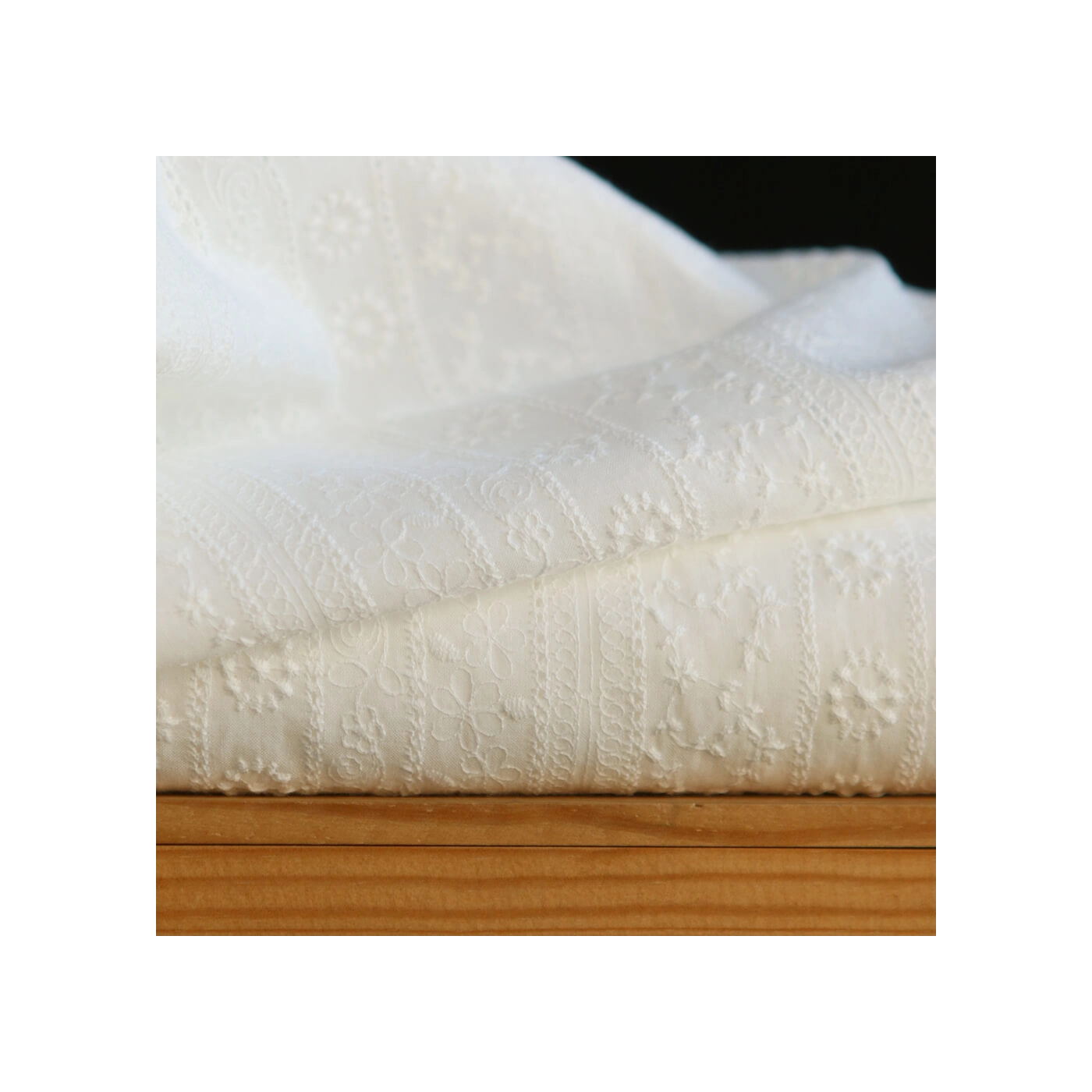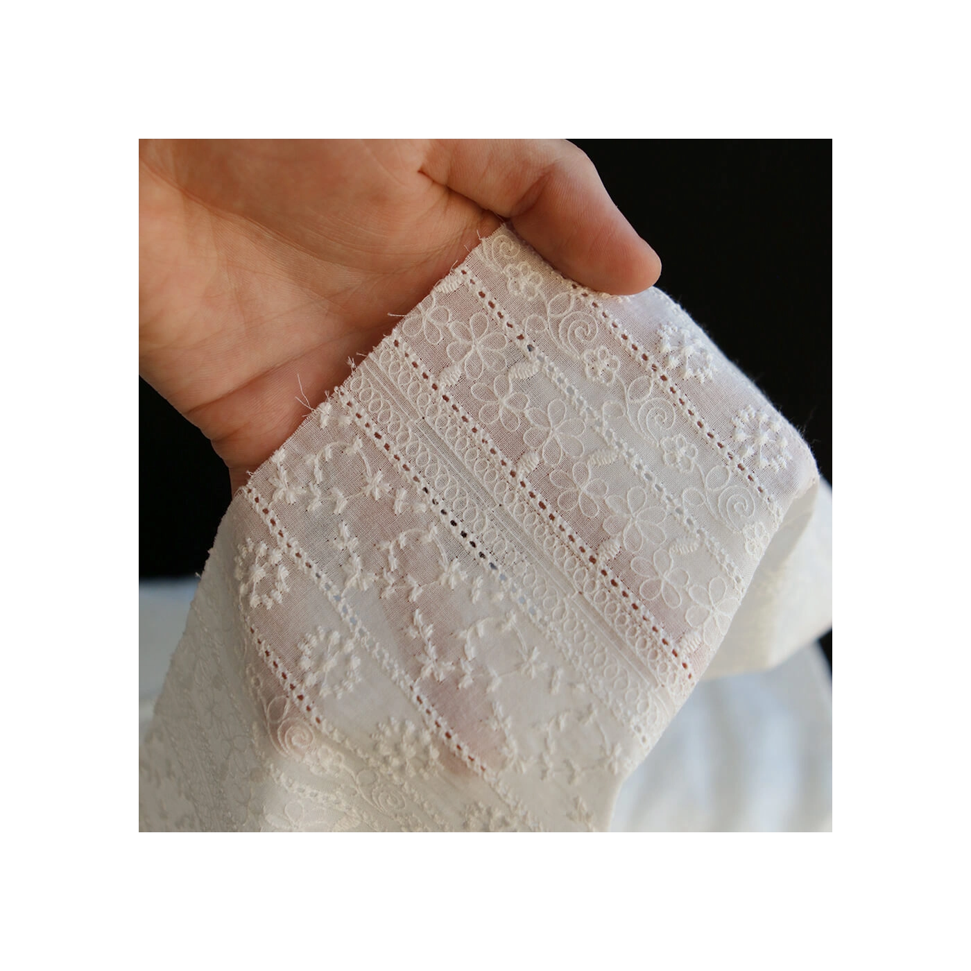 Lalie - Voile de coton blanc lait broderies bandes fleuries
