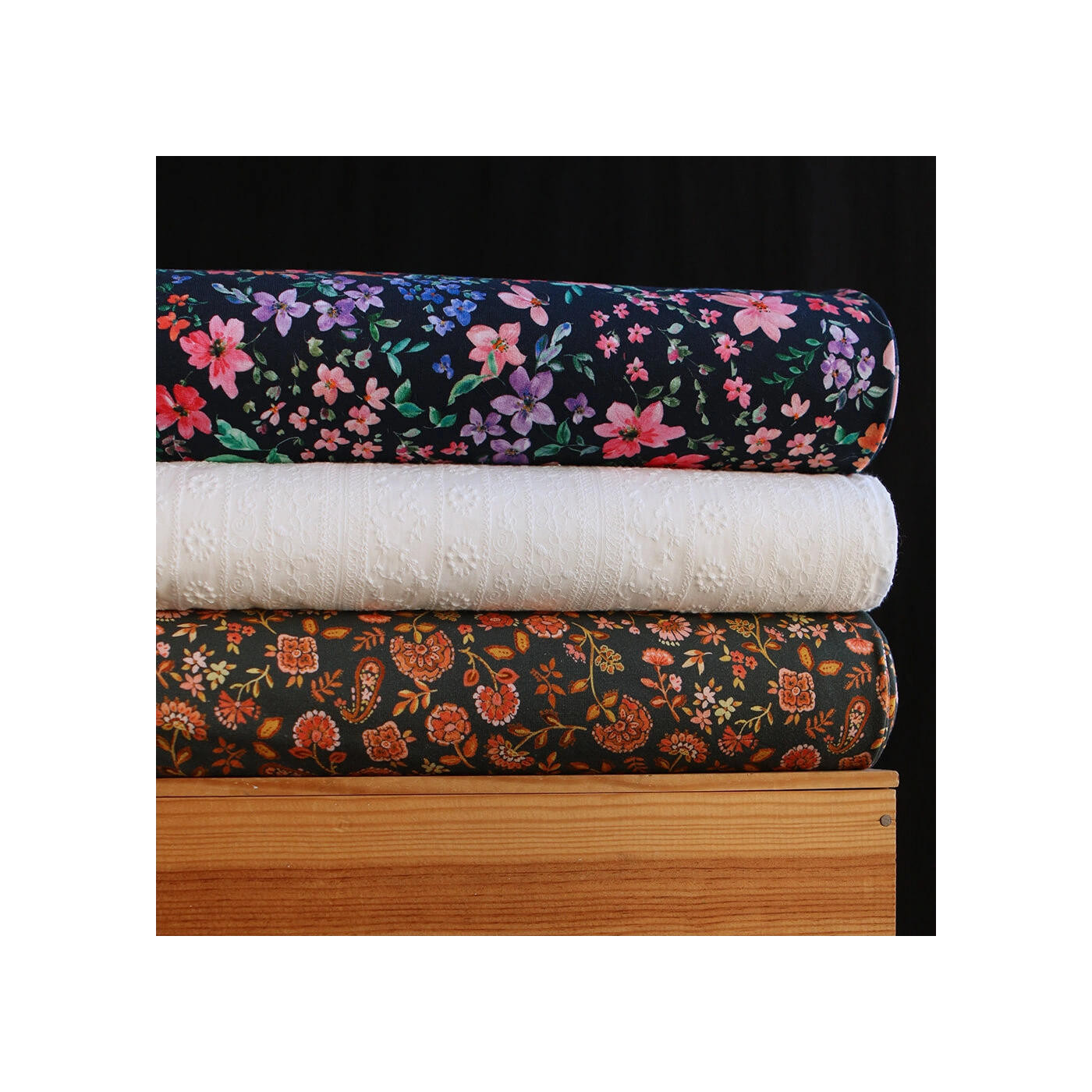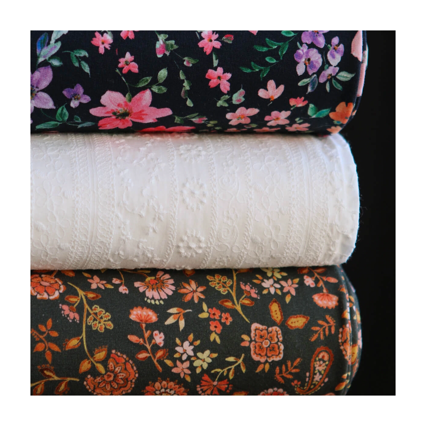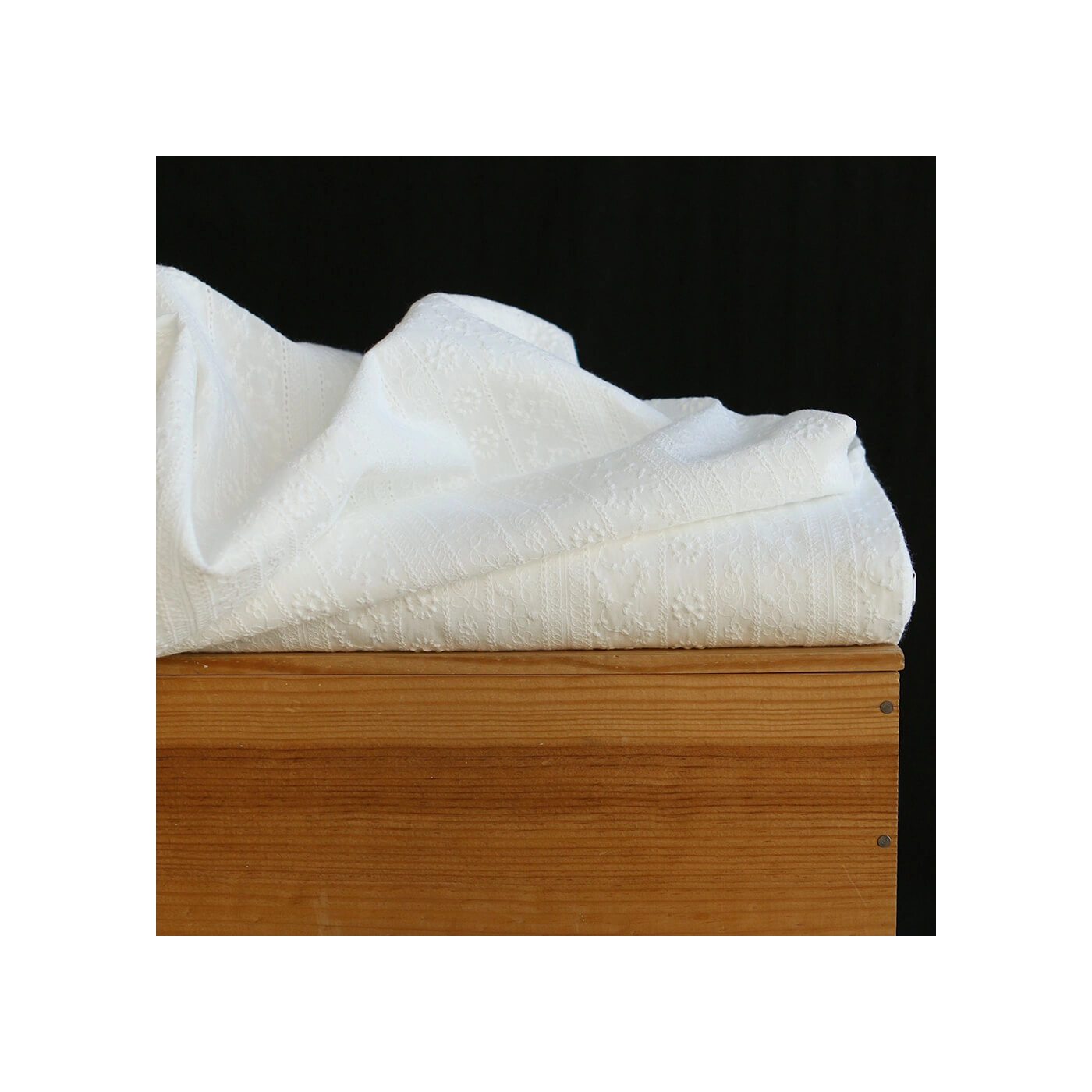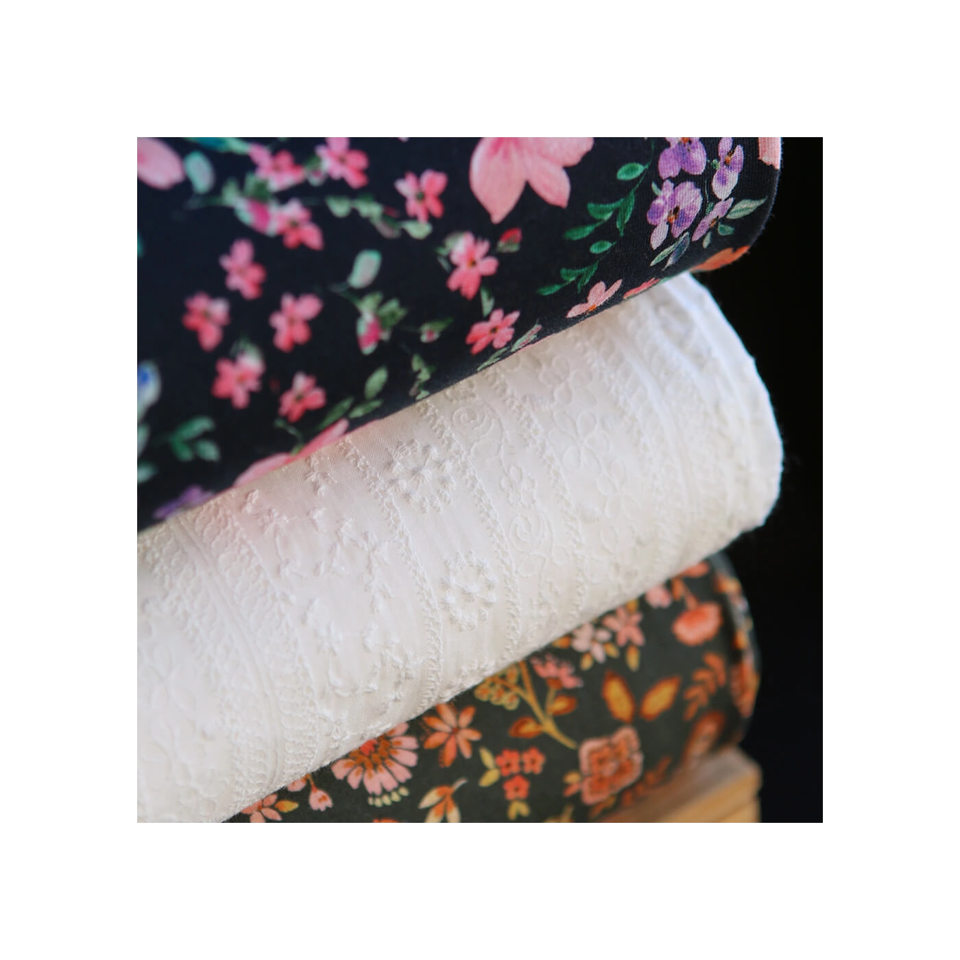 Lalie - Voile de coton blanc lait broderies bandes fleuries