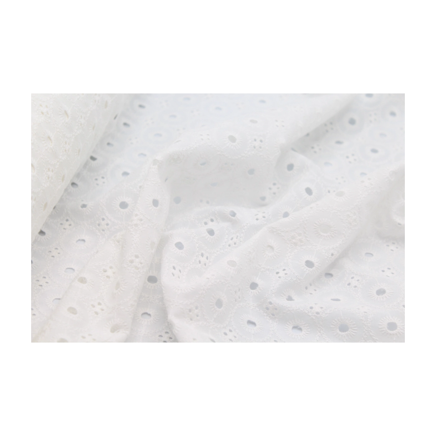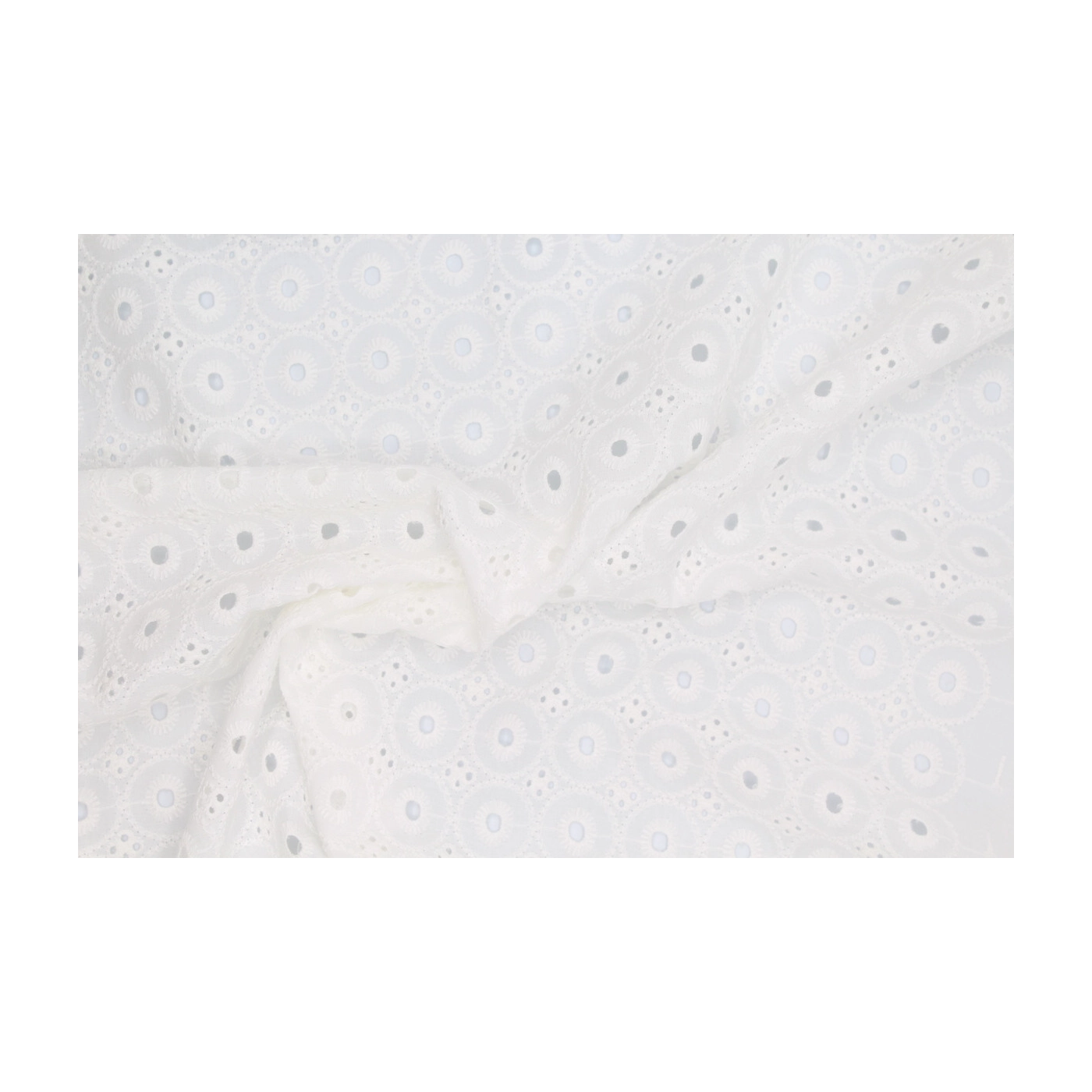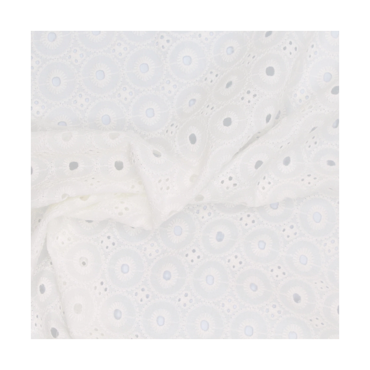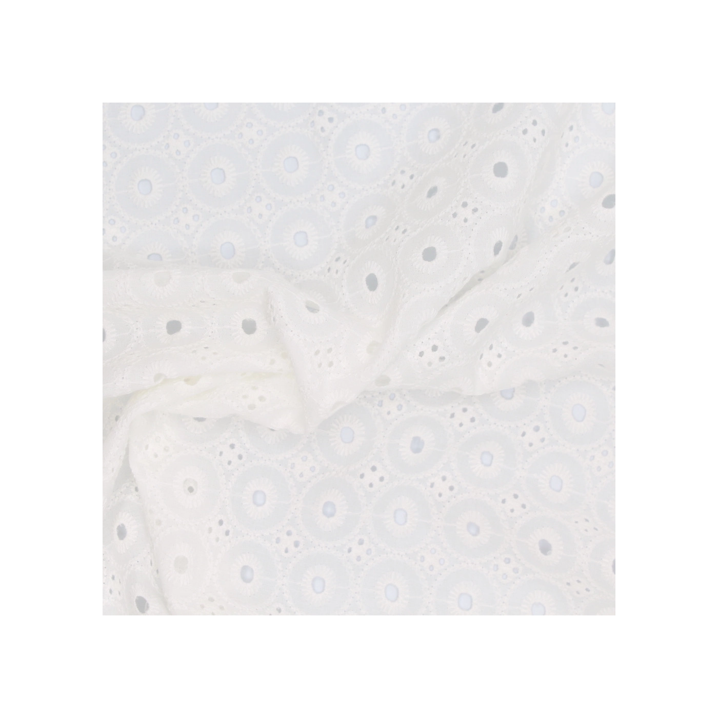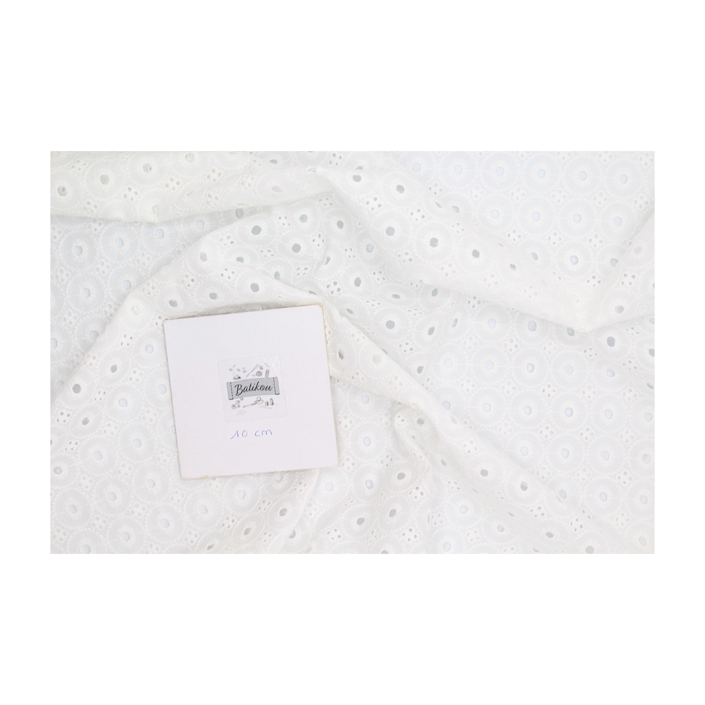 Voile plumetis de coton broderies motif crème coloris bleu ciel