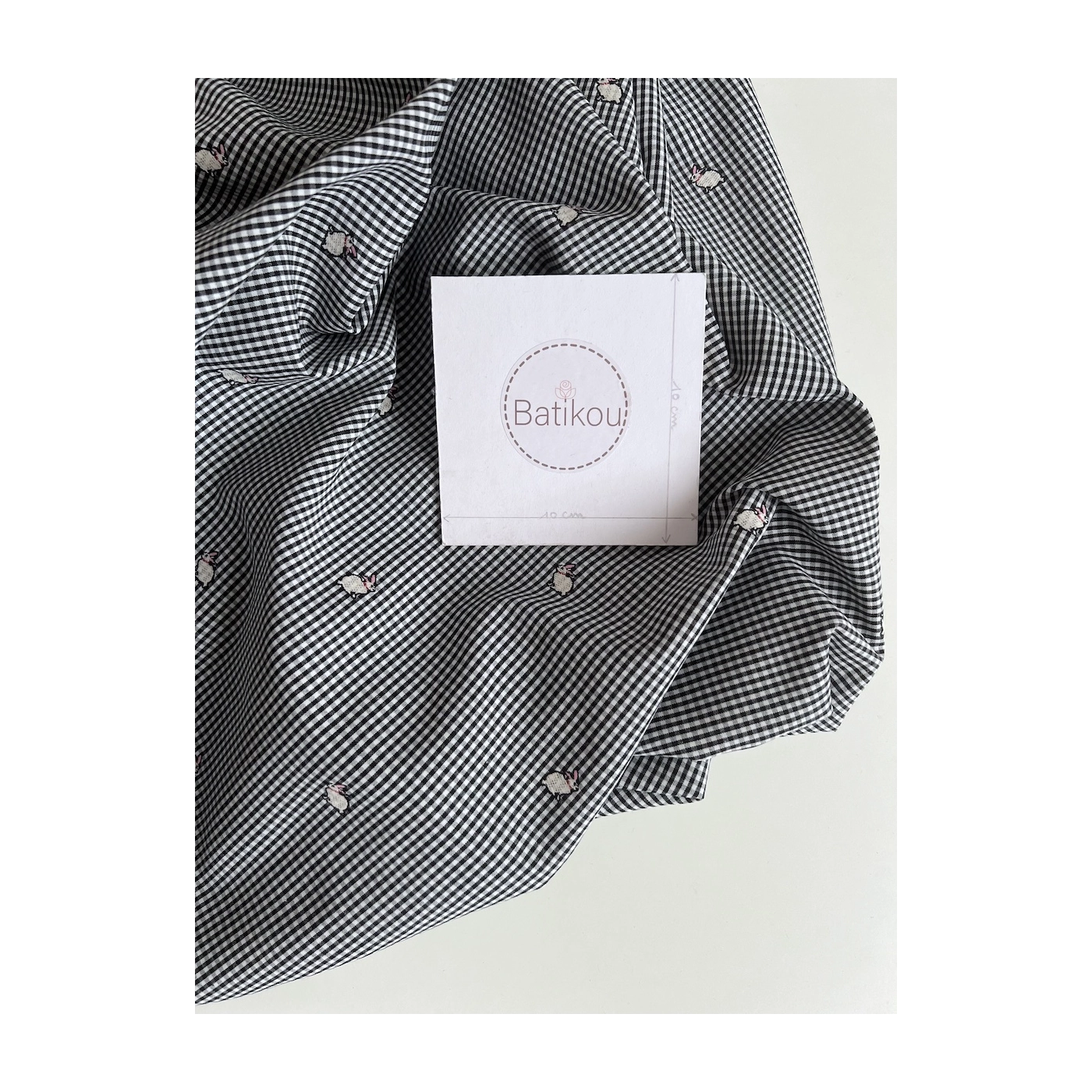 Tissu vichy coton noir et blanc 2mm broderie petits lapins