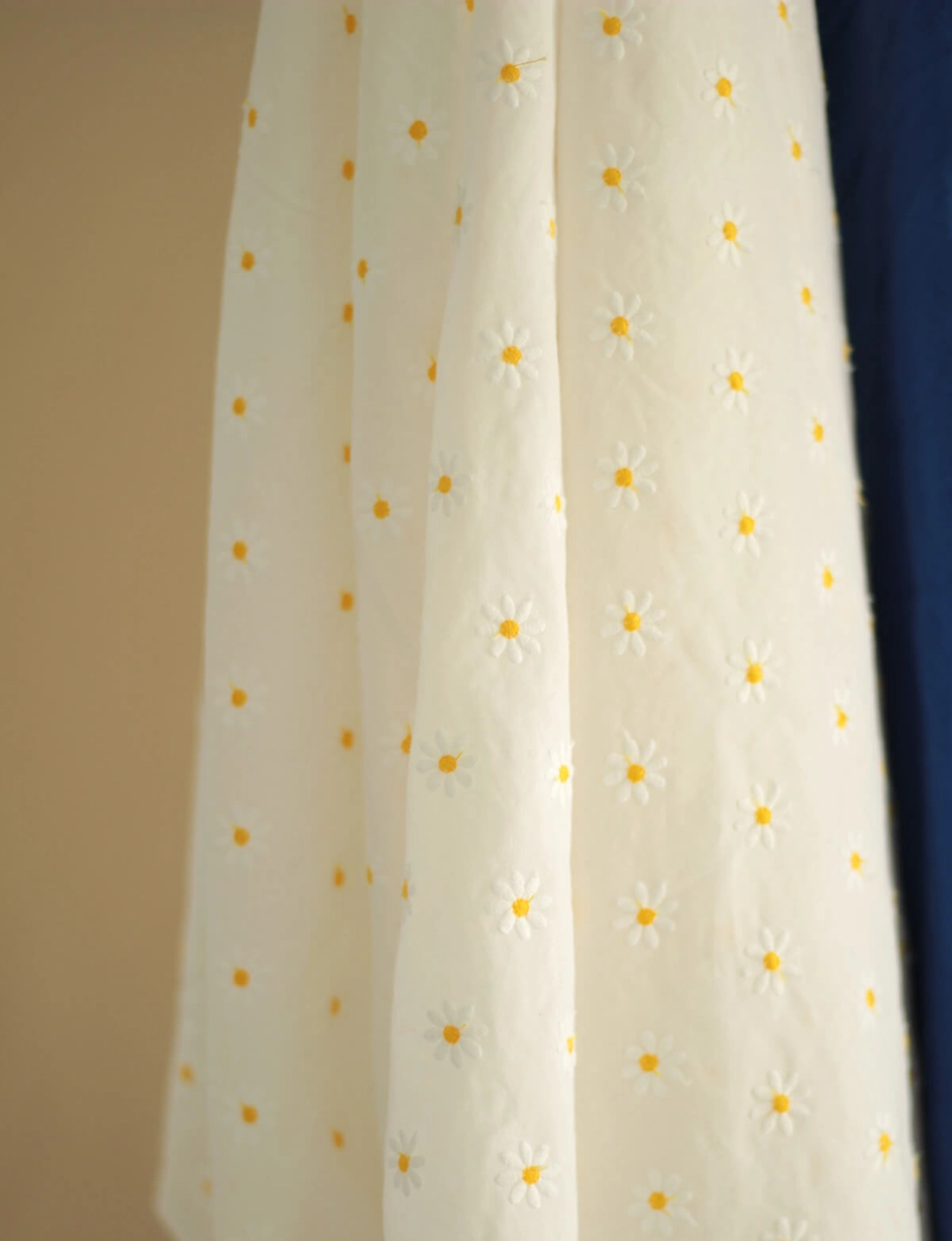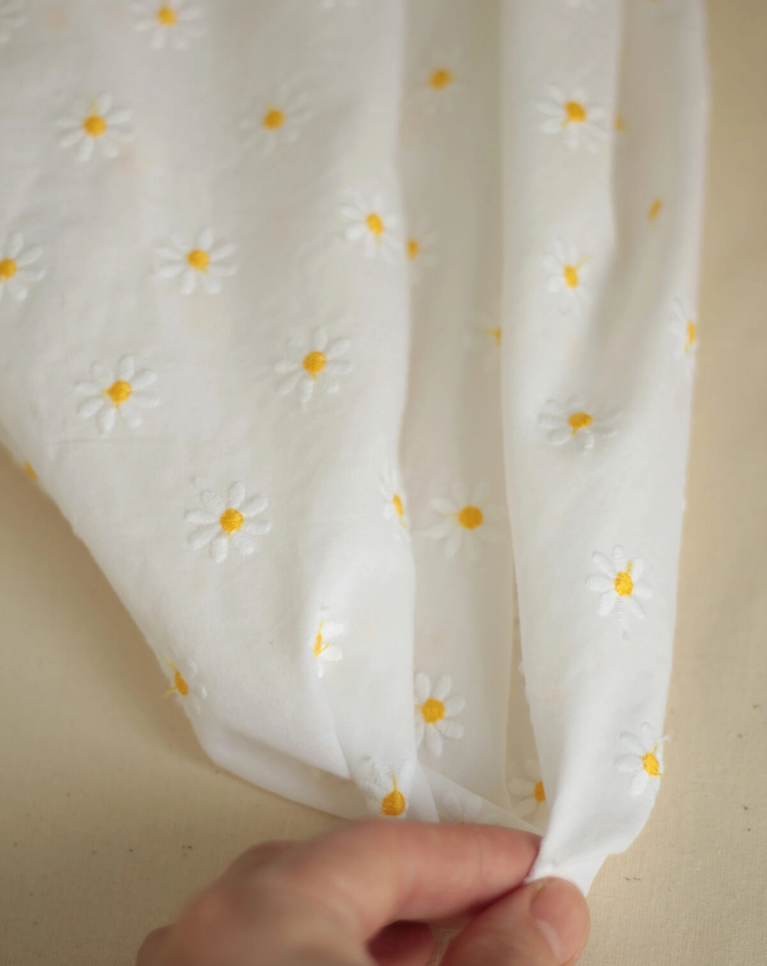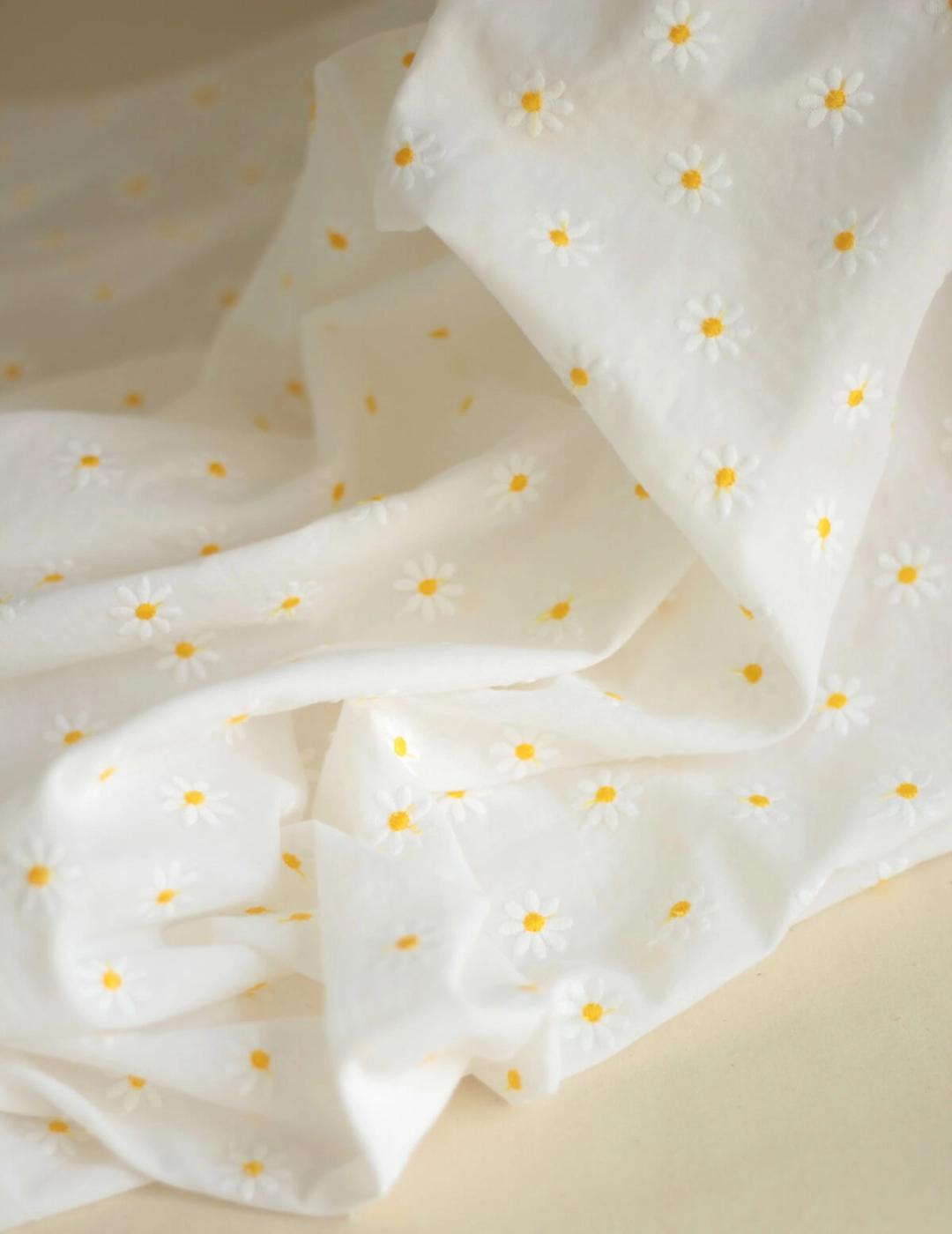 Batiste de coton organique, broderies petites pâquerettes